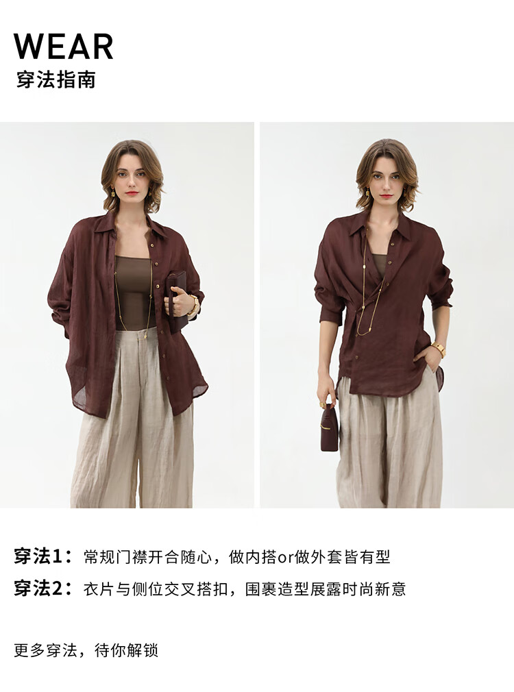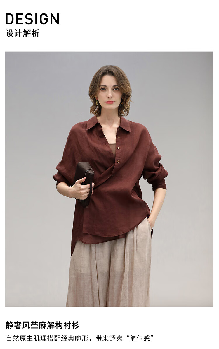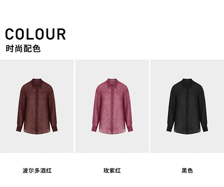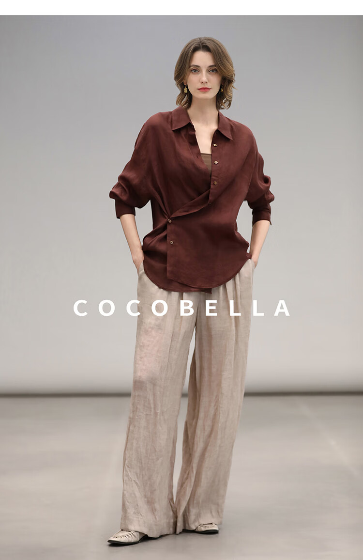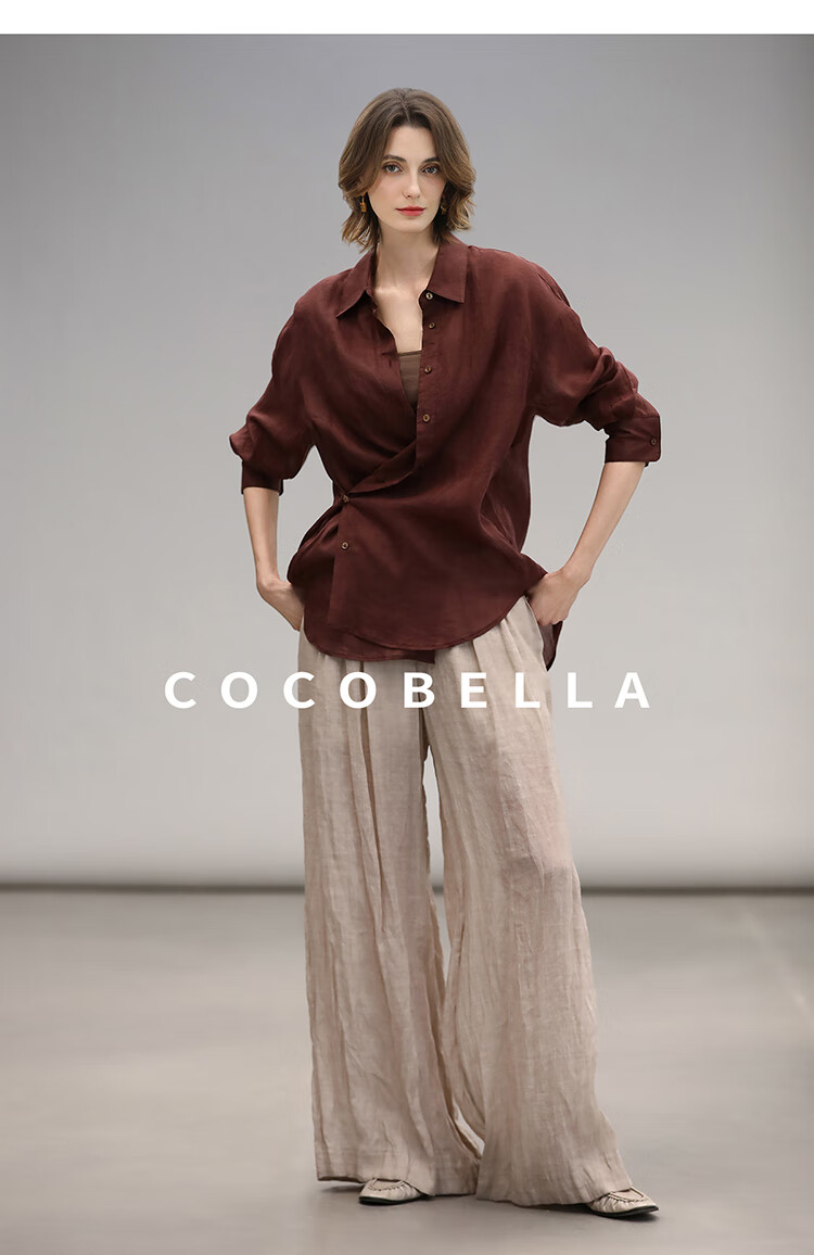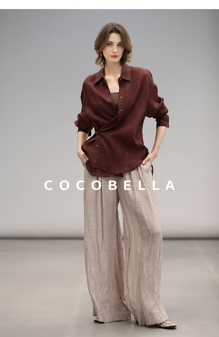 COCOBELLA古法染色100%苎麻衬衫女气质波尔多酒红衬衣SR0058