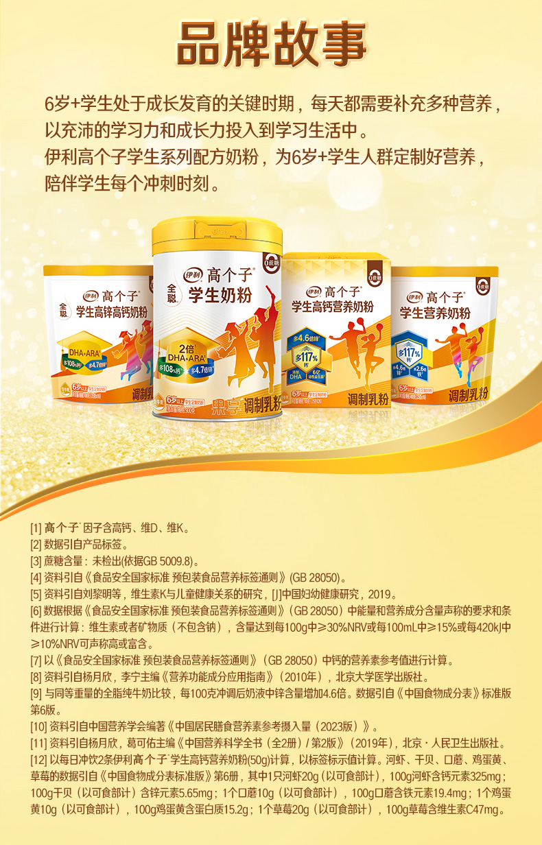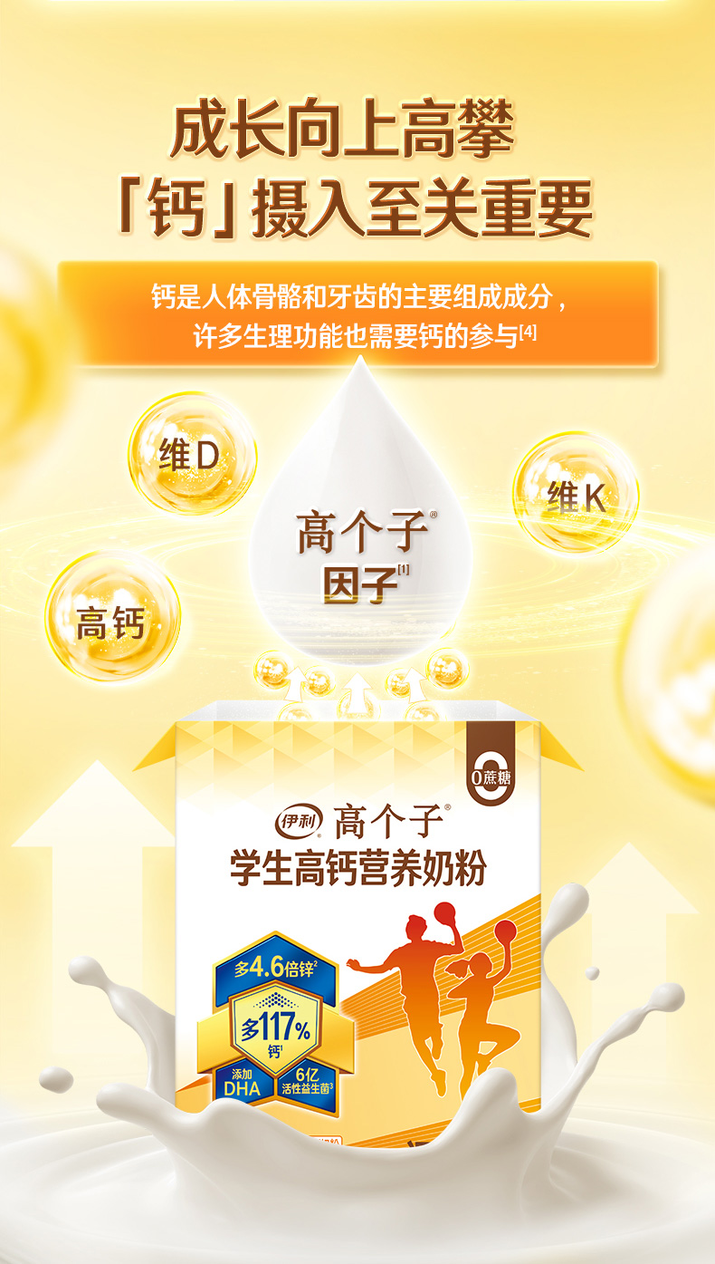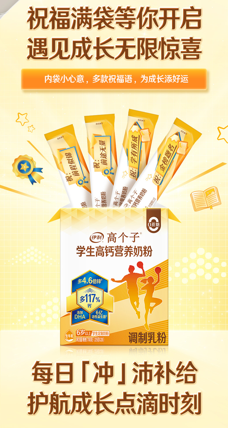 【商城优选】伊利高个子学生高钙营养奶粉700g/盒 专注成长(新老包装随机发货)