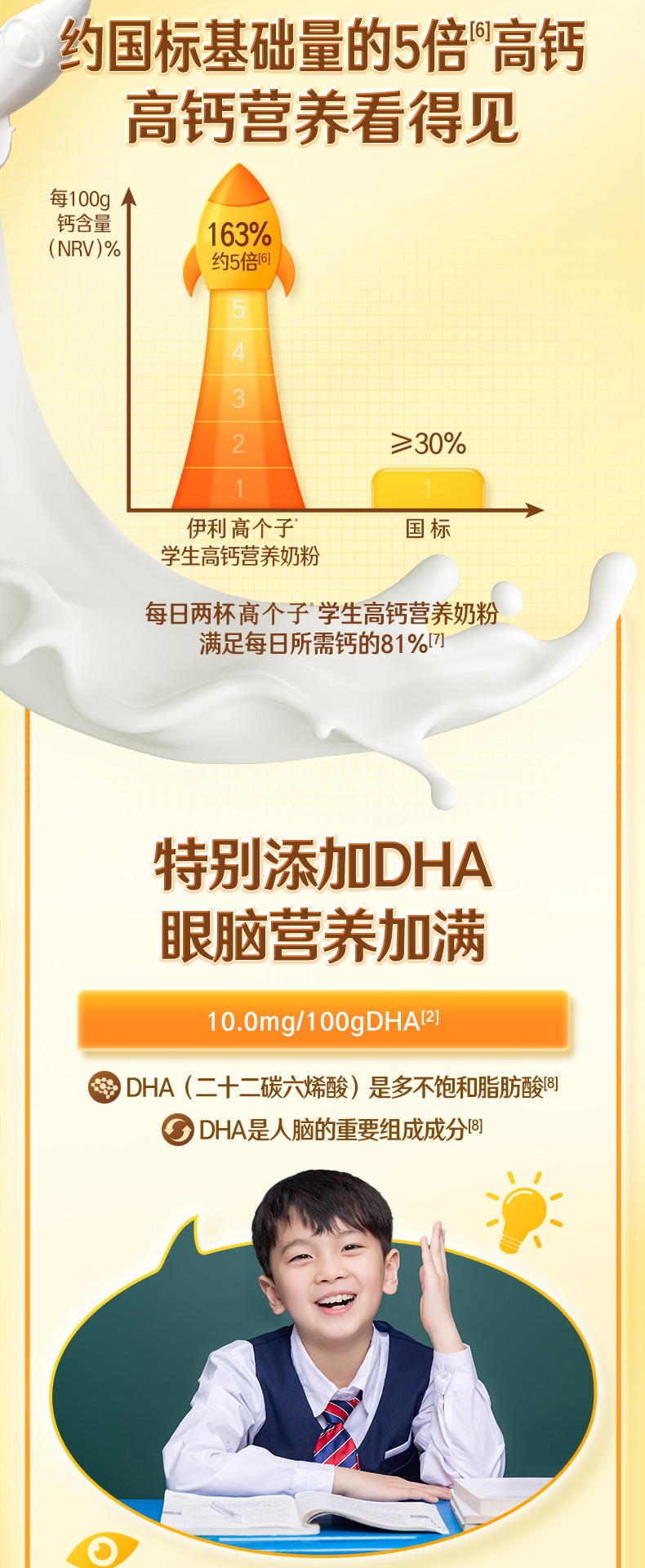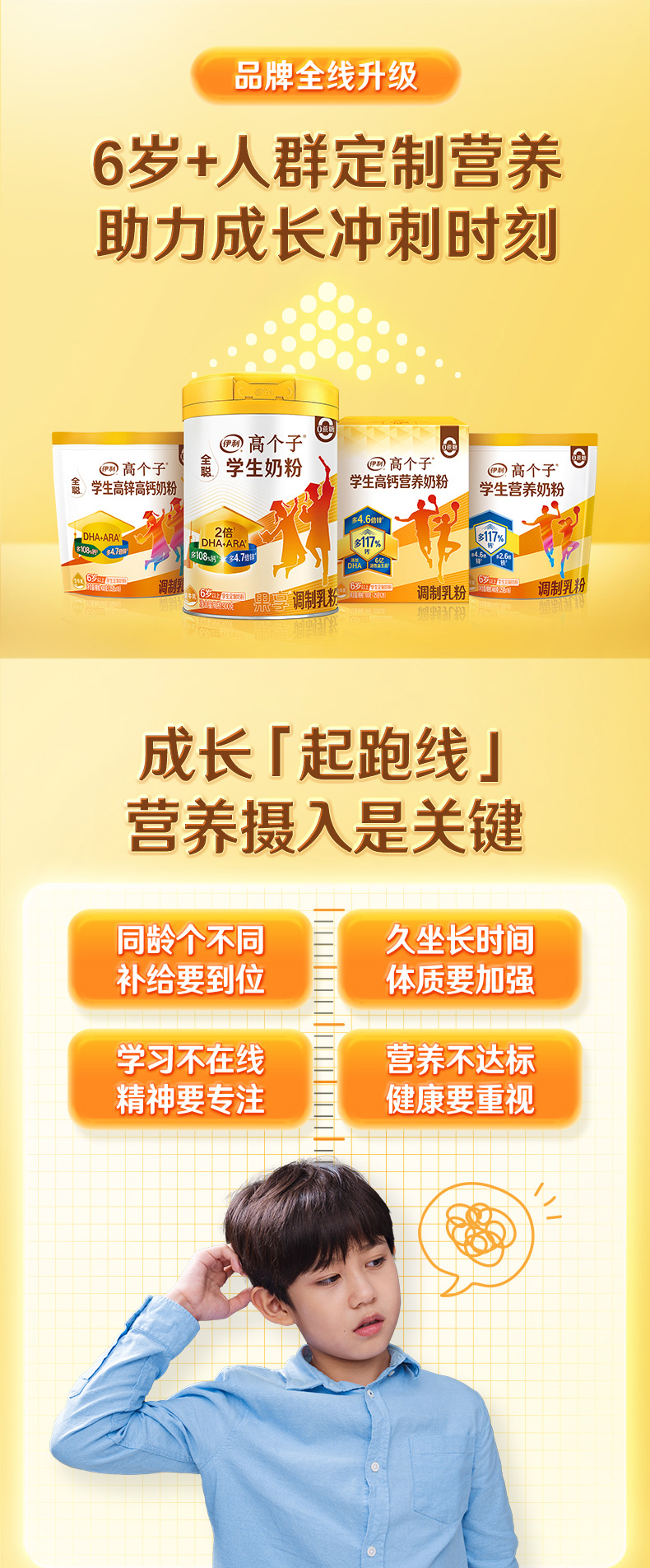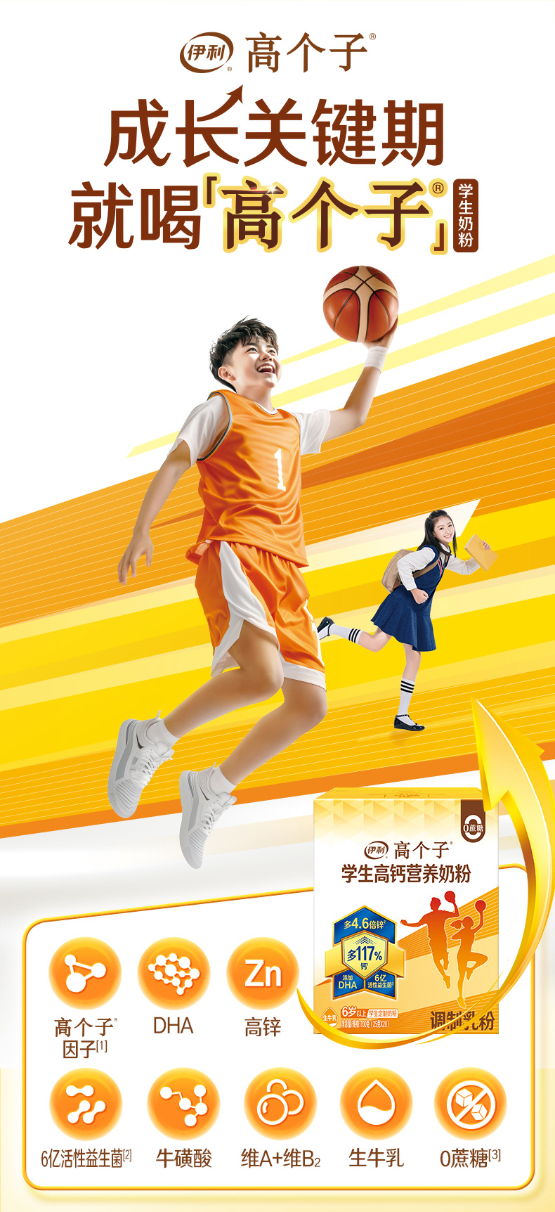 【商城优选】伊利高个子学生高钙营养奶粉700g/盒 专注成长(新老包装随机发货)