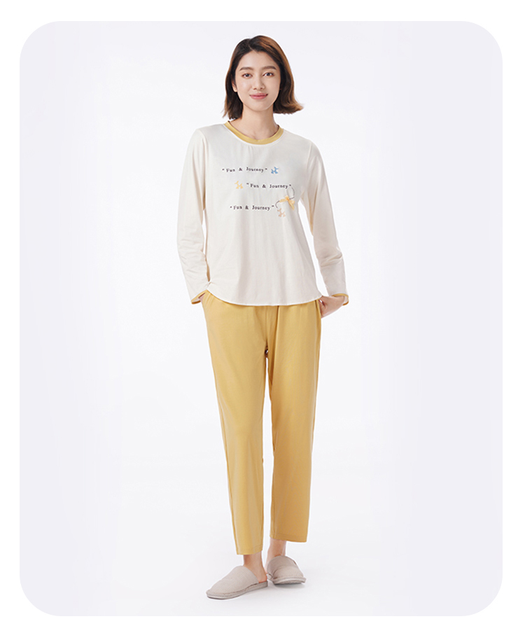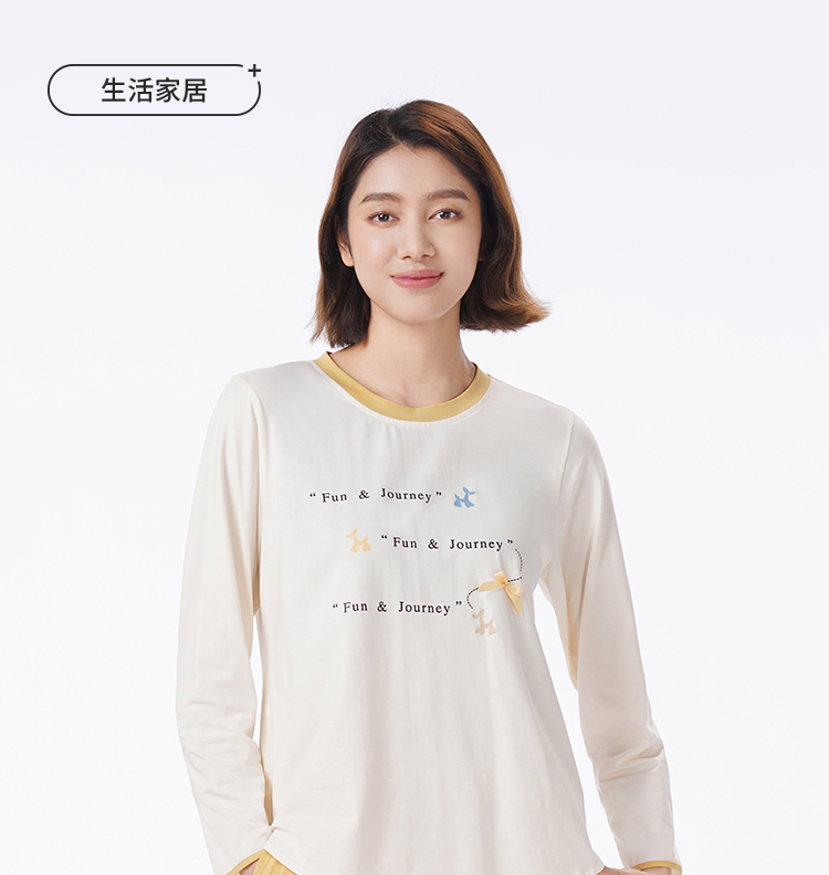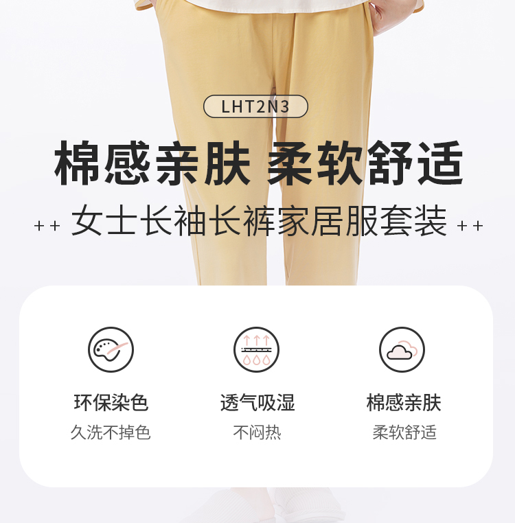 都市丽人睡衣生活家居长袖家居服26支CVC单面薄女士棉质套装LHT2N3