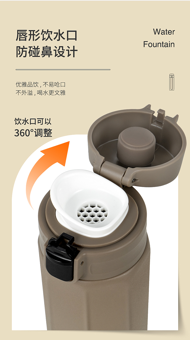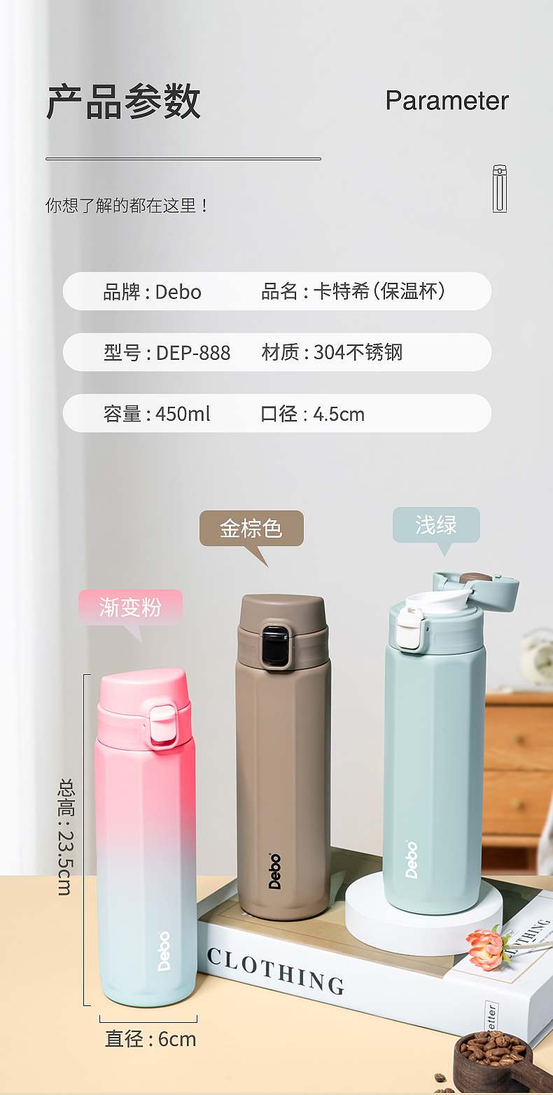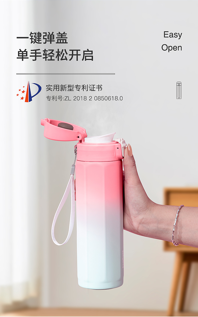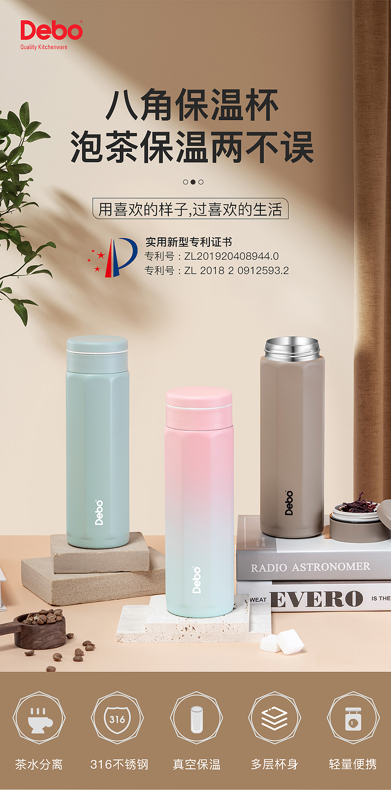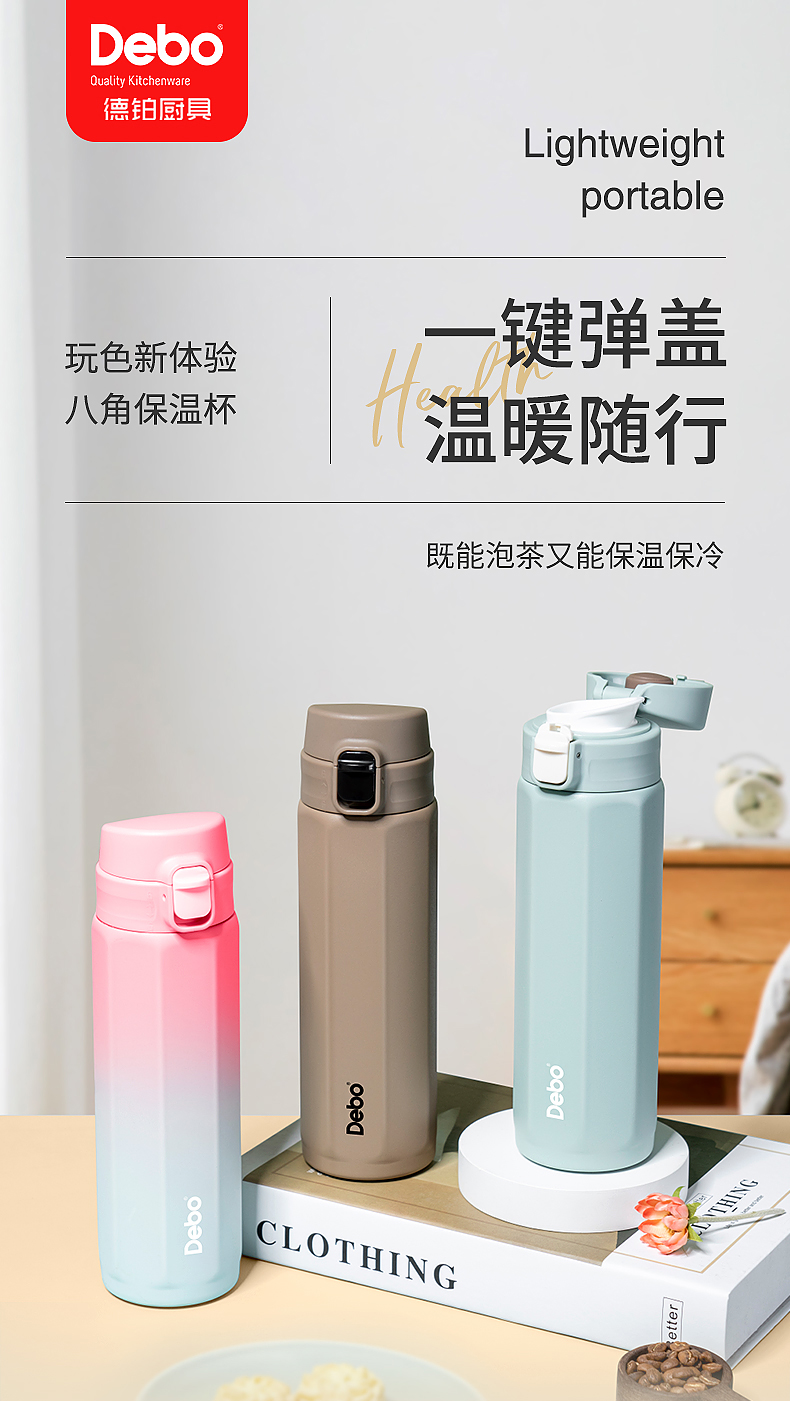 Debo德铂-卡特希尤德尔文森特八角弹跳保温杯450ml 专利设计饮用杯口 360°切换饮用无限制