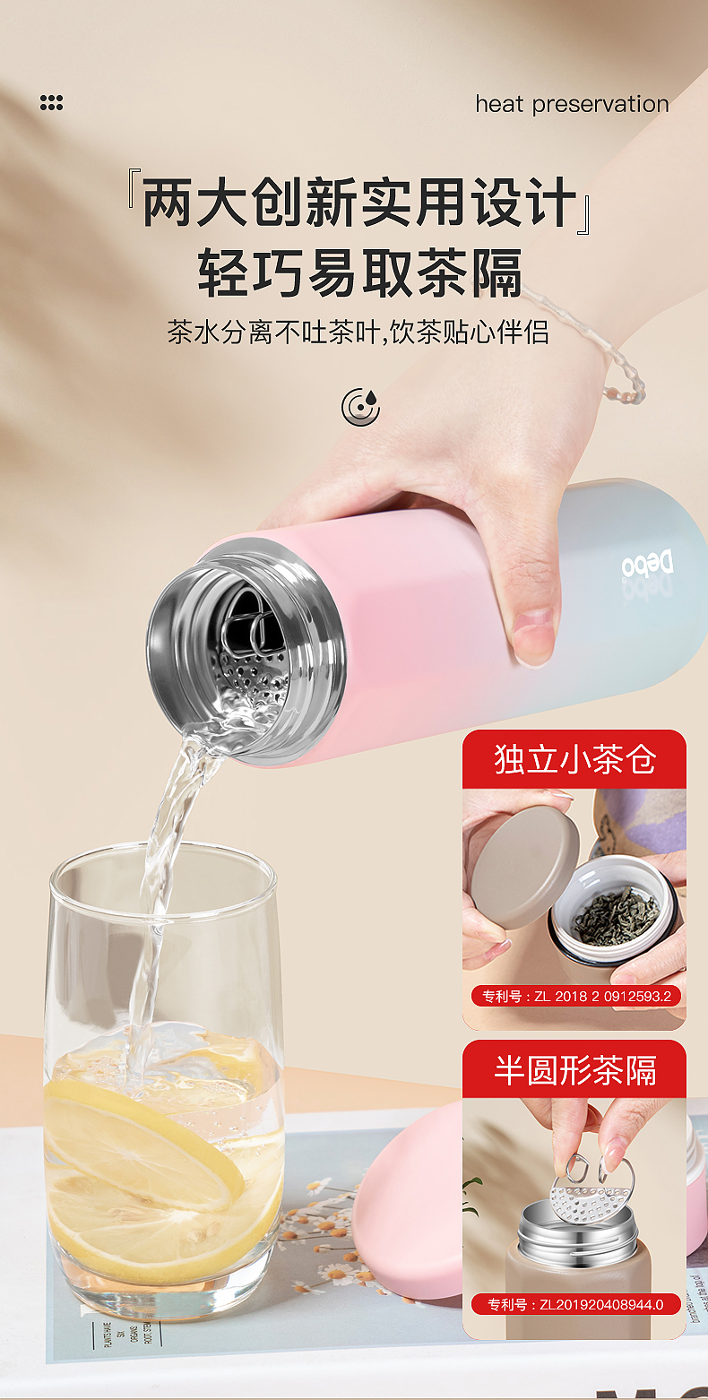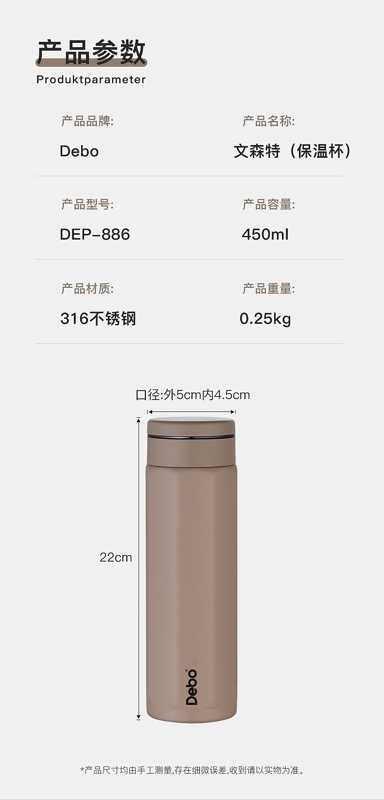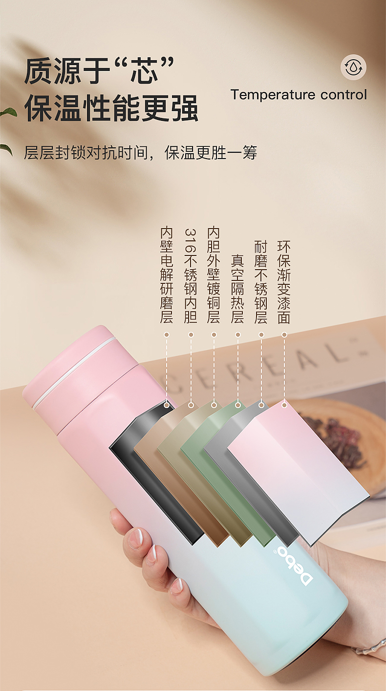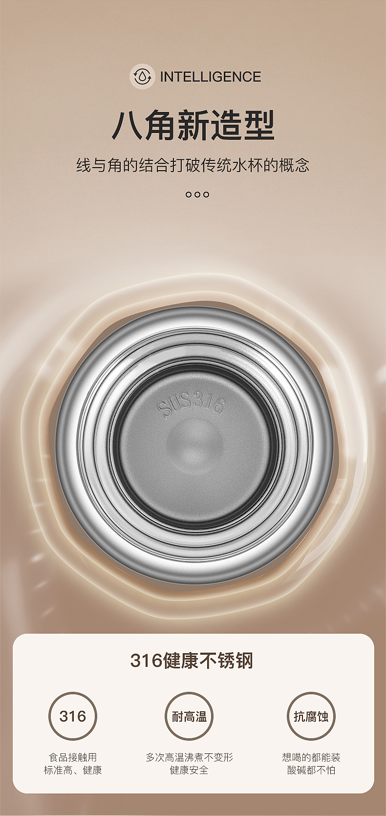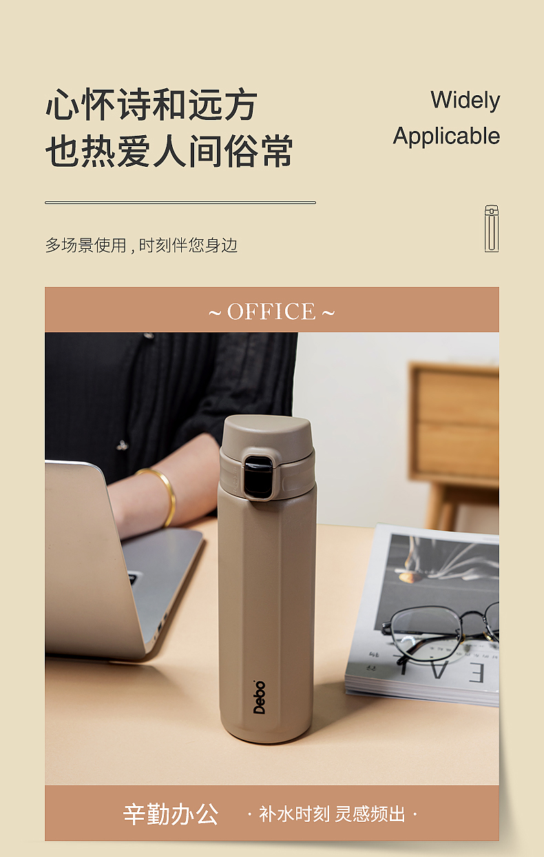 Debo德铂-卡特希尤德尔文森特八角弹跳保温杯450ml 专利设计饮用杯口 360°切换饮用无限制