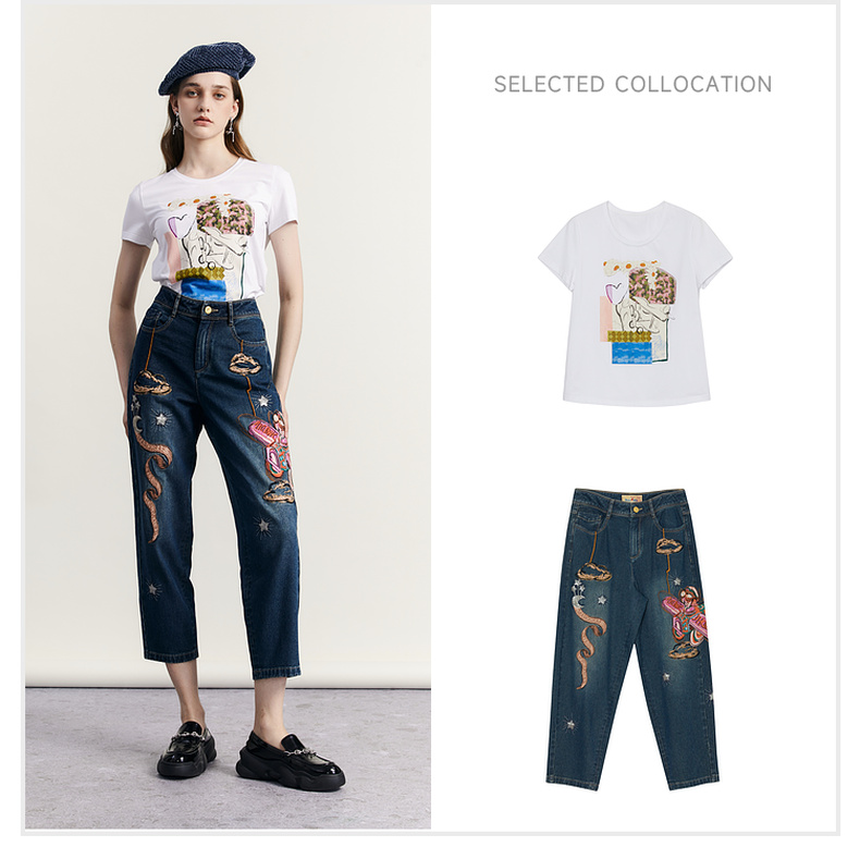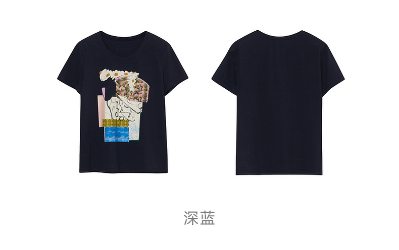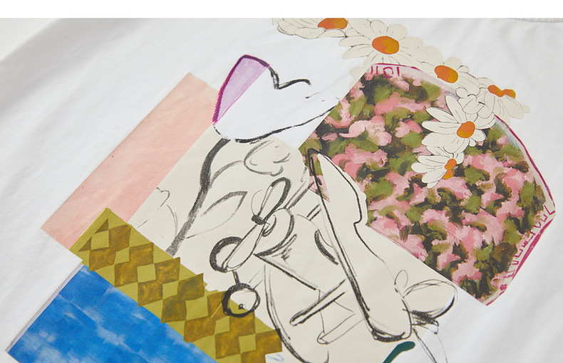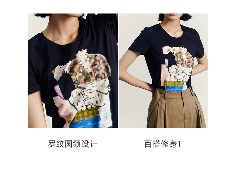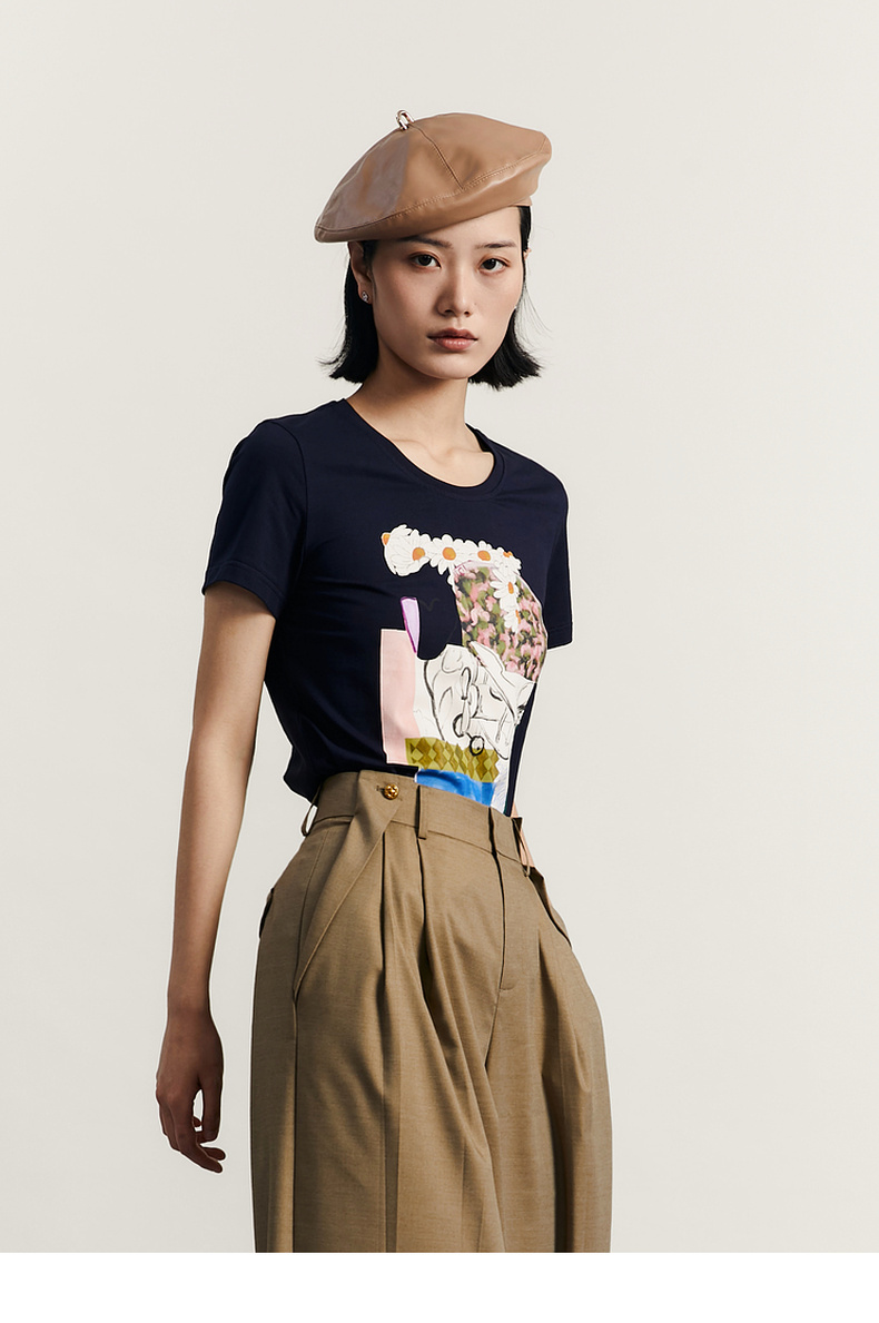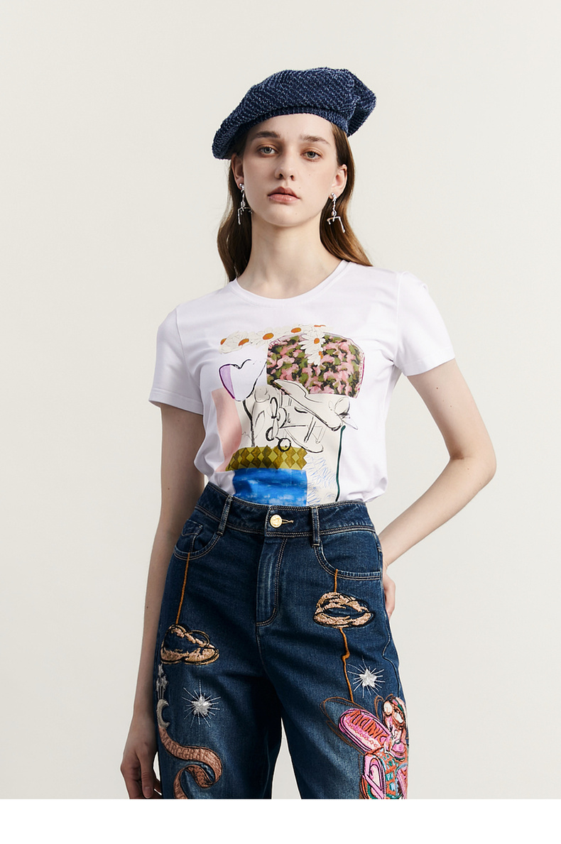 谜底原创图案印花T恤短袖女2023秋新款圆领合体套头上衣233MT1069