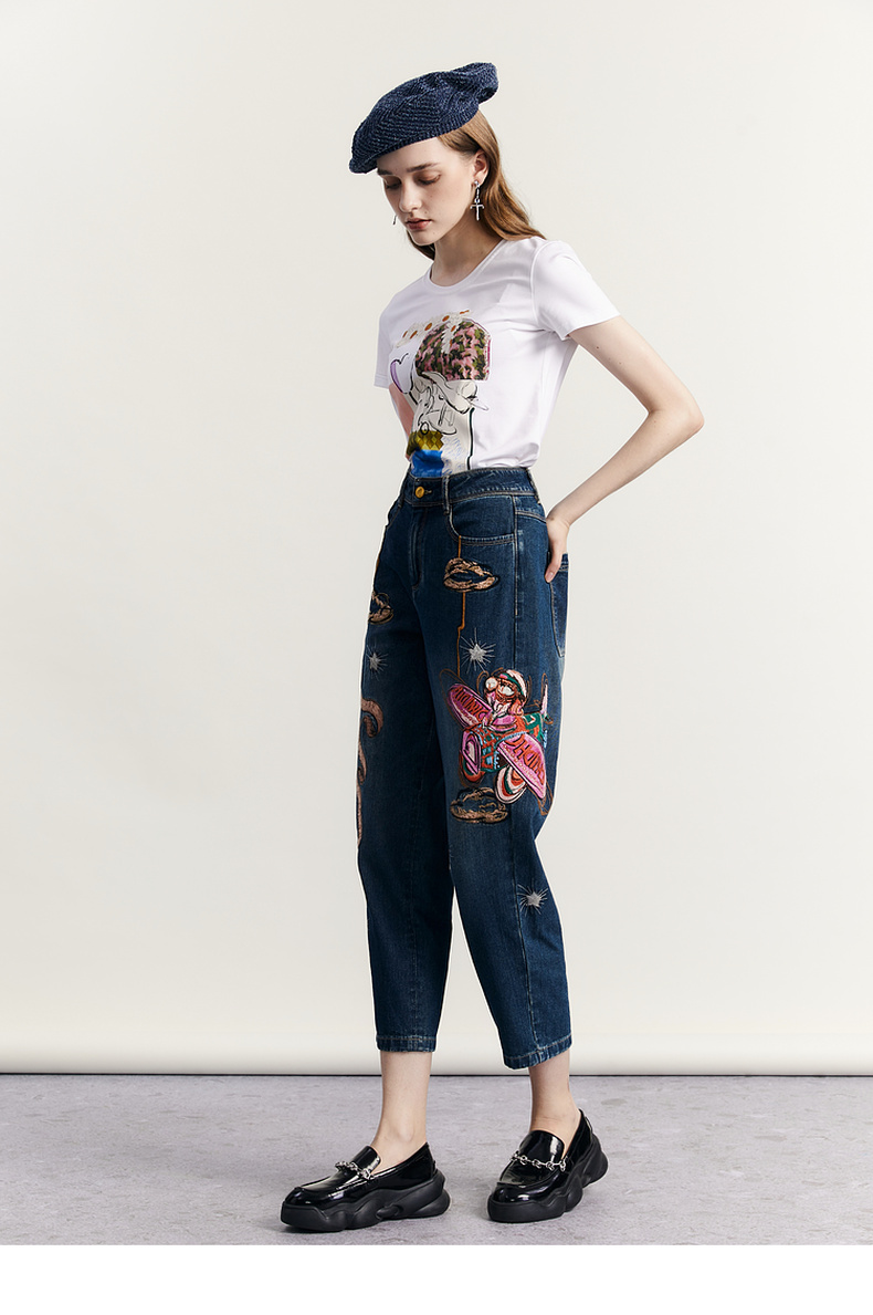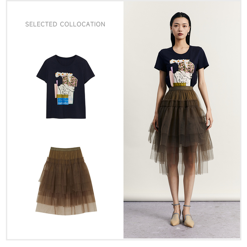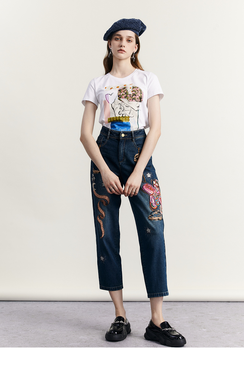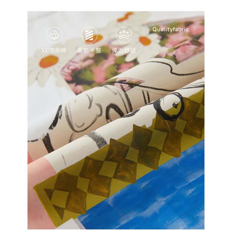 谜底原创图案印花T恤短袖女2023秋新款圆领合体套头上衣233MT1069