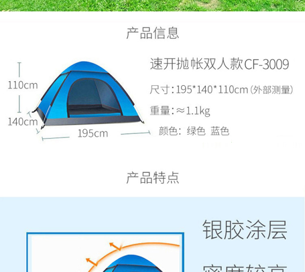 传枫 两人单门全自动速开休闲帐篷 CF-3009