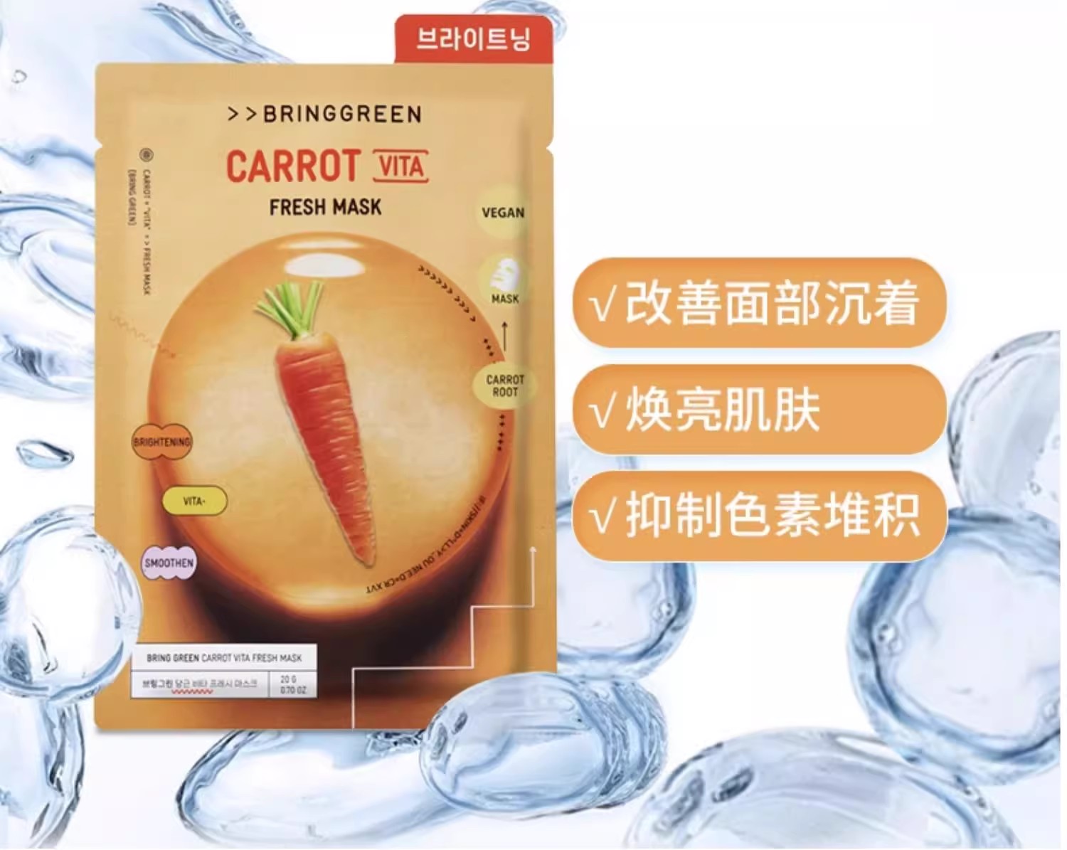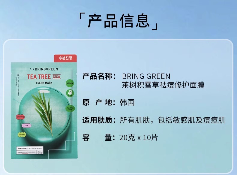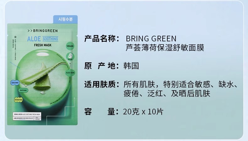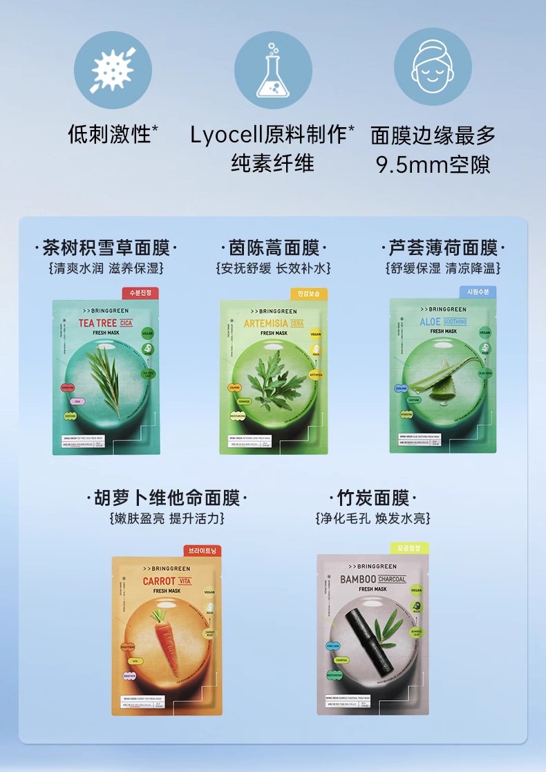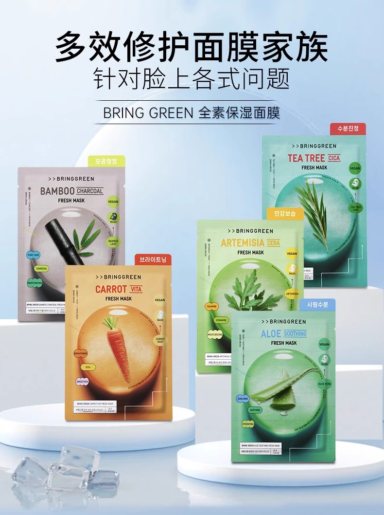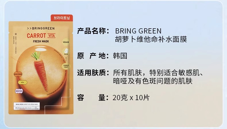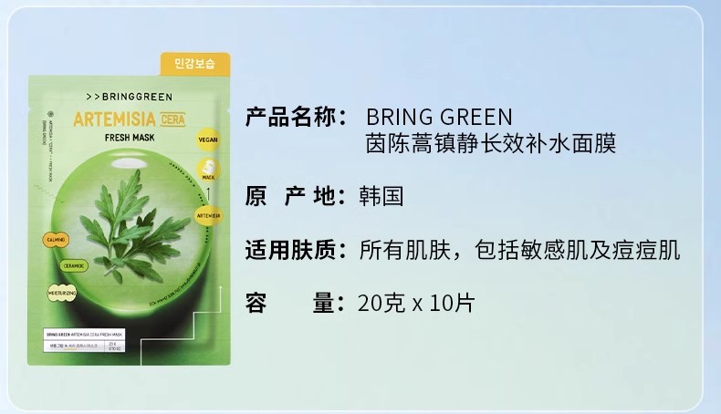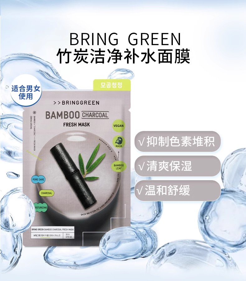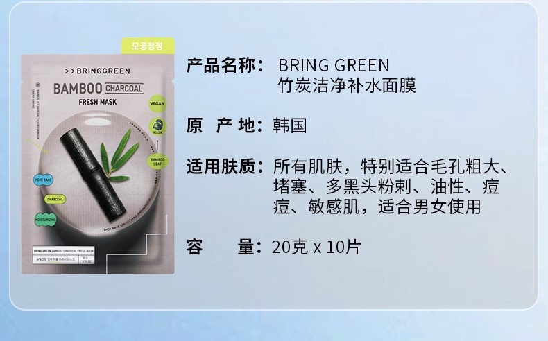 芭兰歌林BRING GREEN竹炭洁净补水面膜10片装