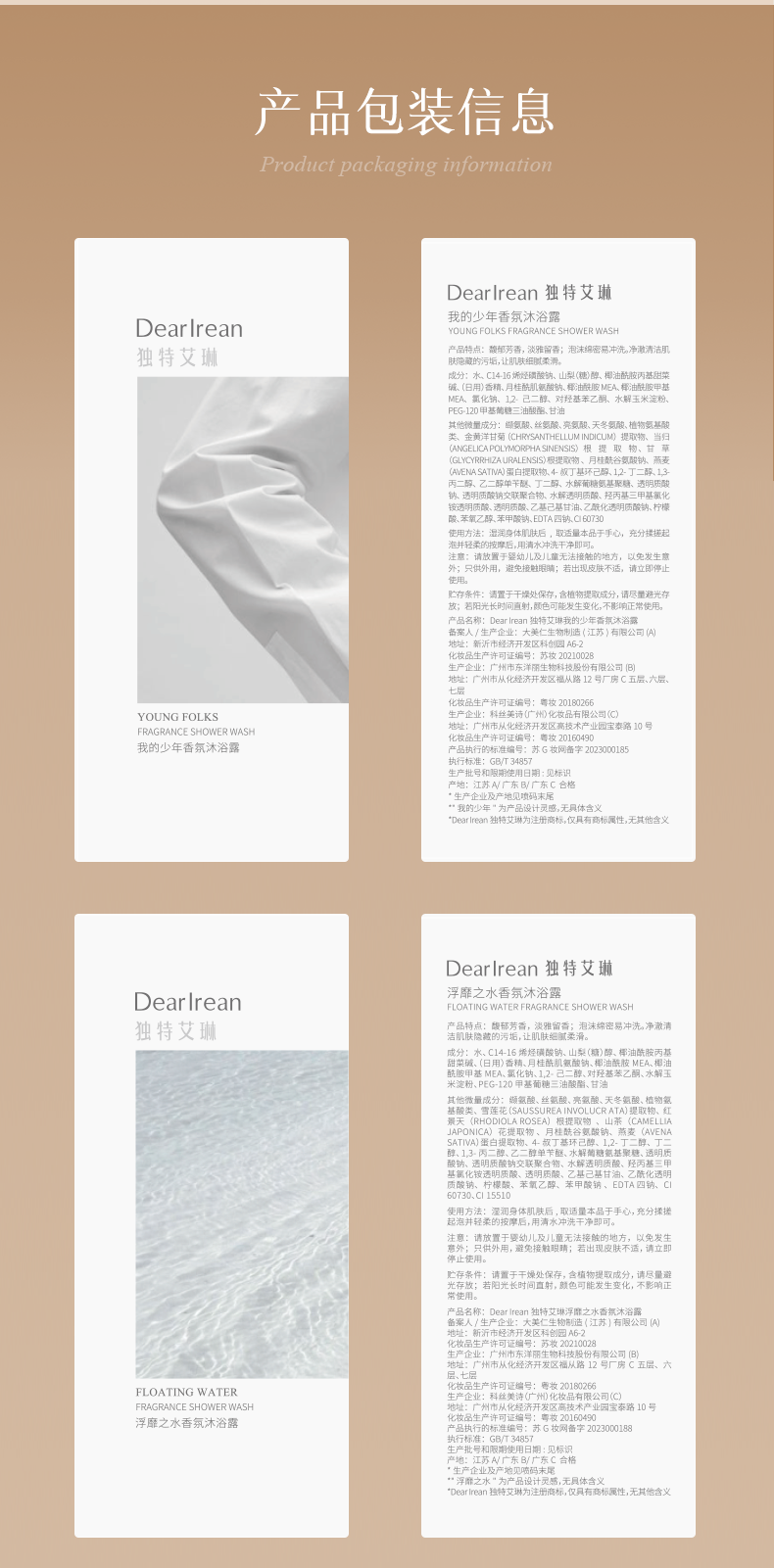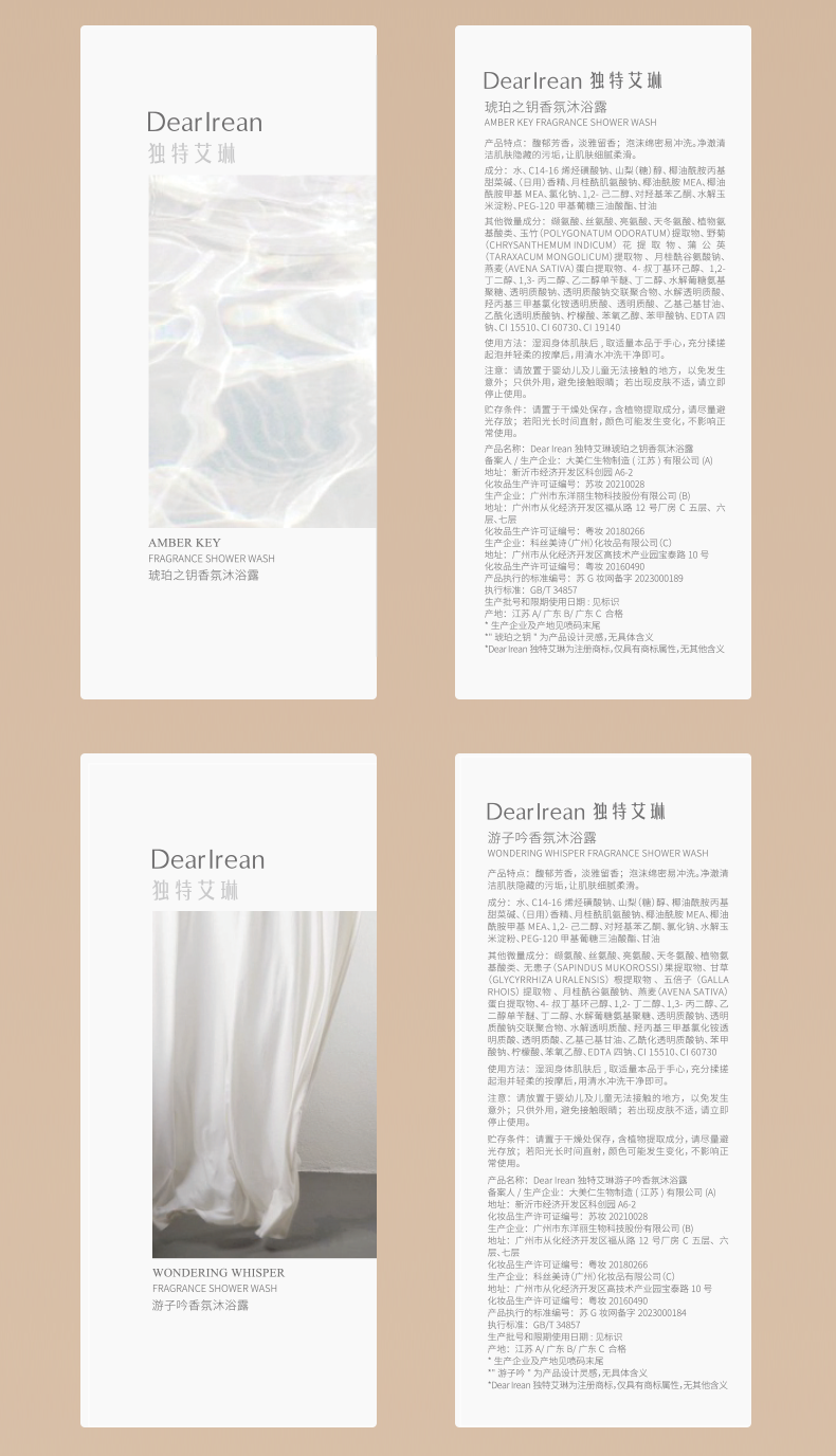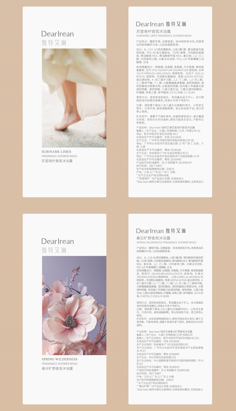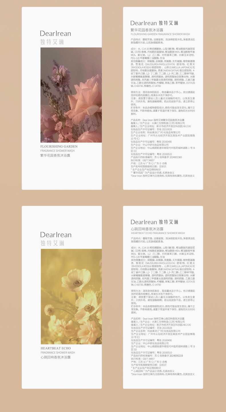 Dear lrean独特艾琳香氛沐浴露 氨基酸留香水润全身保湿 清洁不假滑 350ml/支*2【YW】