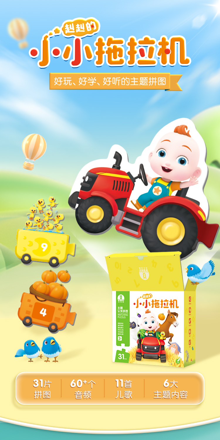 【点读版】宝宝巴士玩具认知拼图2岁+ 主题认知拼图:赳赳的小小拖拉机(不含笔)
