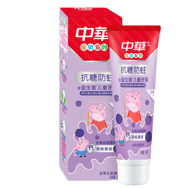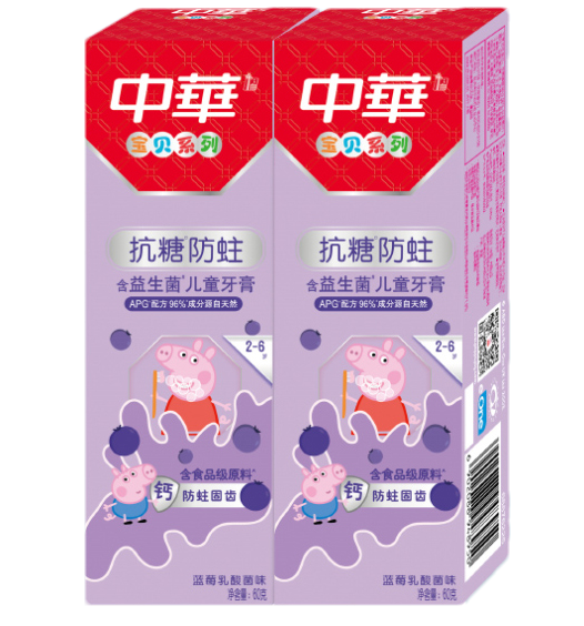 【清仓秒杀】中华抗糖儿童牙膏蓝莓乳酸菌味60g*4支(适合2-6岁)(25年3月)