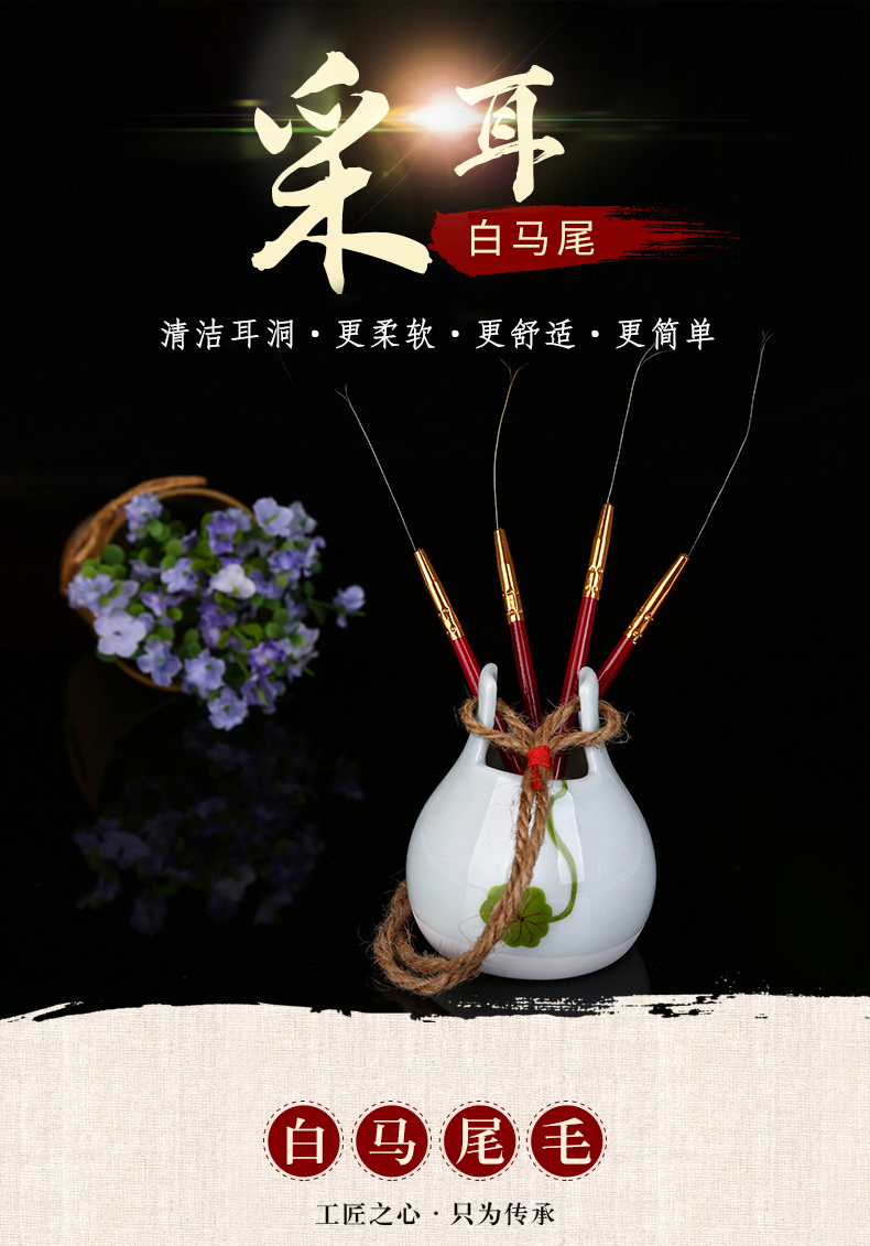 采耳工具套装马尾毛分叉马尾打耳朵毛掏耳勺挠痒痒毛扫耳朵掏耳器
