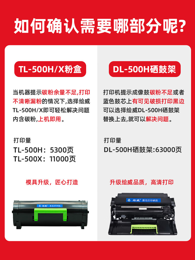 绘威适用奔图P5000dn粉盒P5006DN硒鼓TL-500X粉盒P4000DN M7600fdn墨盒 TL-500X PANTUM打印机 打印约11000页