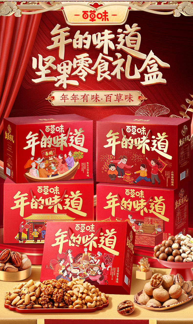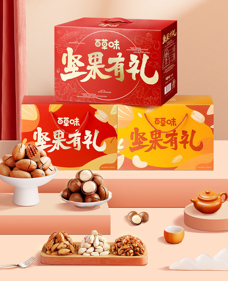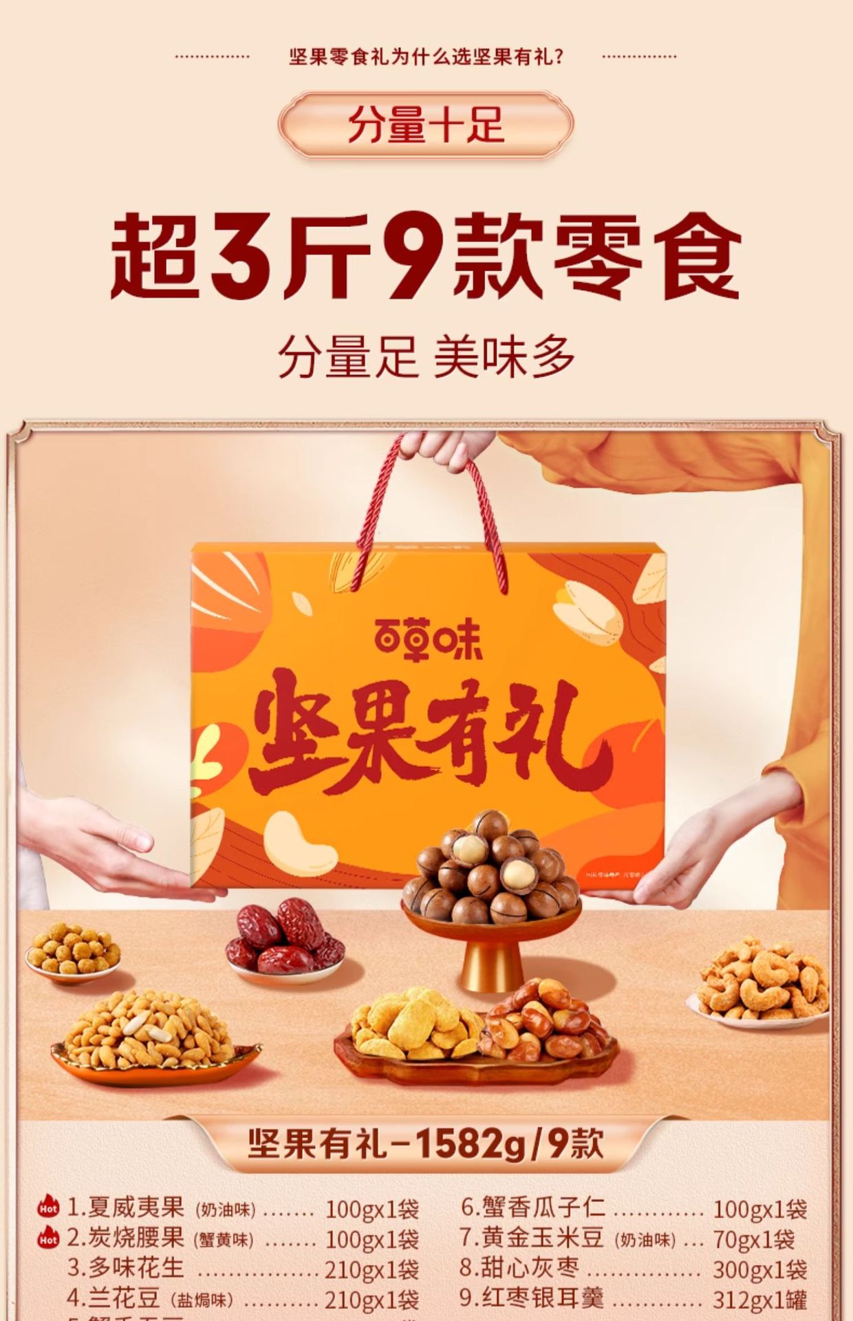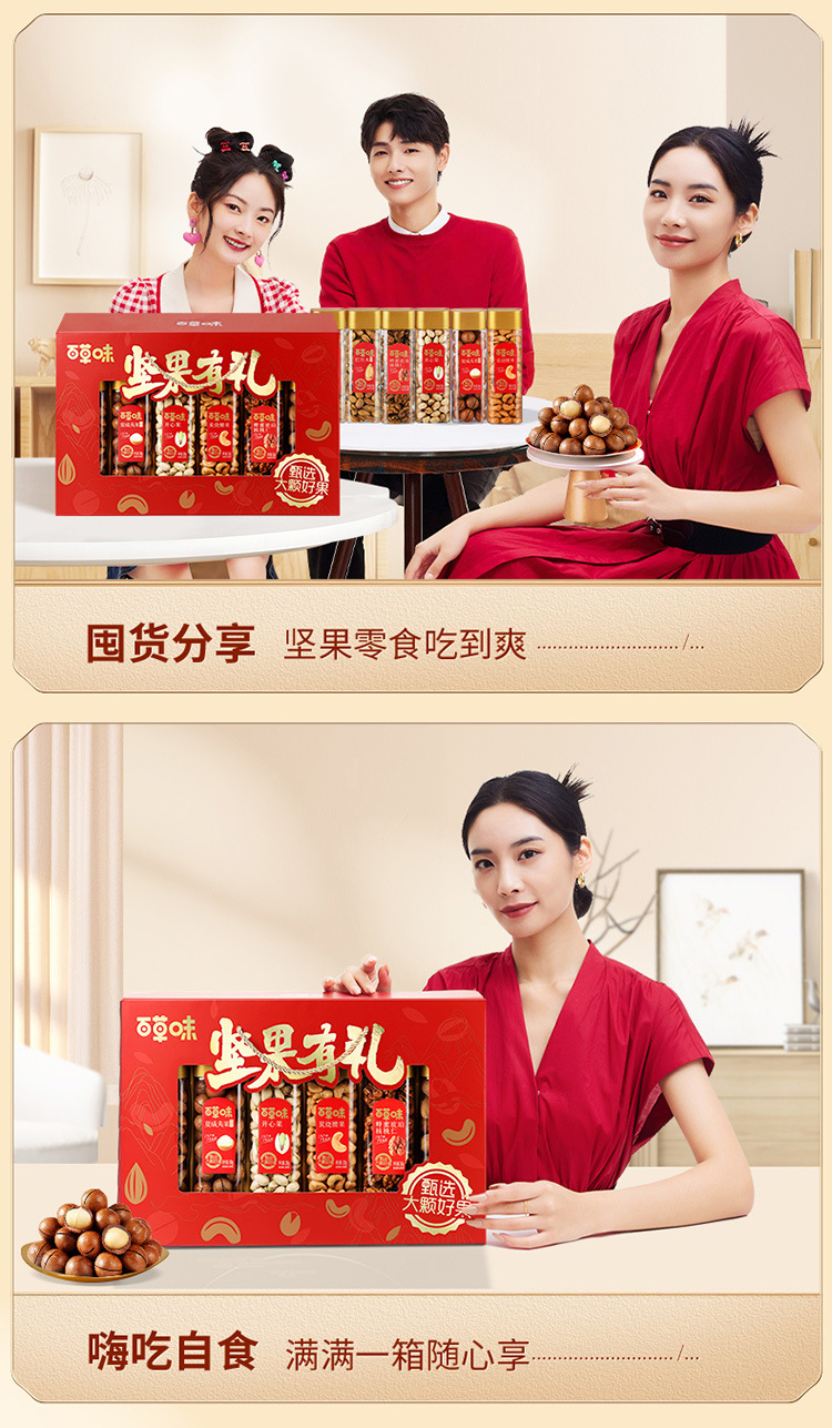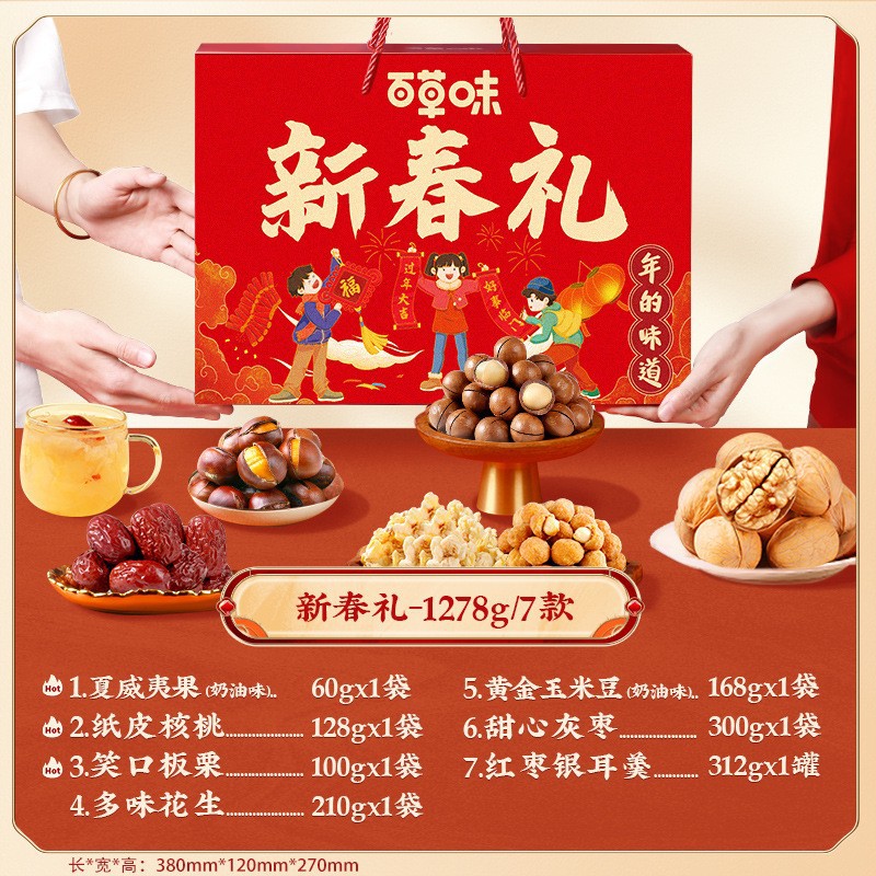 【佳节优选,鸿运大年礼!】百草味年货坚果大礼包,每日坚果零食礼盒,休闲健康混合干果春节送礼,是您送亲友、招待客人或自享美味的理想选择