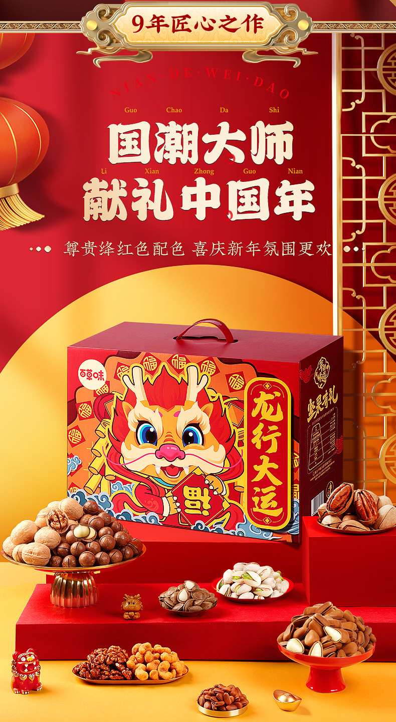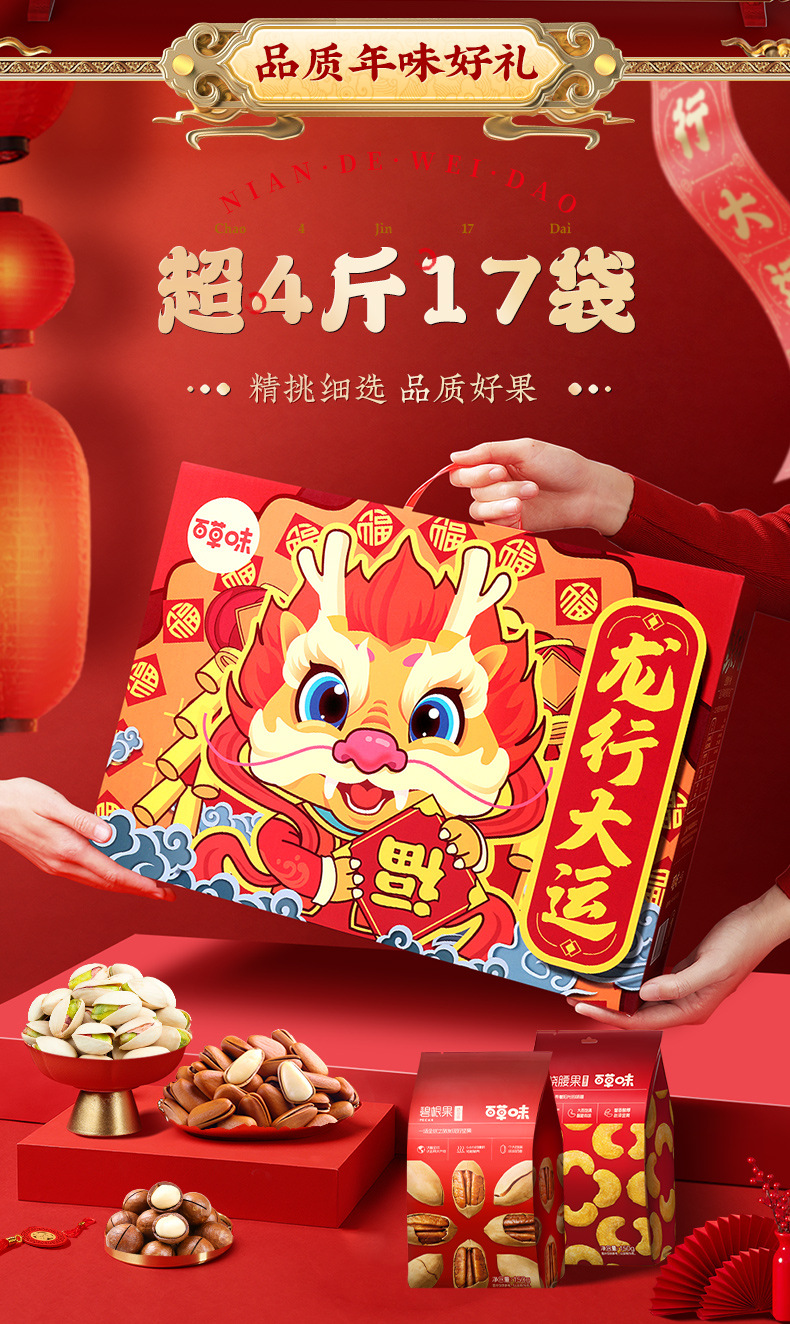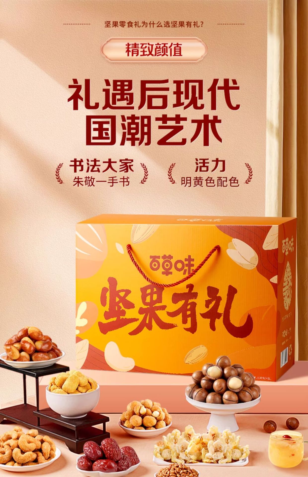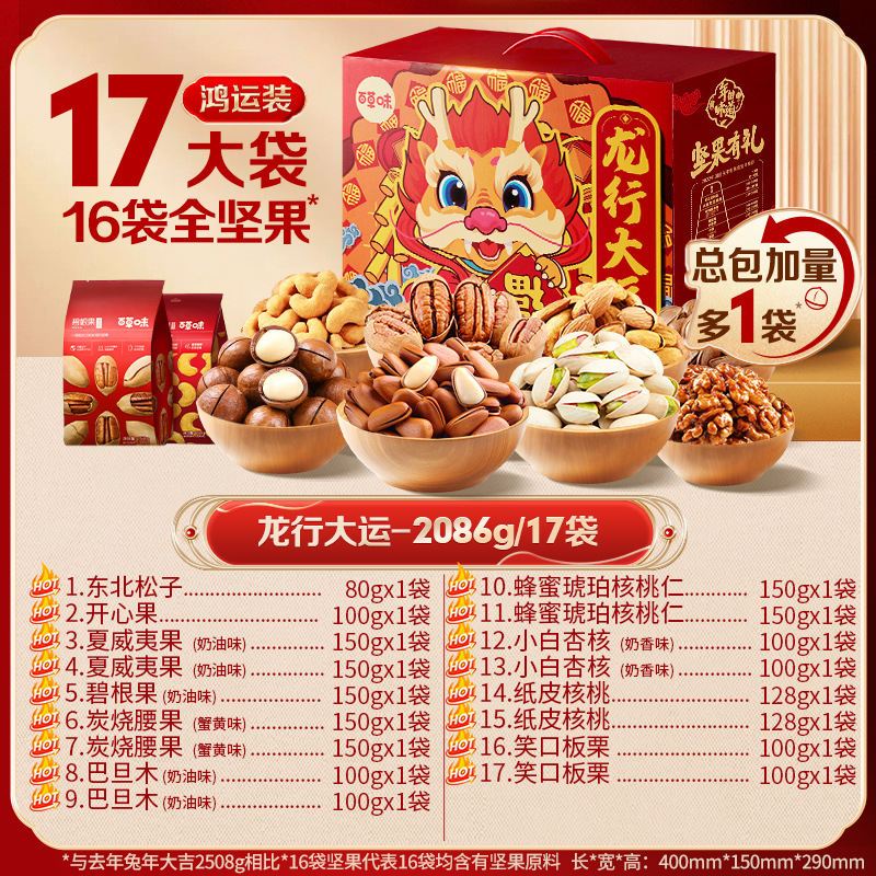 【佳节优选,鸿运大年礼!】百草味年货坚果大礼包,每日坚果零食礼盒,休闲健康混合干果春节送礼,是您送亲友、招待客人或自享美味的理想选择