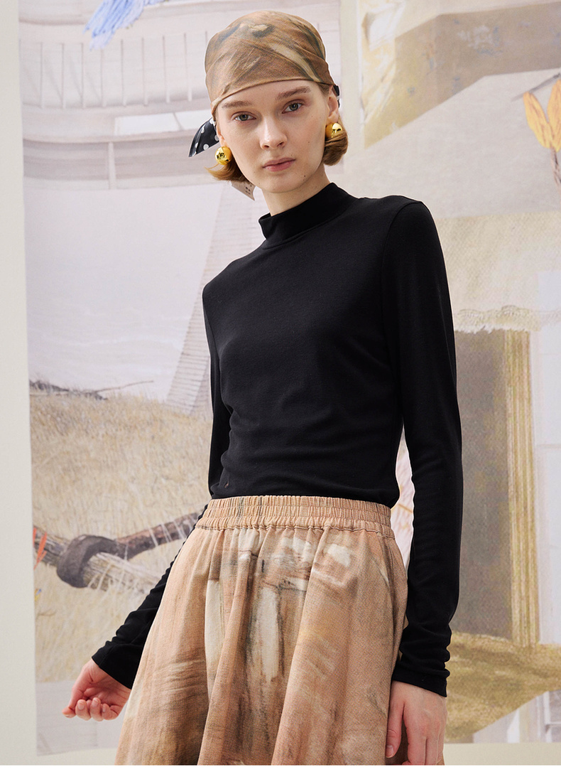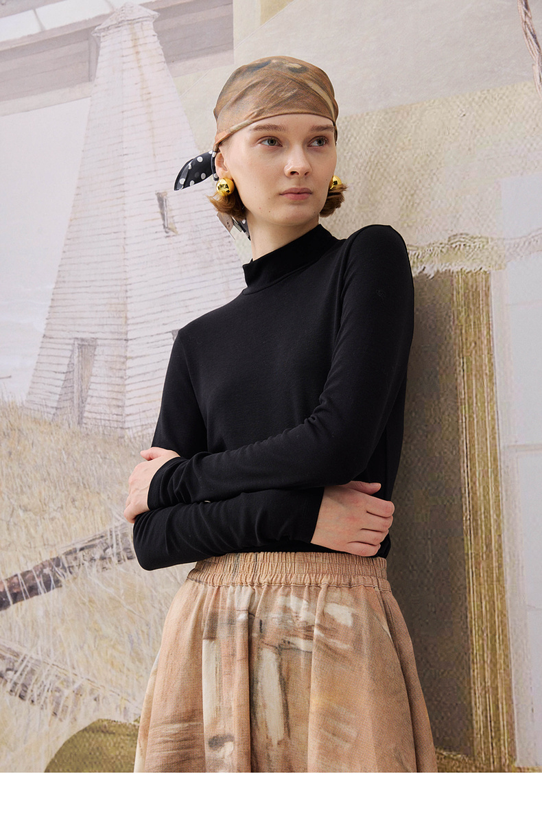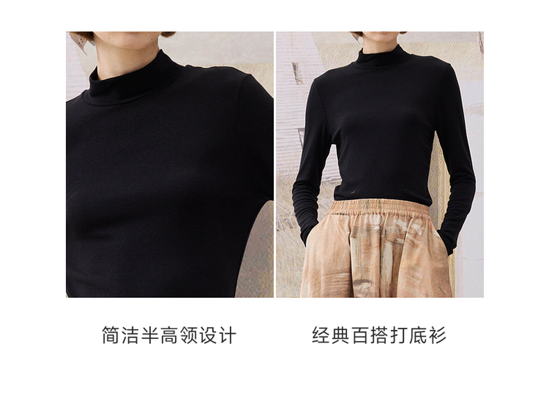 谜底紧身打底T恤长袖2025冬季新品亲肤弹力舒适半高领女254MT1453