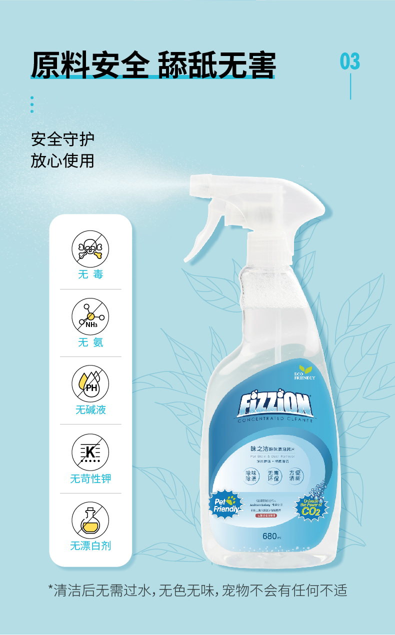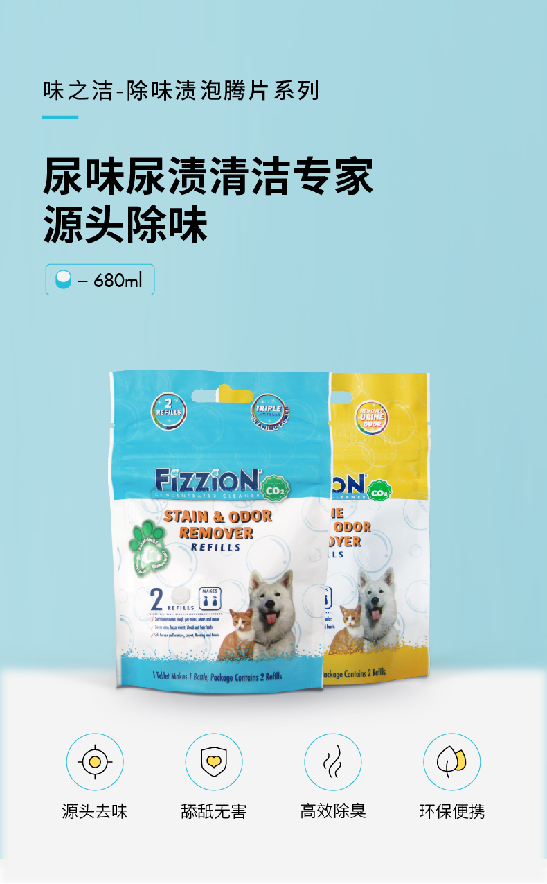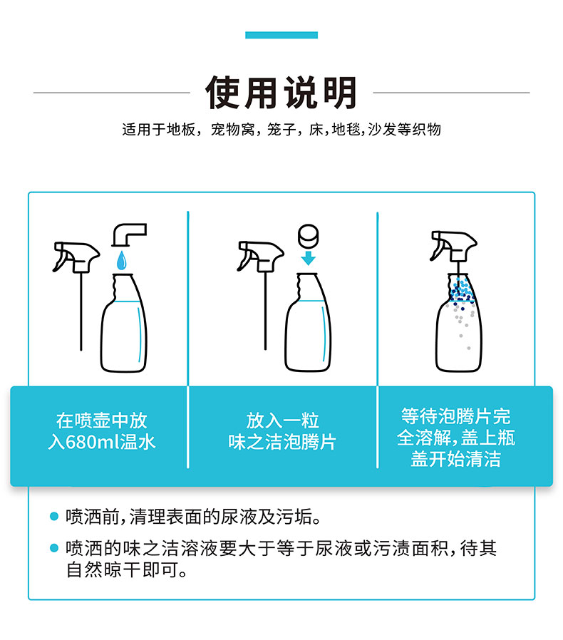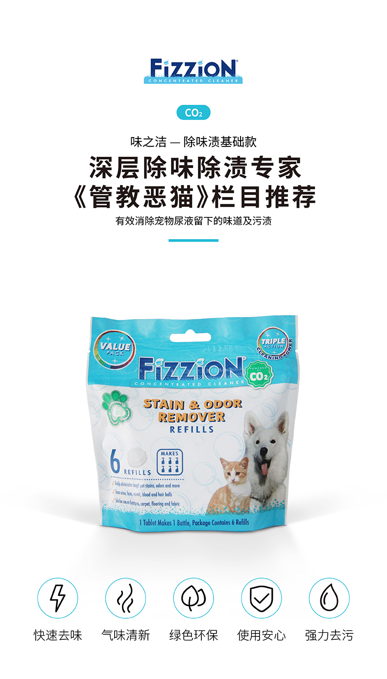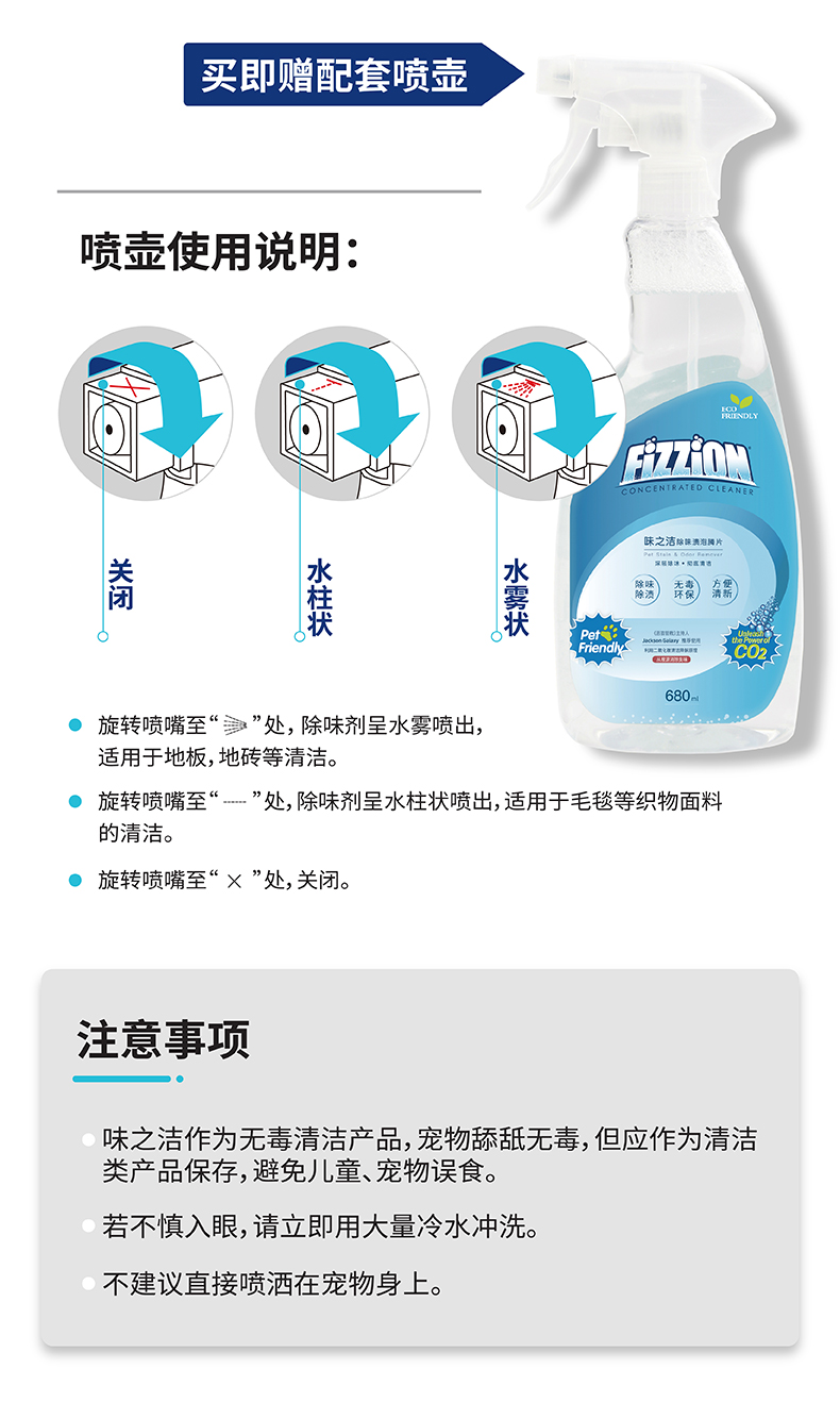 味之洁Fizzion宠物消毒室内生物酶除臭猫狗尿除味剂被子沙发去味(送喷壶)