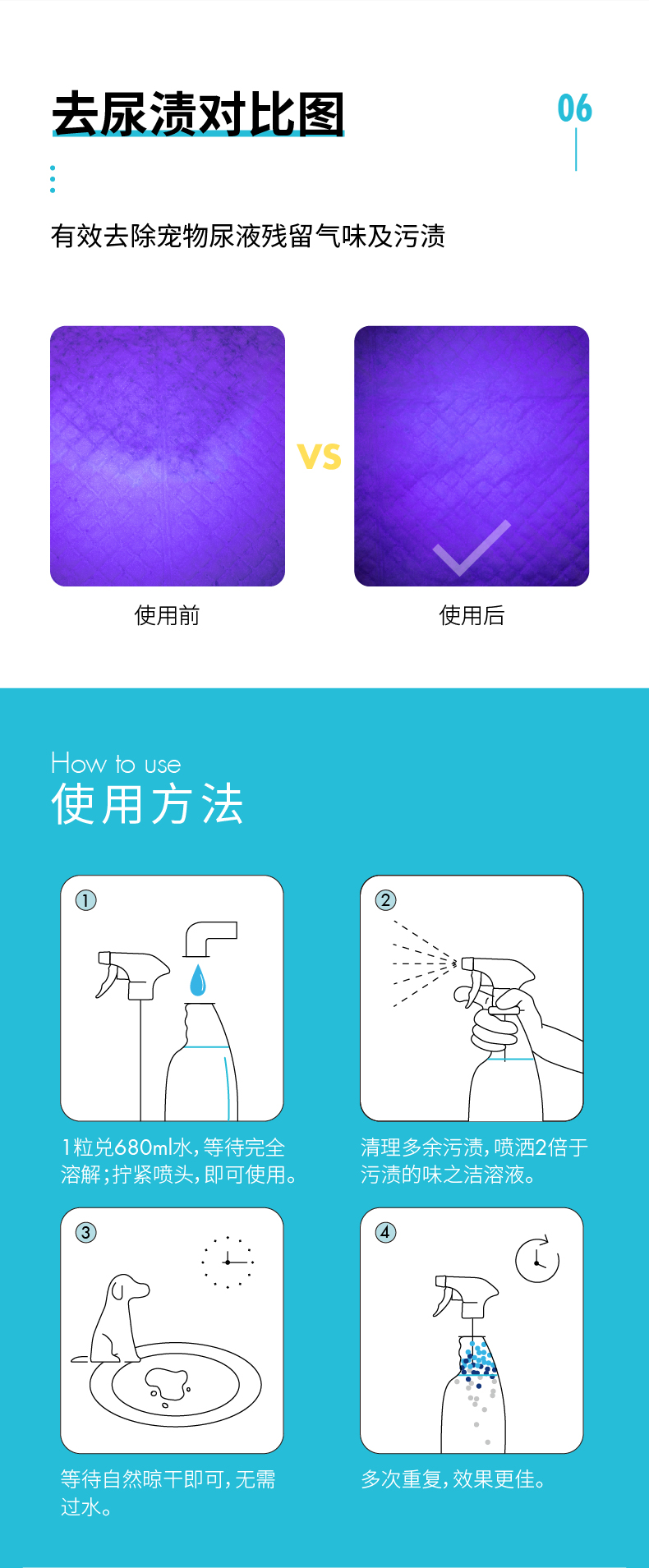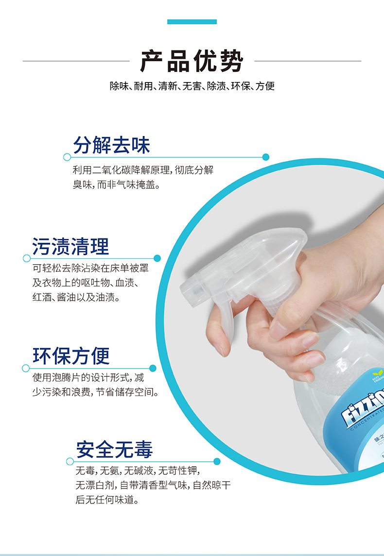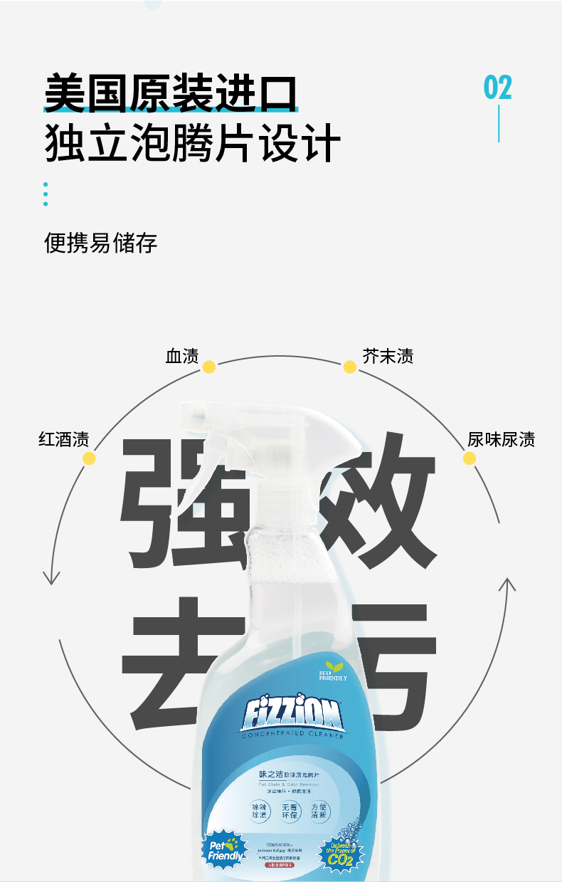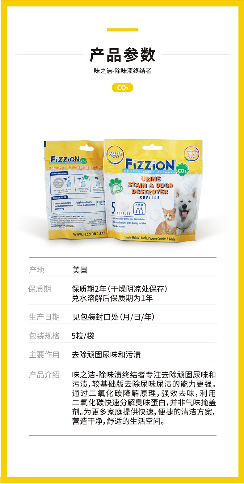 味之洁Fizzion宠物消毒室内生物酶除臭猫狗尿除味剂被子沙发去味(送喷壶)