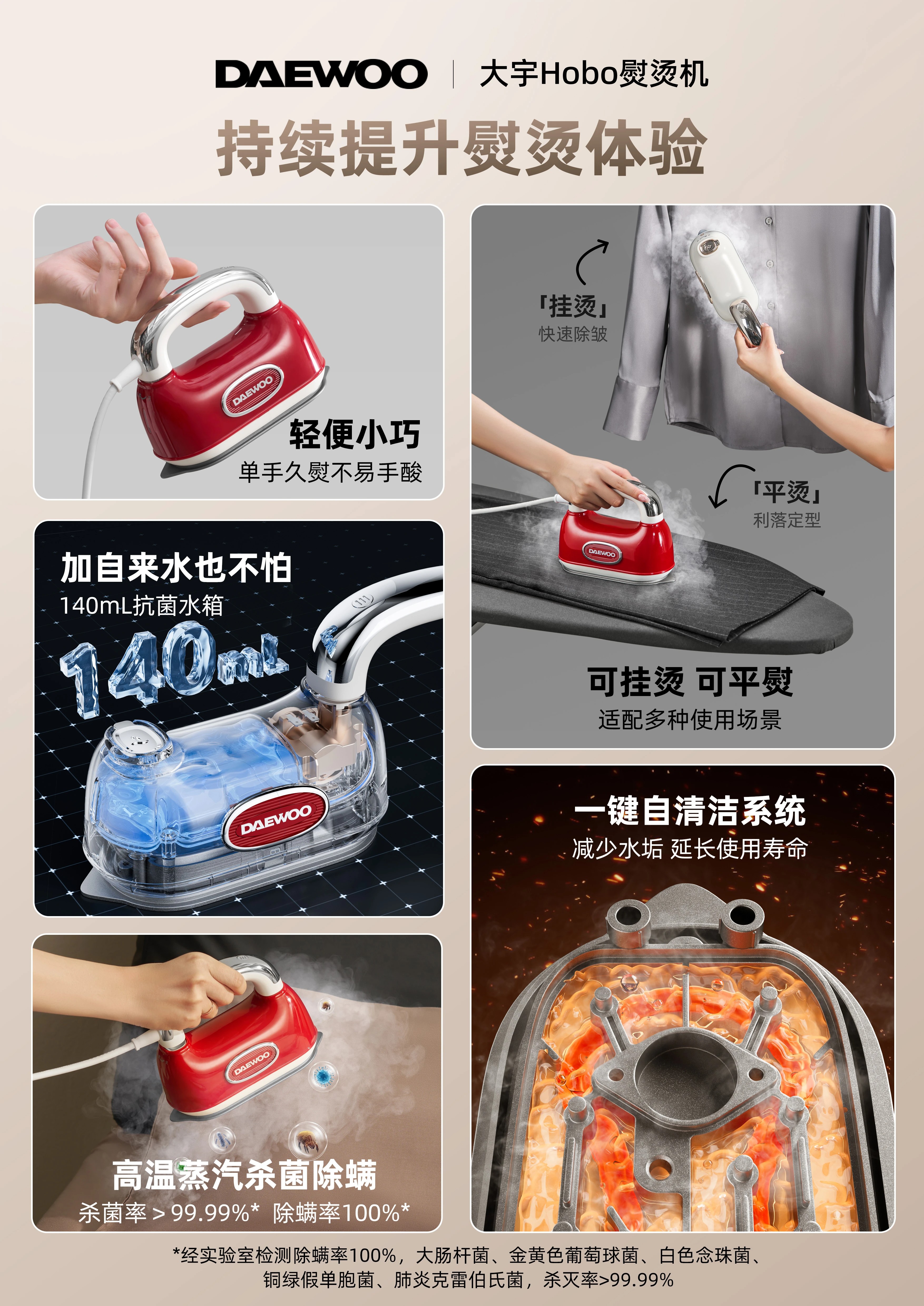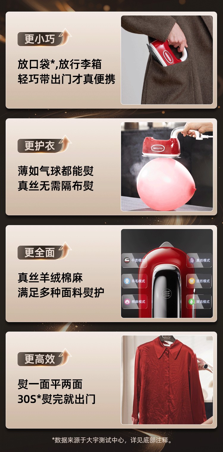 大宇hobo手持熨烫机, 6种熨烫模式,颜值高身材小,高温杀菌除螨【G】