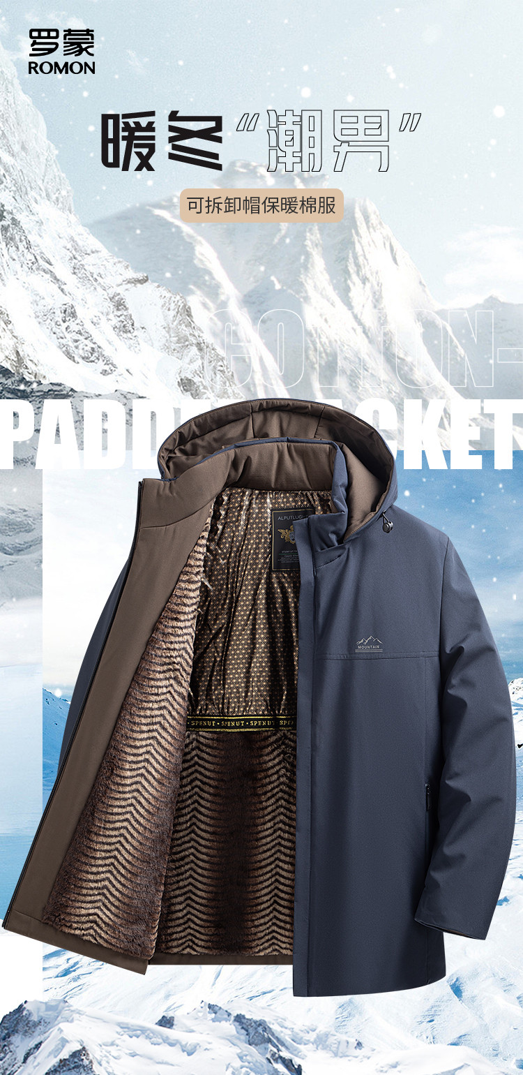 【帽子可脱卸】罗蒙秋冬保暖棉服男士外套舒适棉衣外套男百搭男士棉衣简约棉衣男