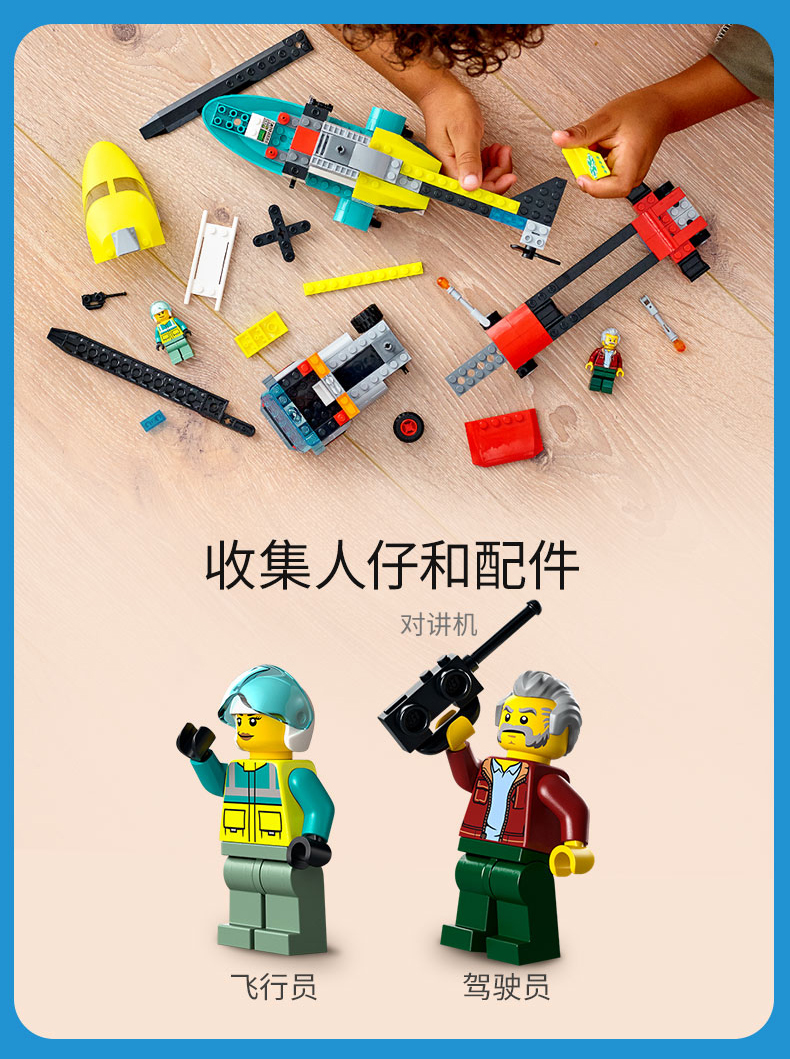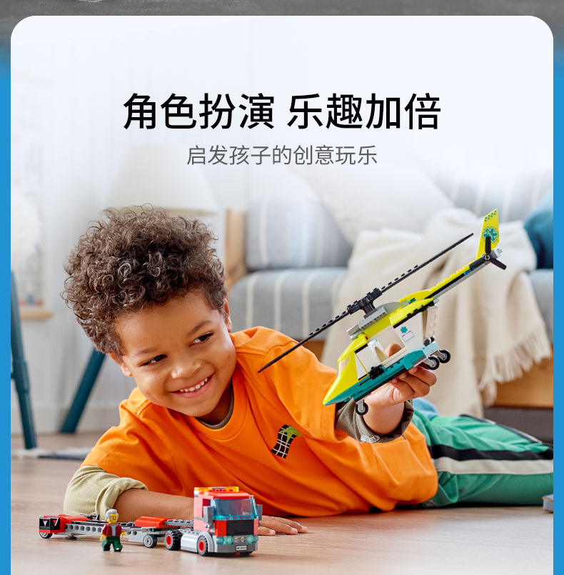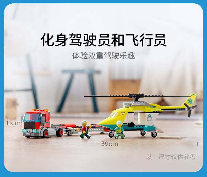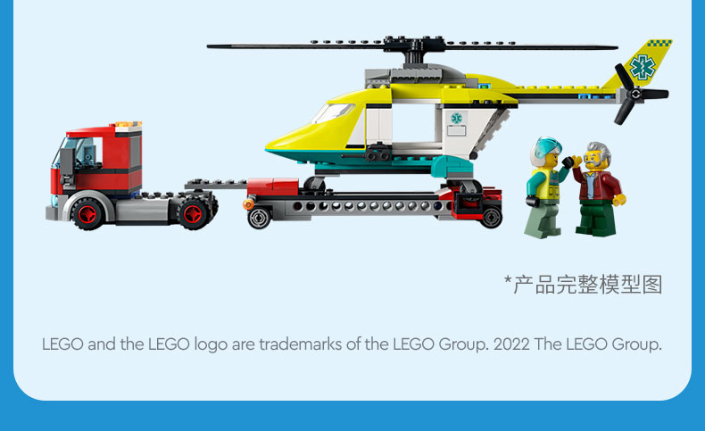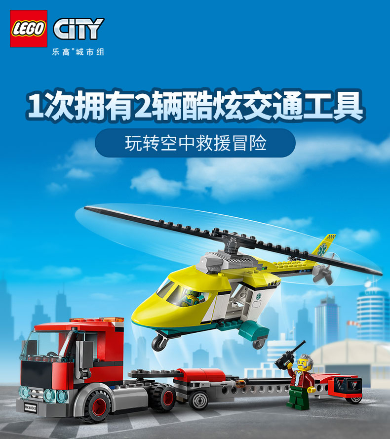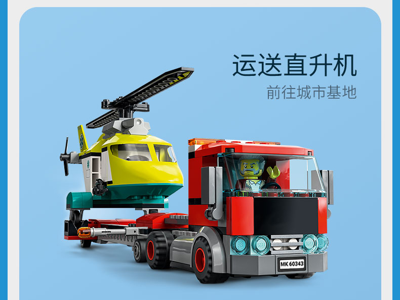 乐高城市系列60343救援直升机运输车重型大卡车拖车