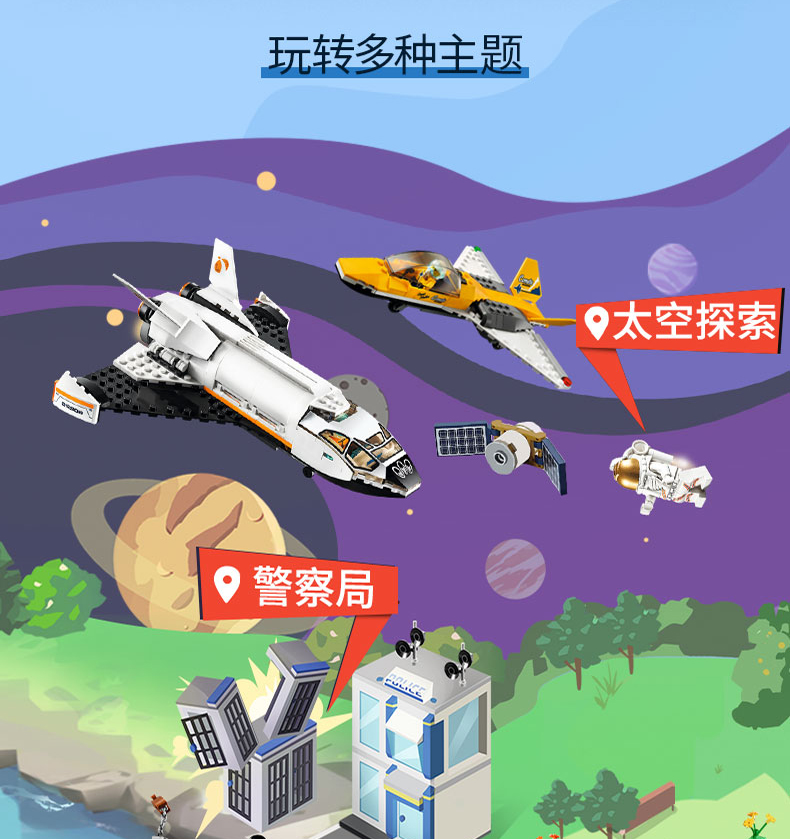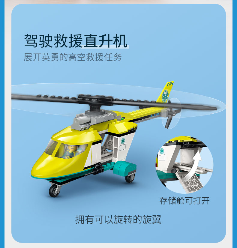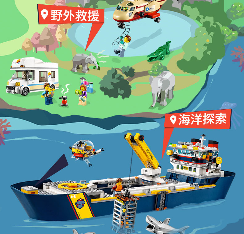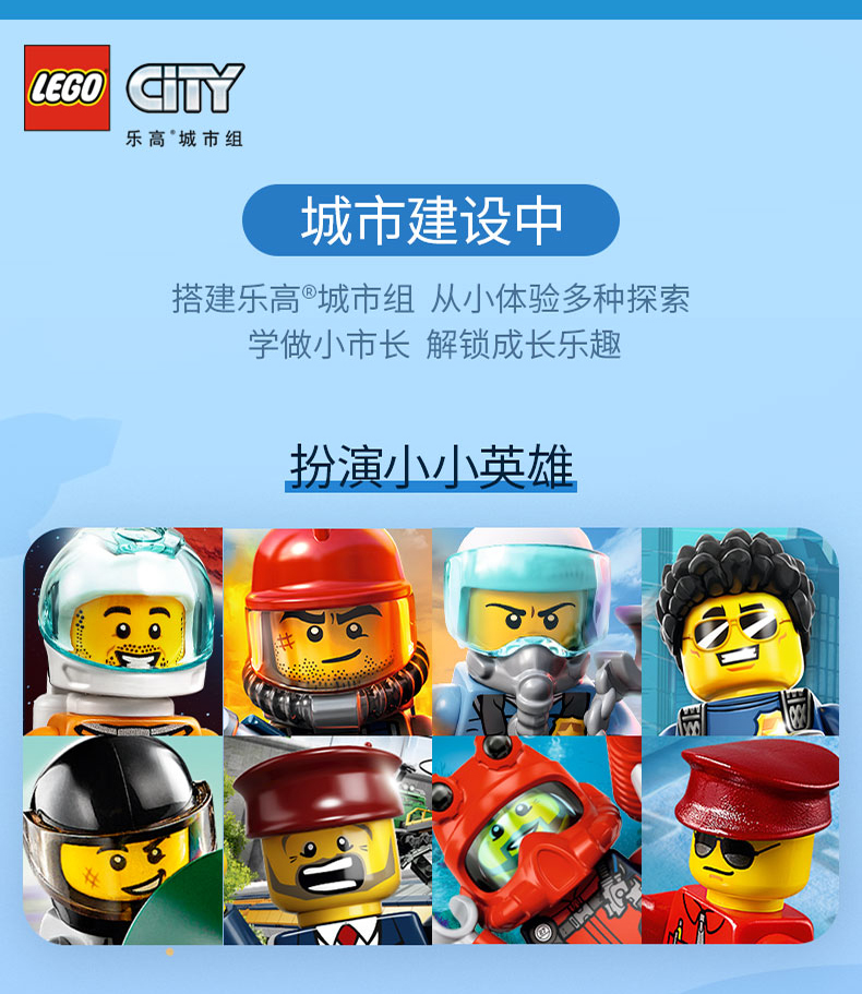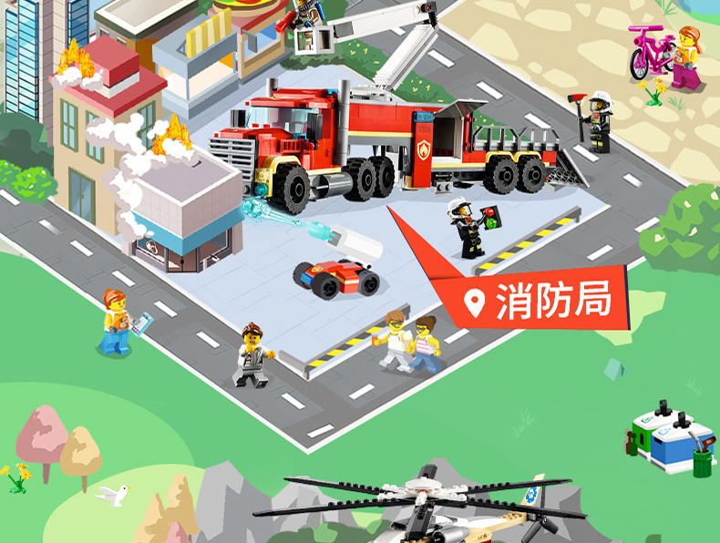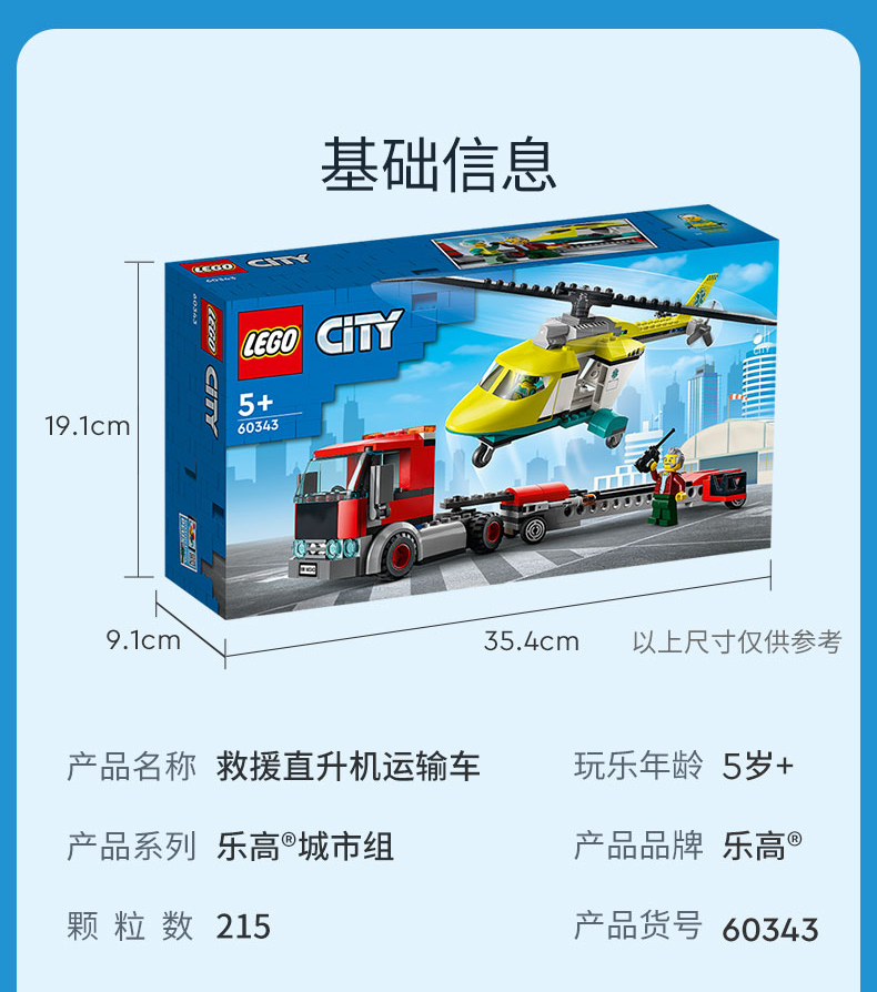 乐高城市系列60343救援直升机运输车重型大卡车拖车