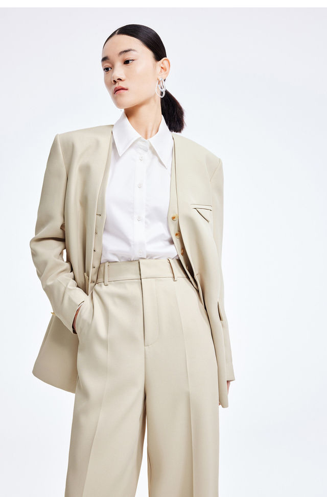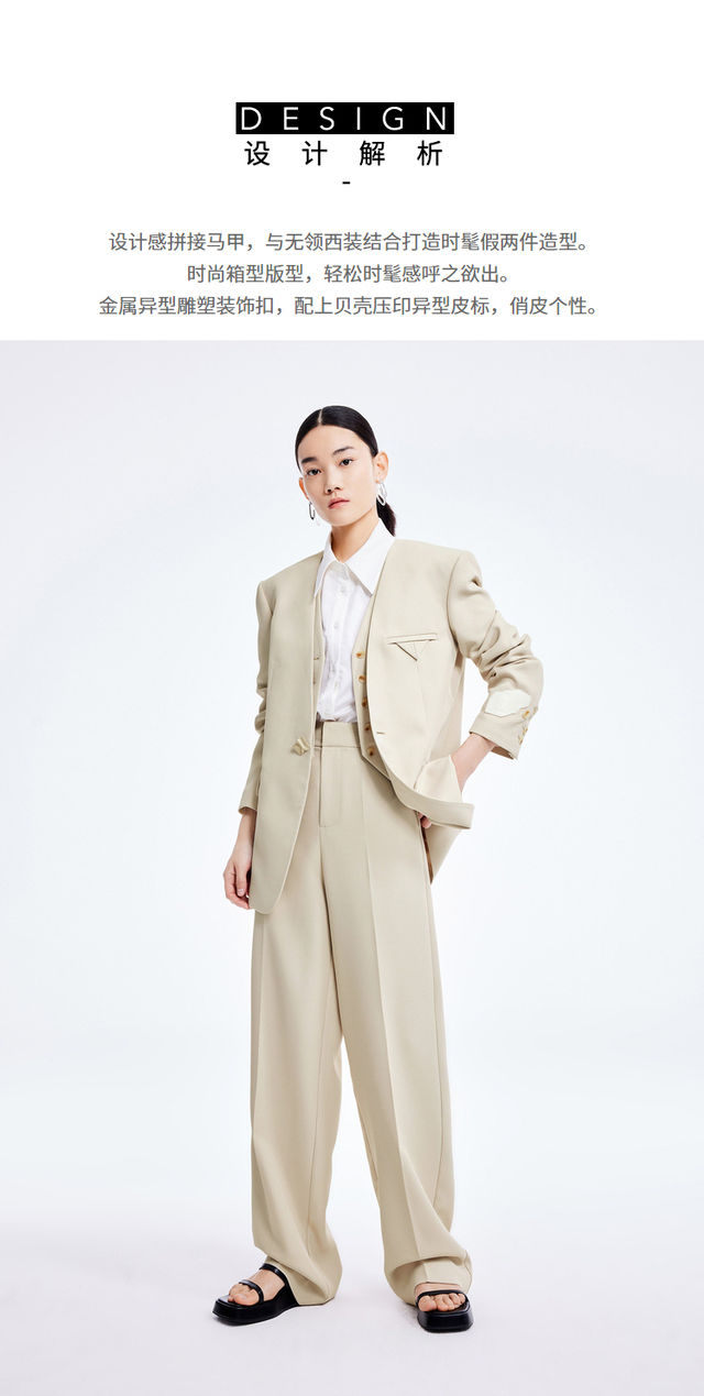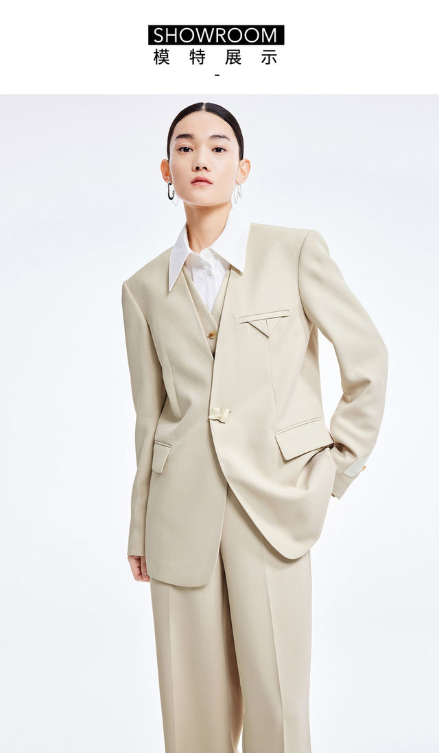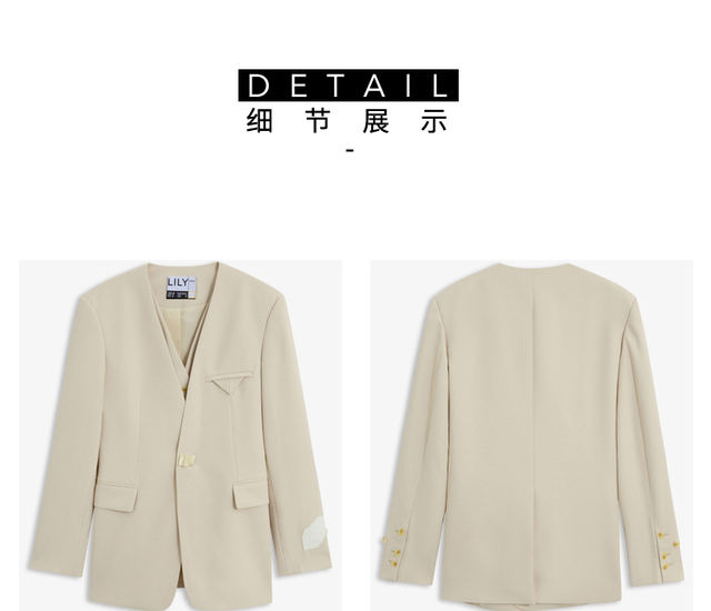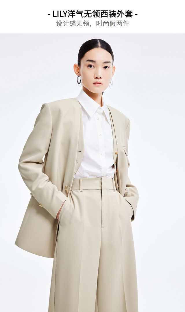LILY2022夏新款女装设计感小众洋气纯色无领西装外套122200C2126