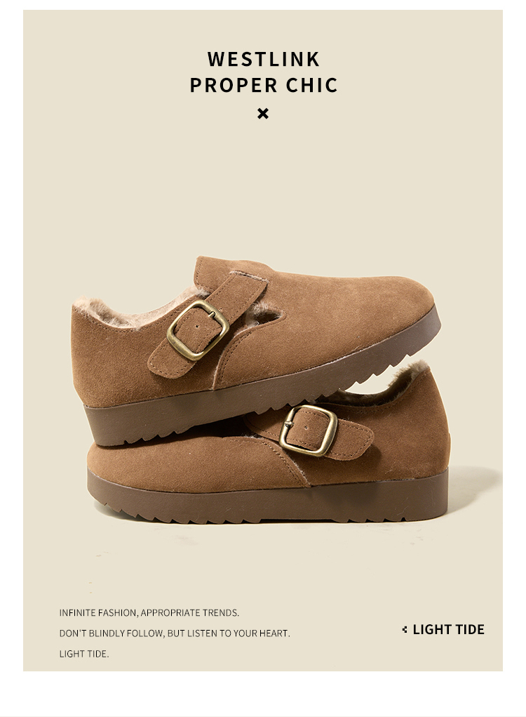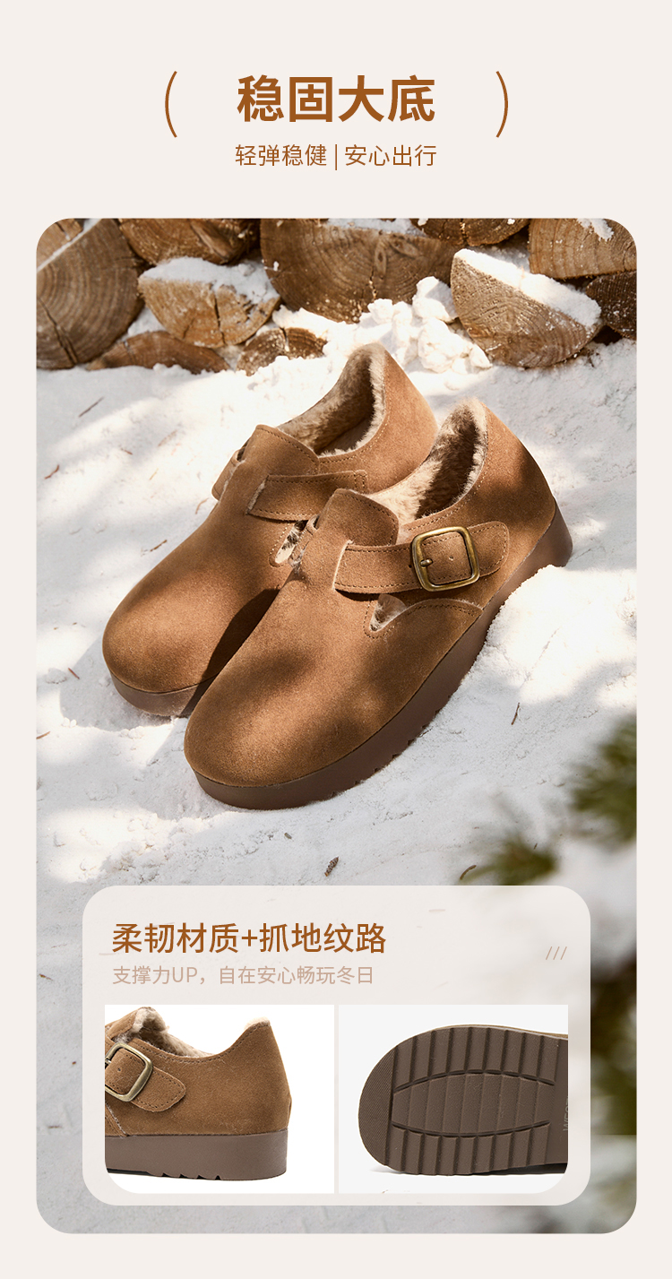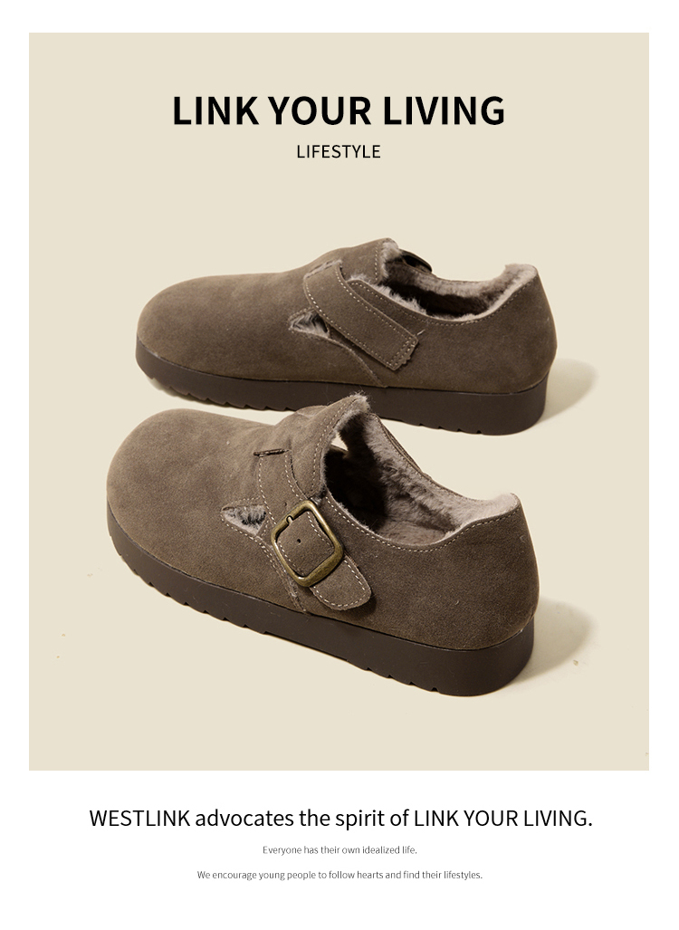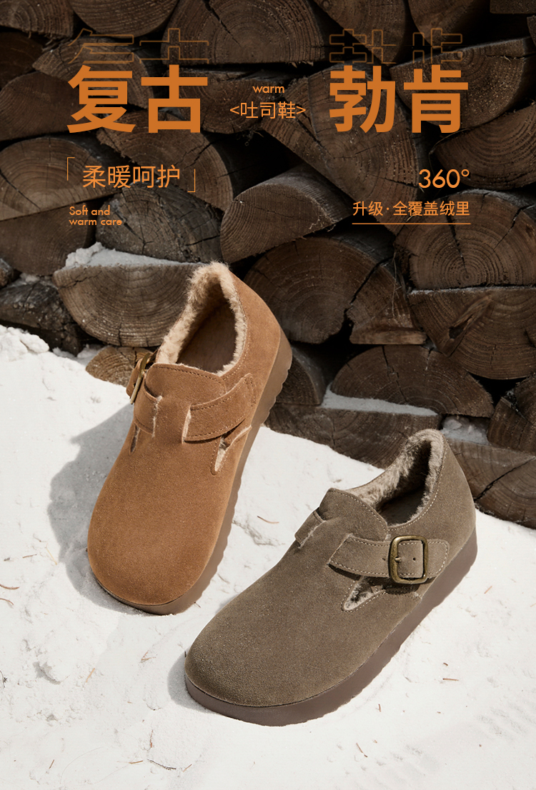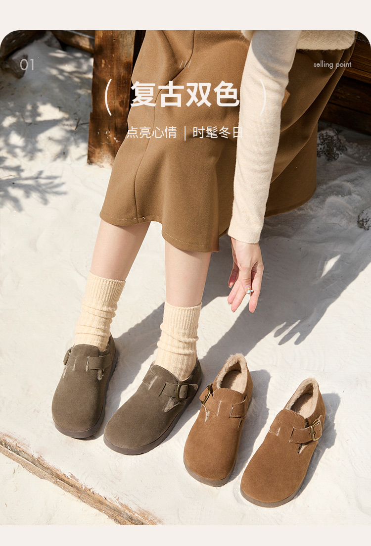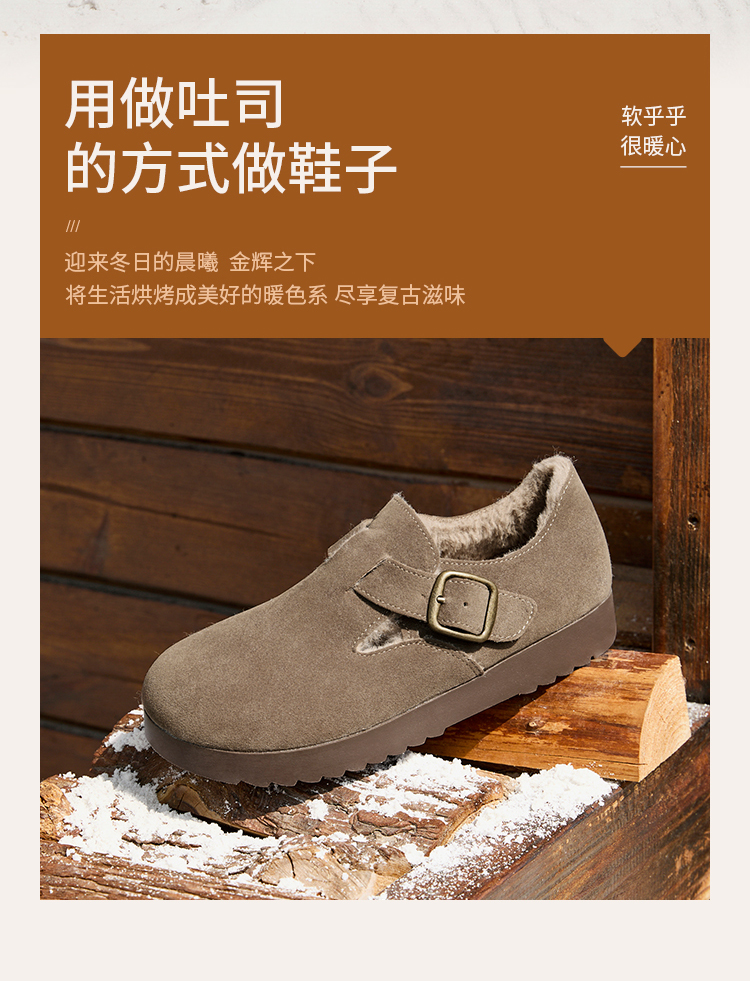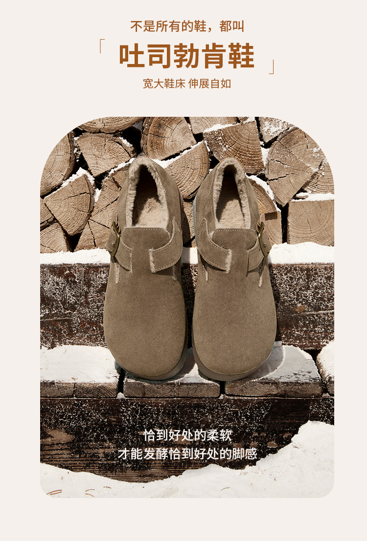 西遇厚底勃肯鞋女加绒新款冬季超火外穿一脚蹬博肯雪地鞋棉鞋V4147864