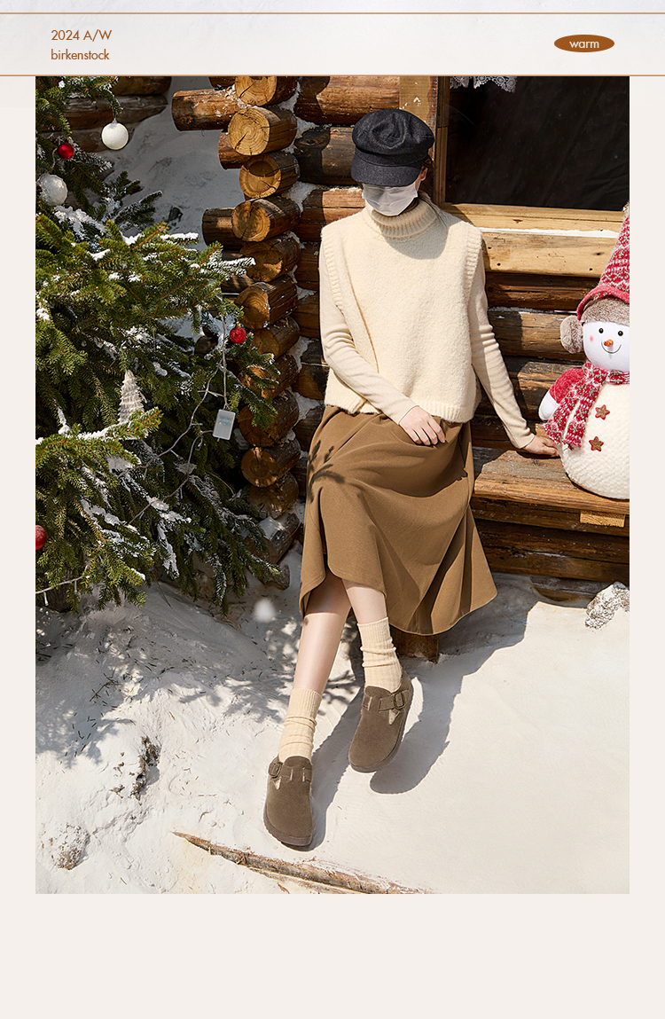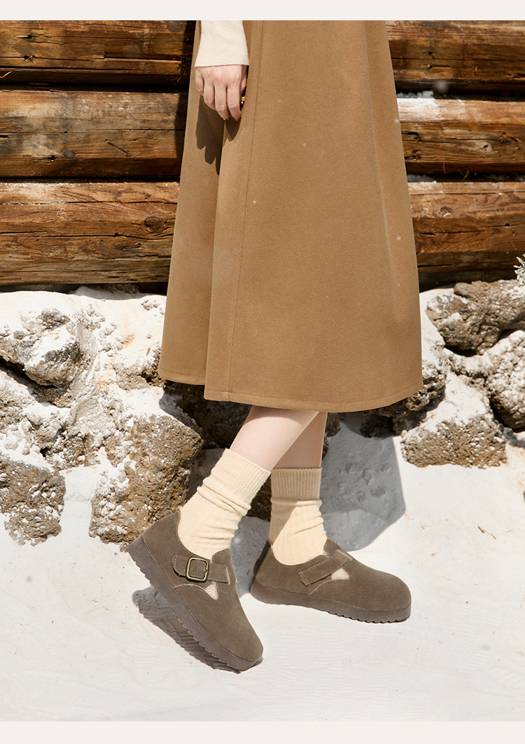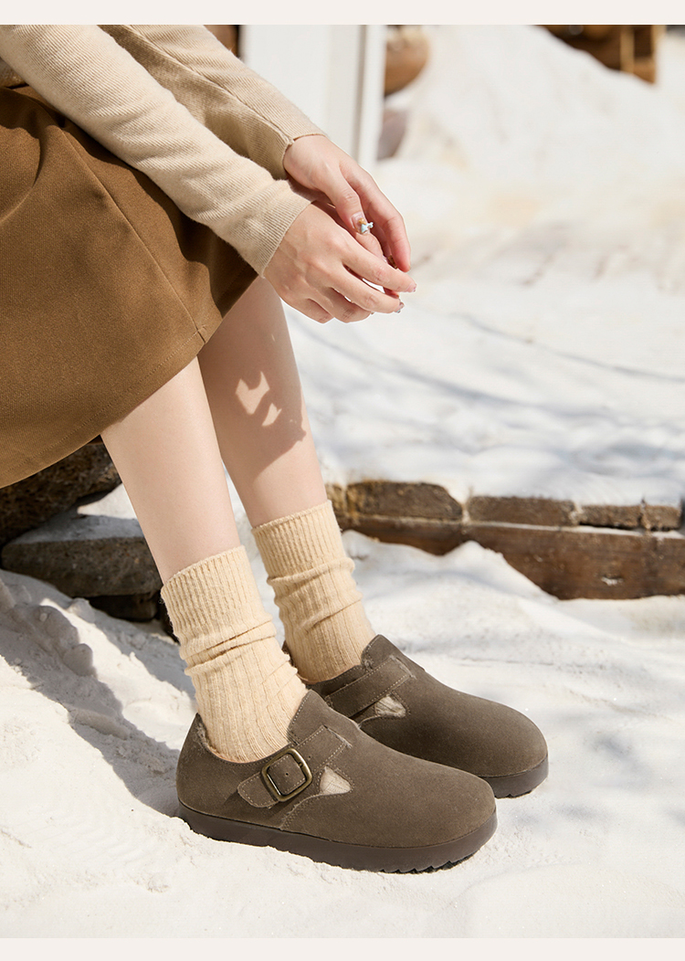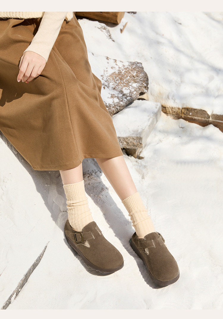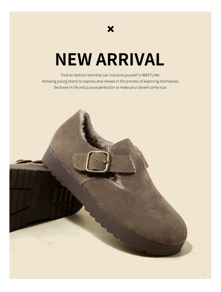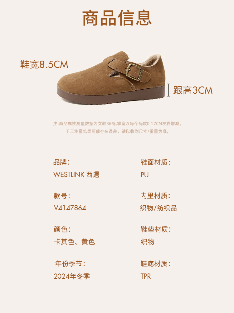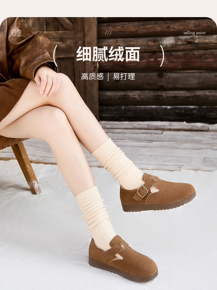 西遇厚底勃肯鞋女加绒新款冬季超火外穿一脚蹬博肯雪地鞋棉鞋V4147864