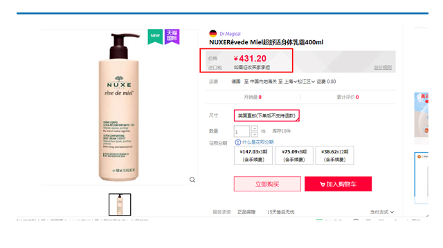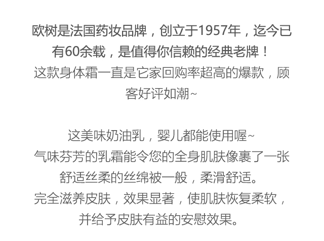 【商品名称】法国欧树蜜润体身体霜200ml