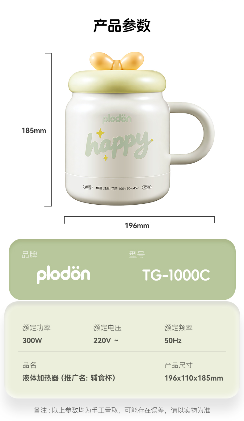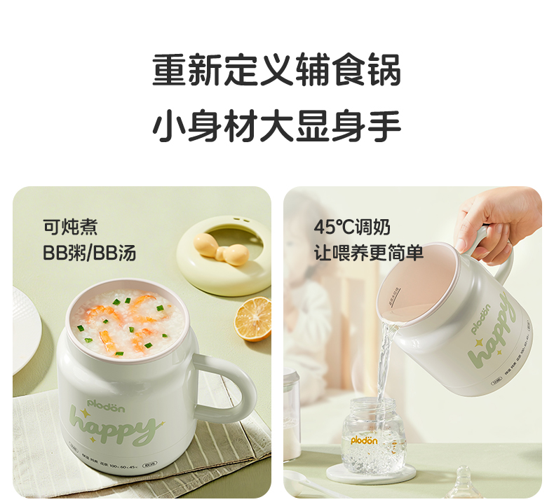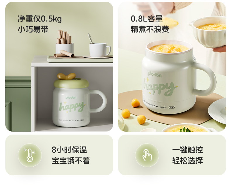 浦利顿电炖杯婴儿辅食加热牛奶电热水杯办公室烧水保温杯便携煮杯PLD-TG-1000C