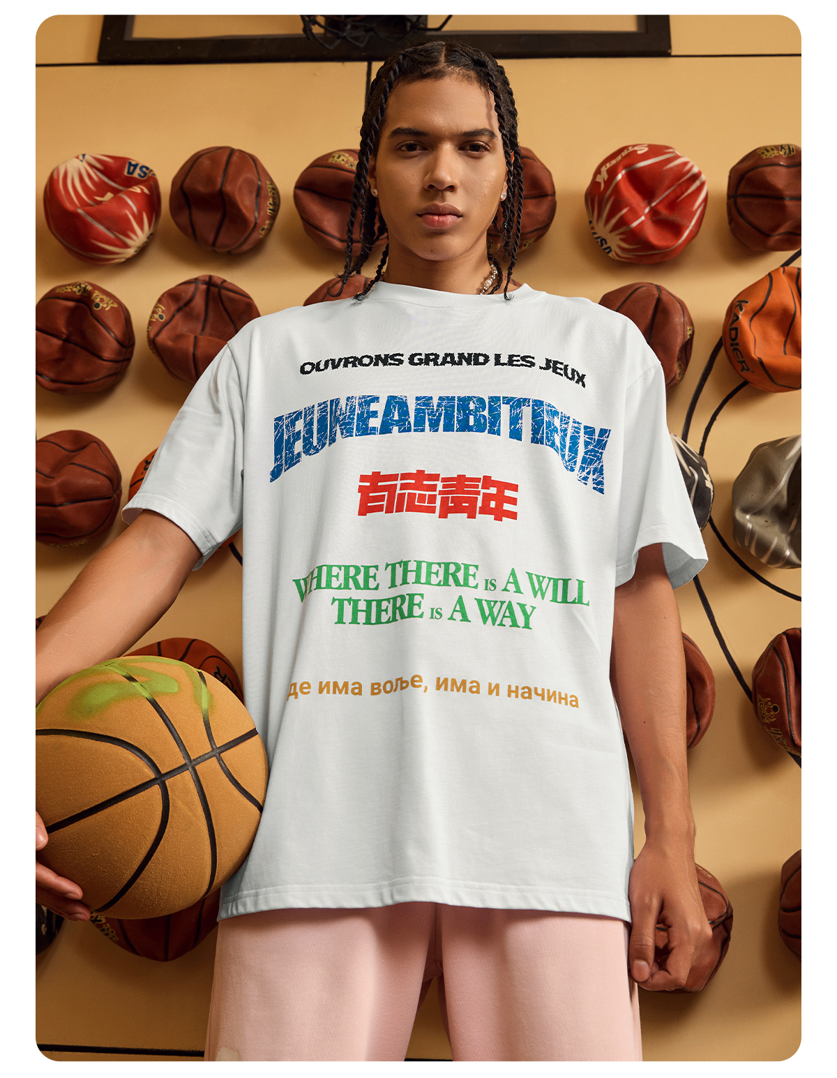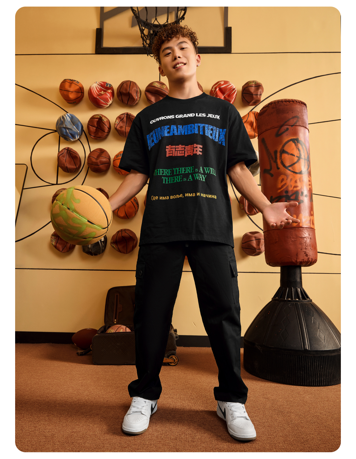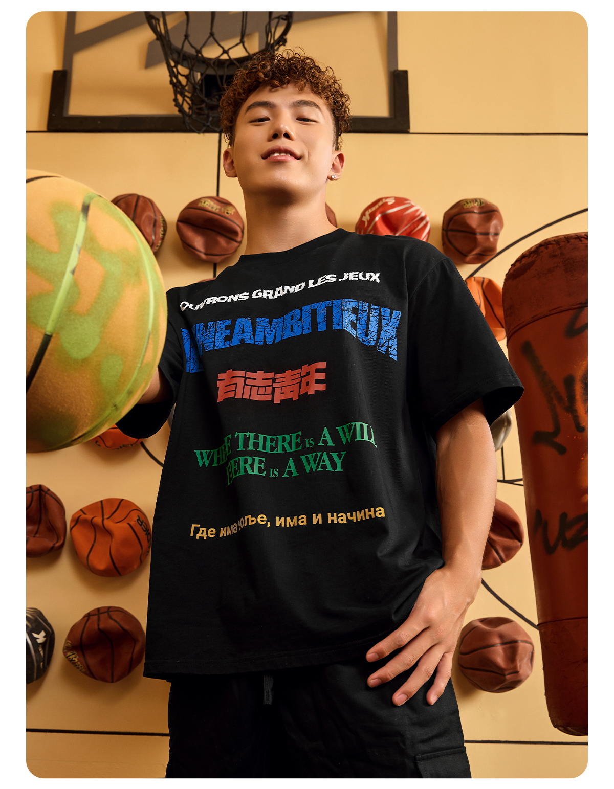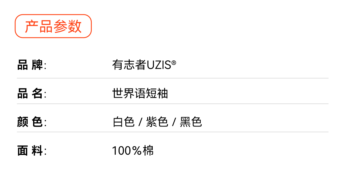 【球馆】有志者UZIS 美式潮流T恤男夏季纯棉透气篮球训练运动短袖世界语