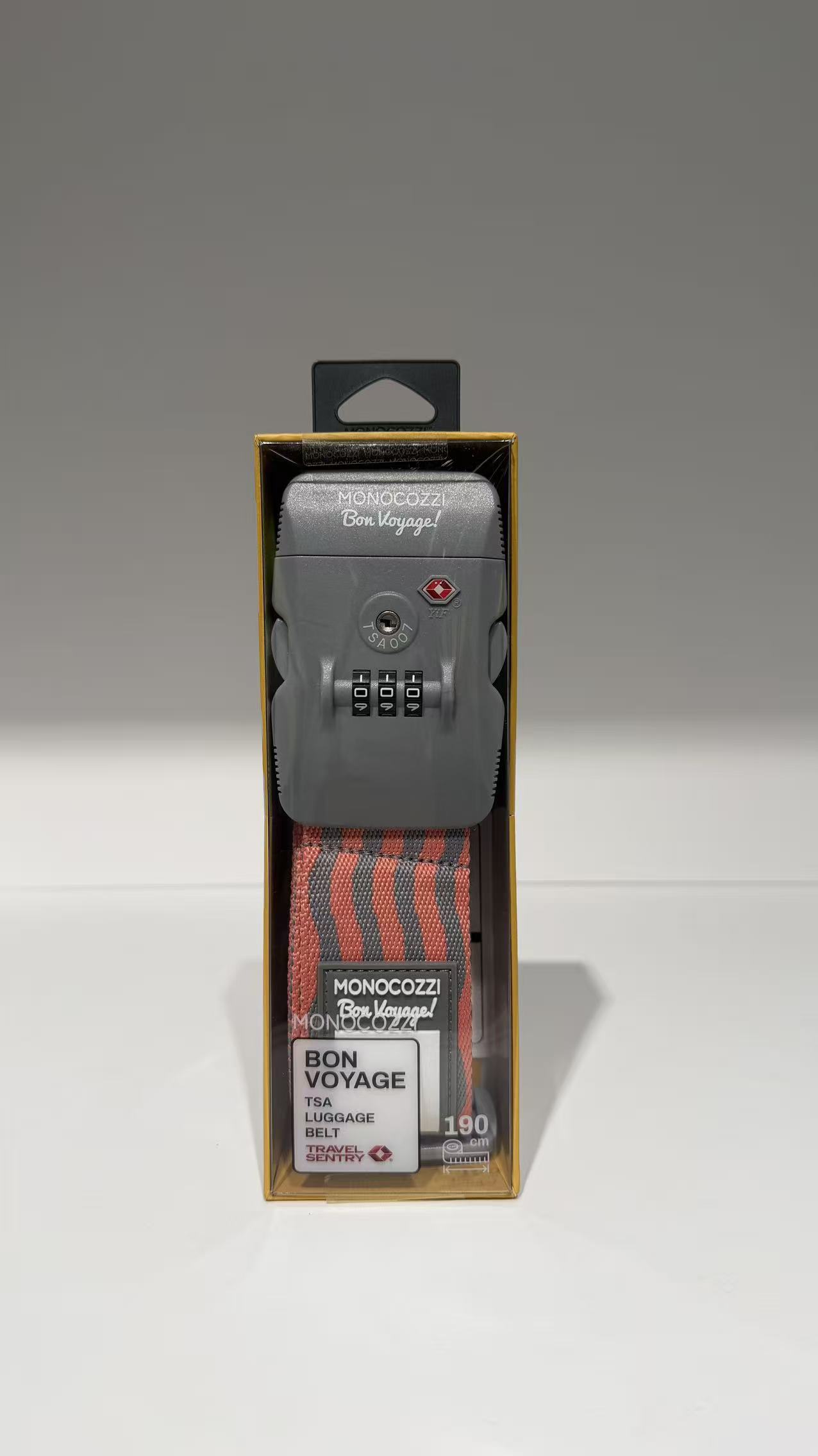 【订单实付低于299元,不发货】MONOCOZZI - BON VOYAGE系列 TSA认可锁行李带(珊瑚/灰色)男 4895199108783-F .