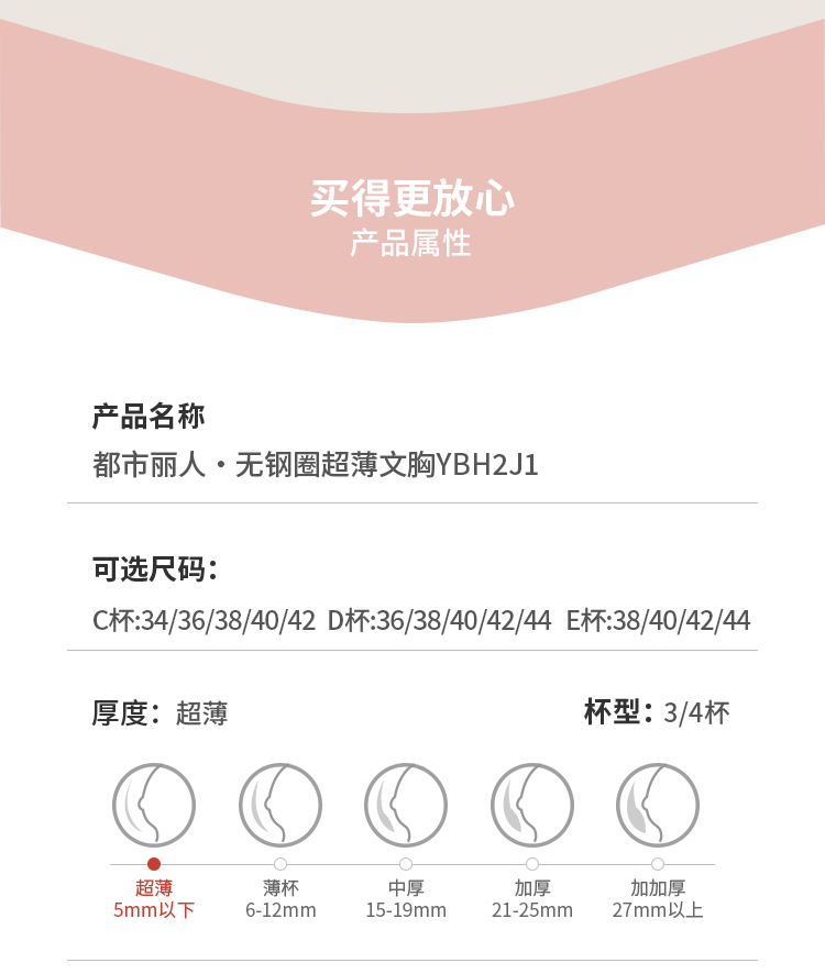 都市丽人内衣CDE:超薄蕾丝完美包容无钢圈常规文胸YBH2J1