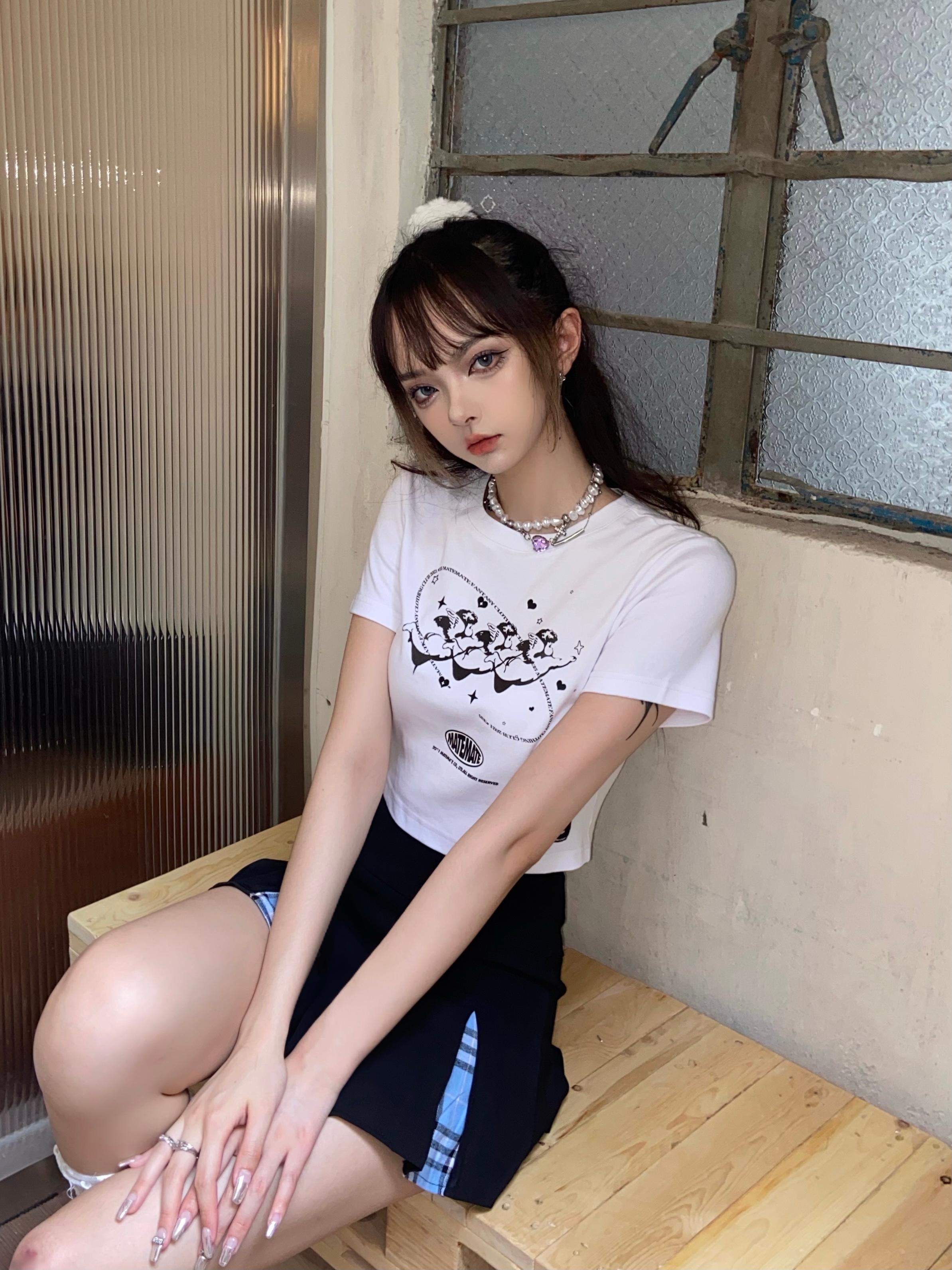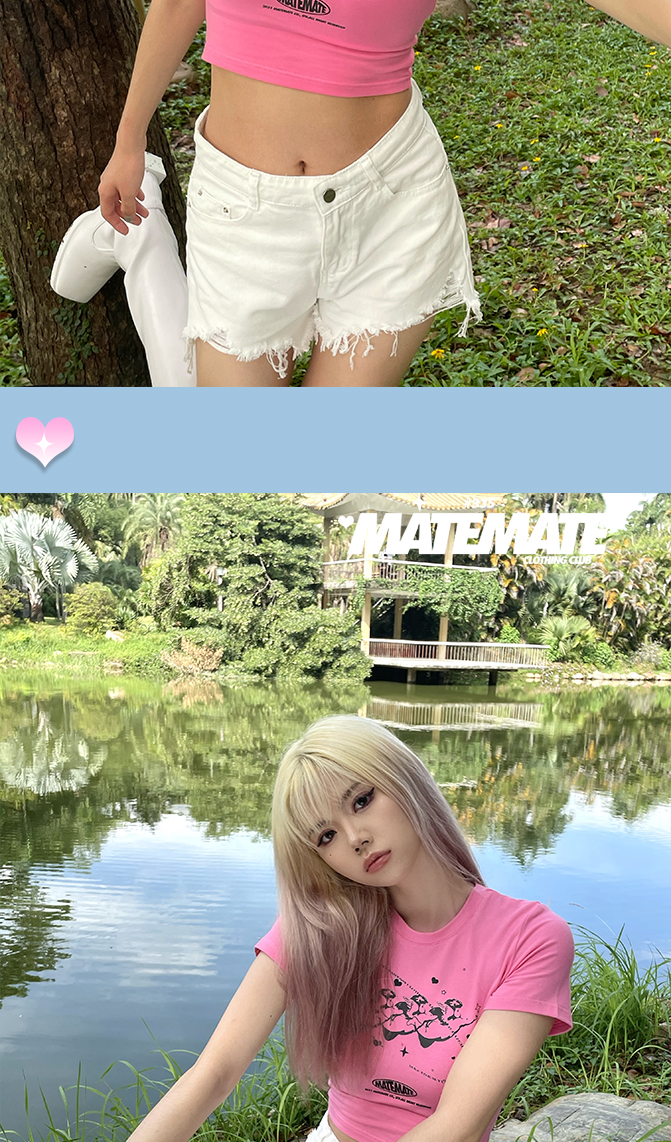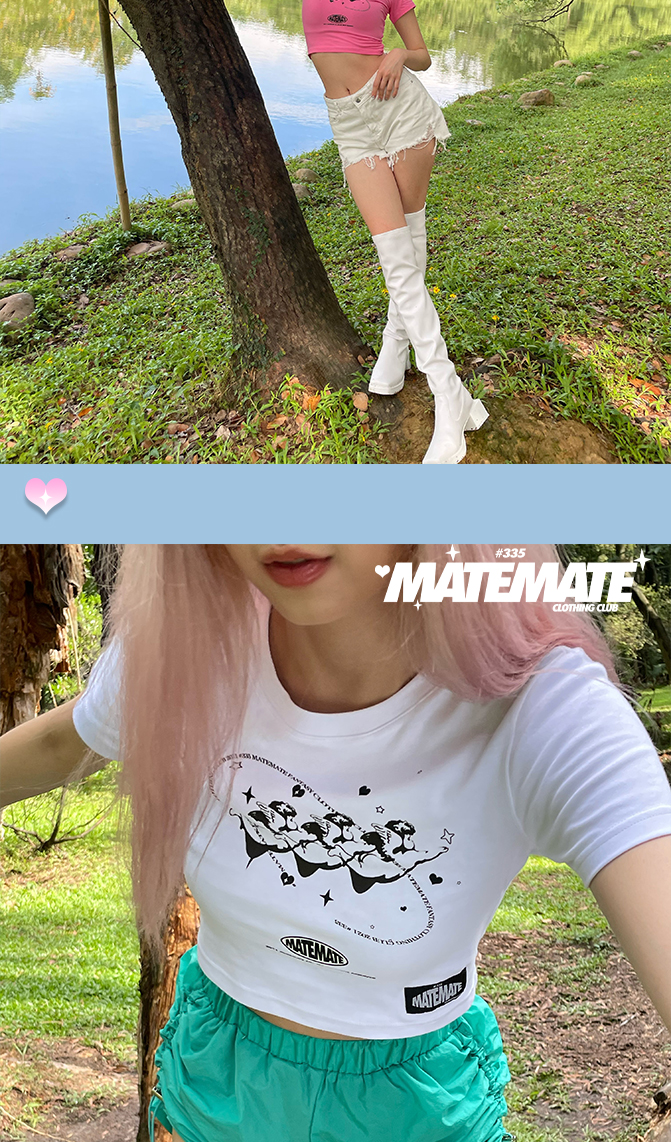 MATEMATE原创两色少女爱的丘比特logo显瘦百搭紧身纯欲甜酷短袖
