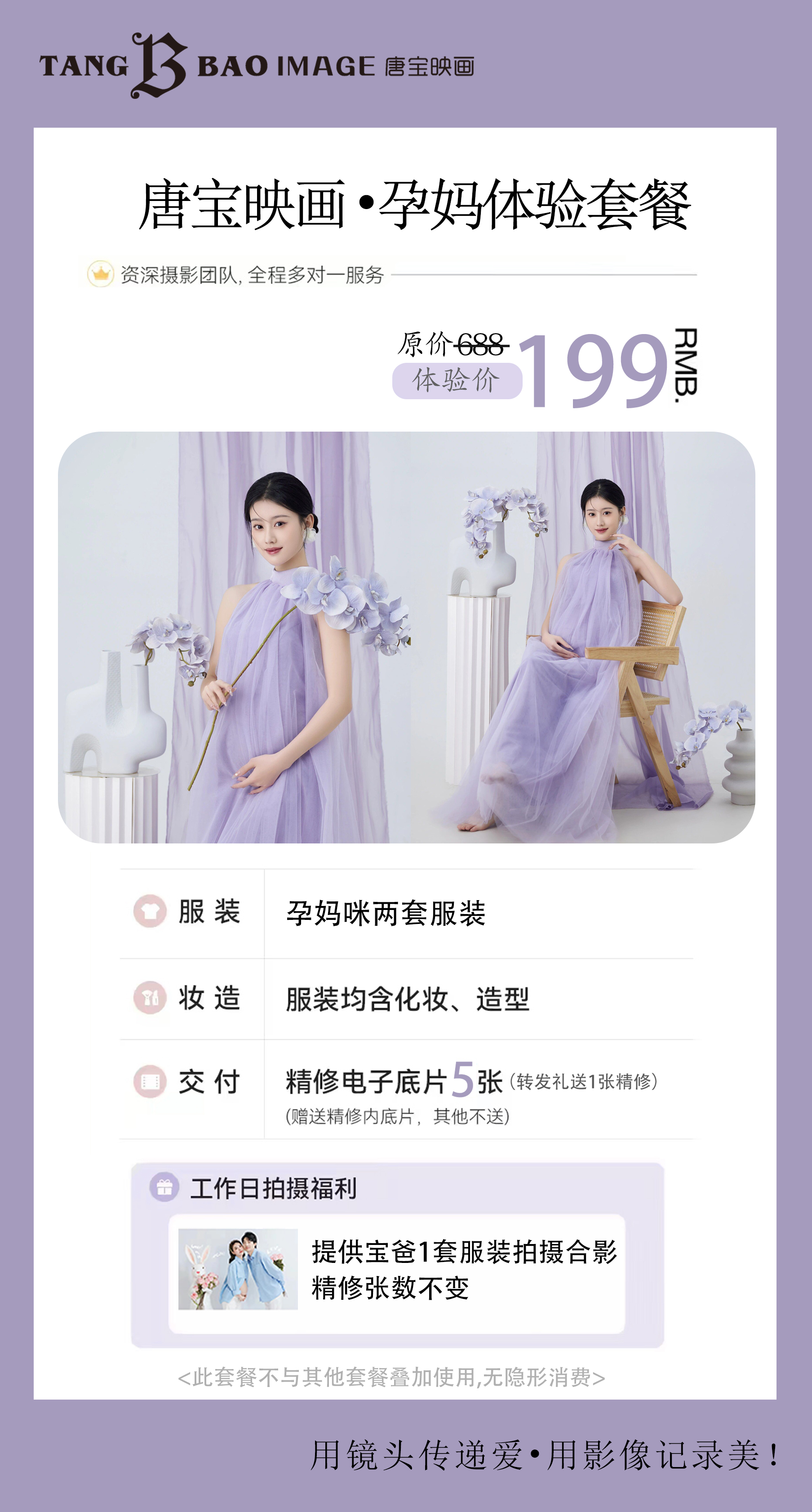 【199元6张精修】西安「唐宝映画」孕照体验拍,2套服造型+准爸爸1套衣服造型,送5张精修,参与转发分享多送一张精修!