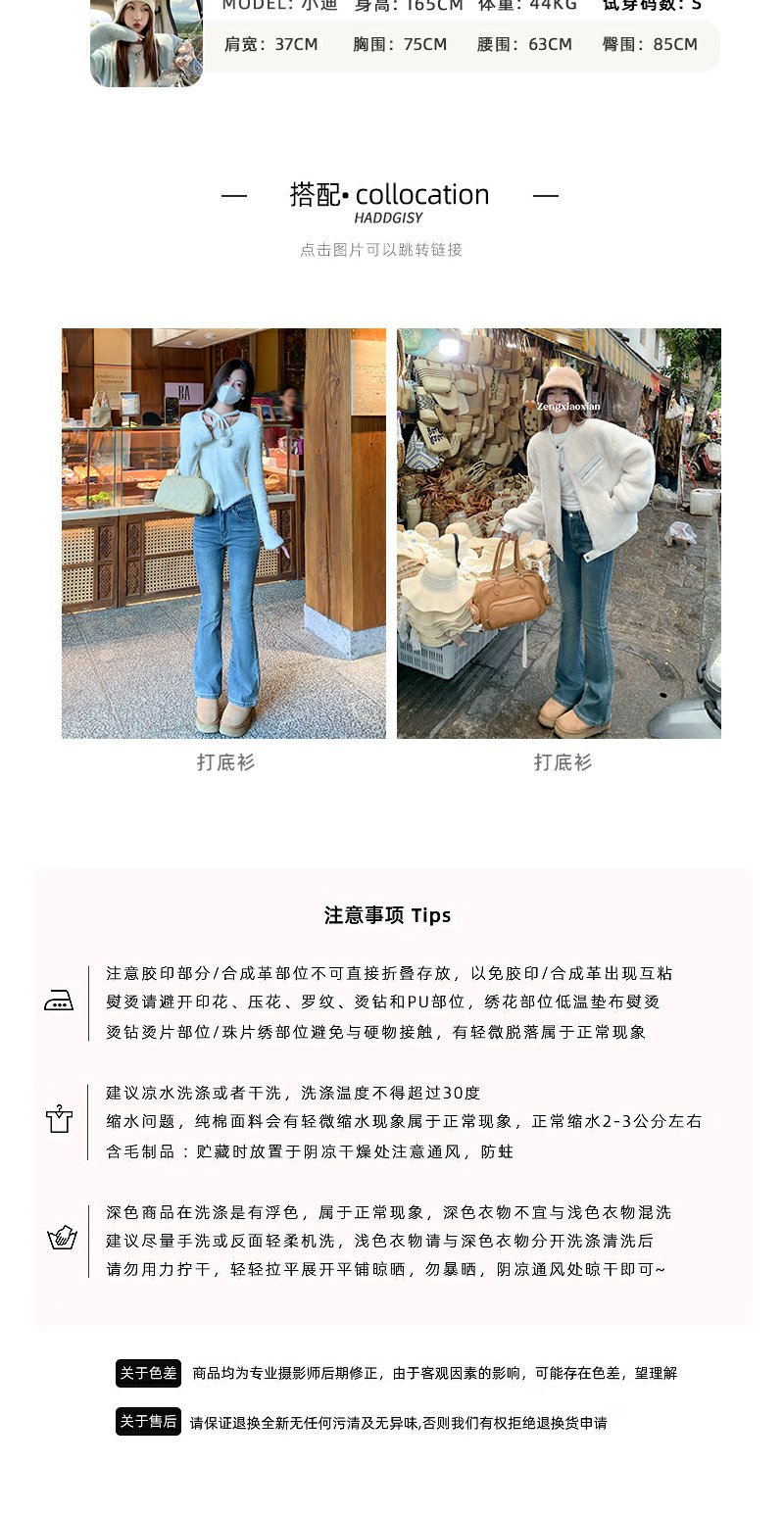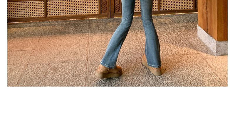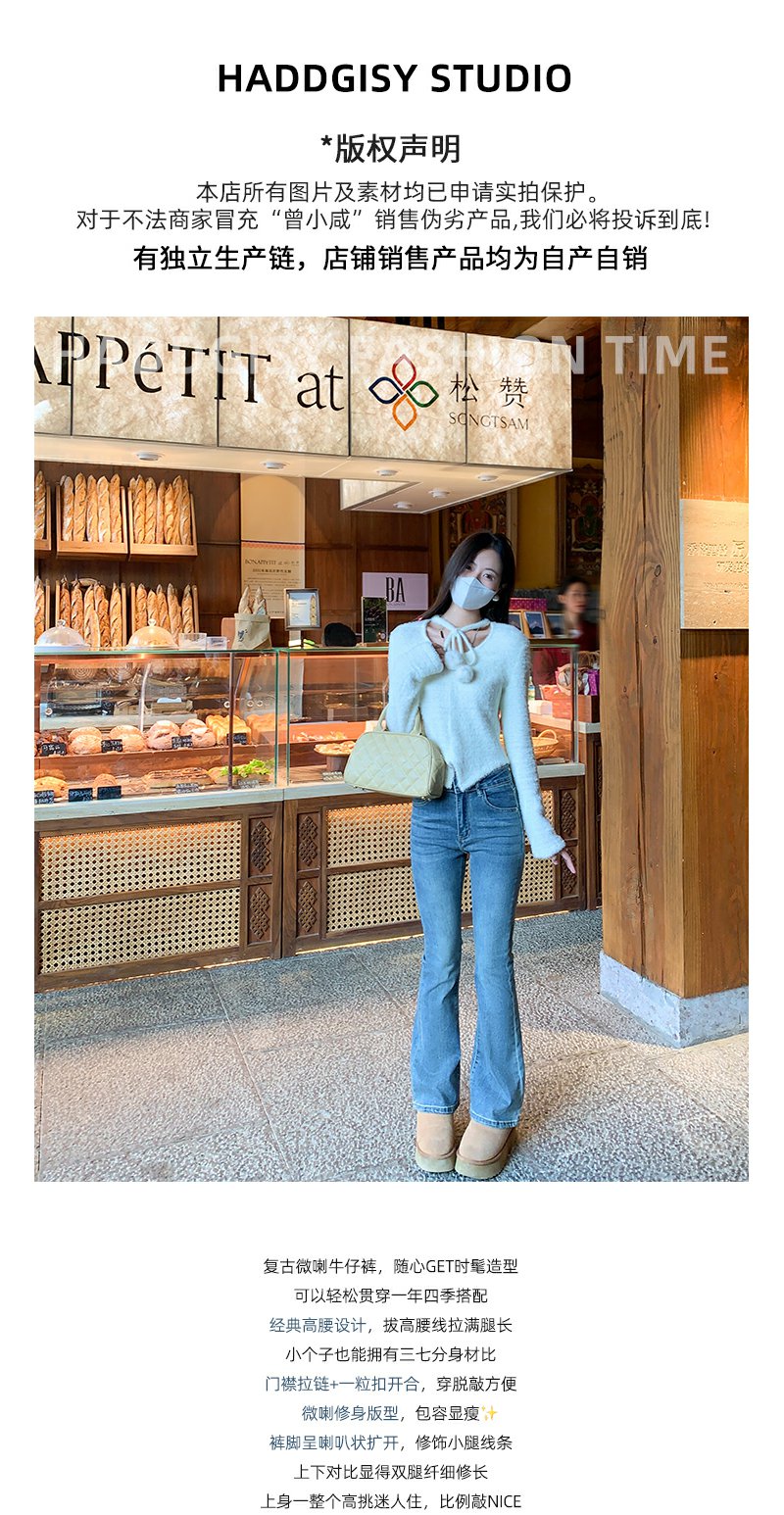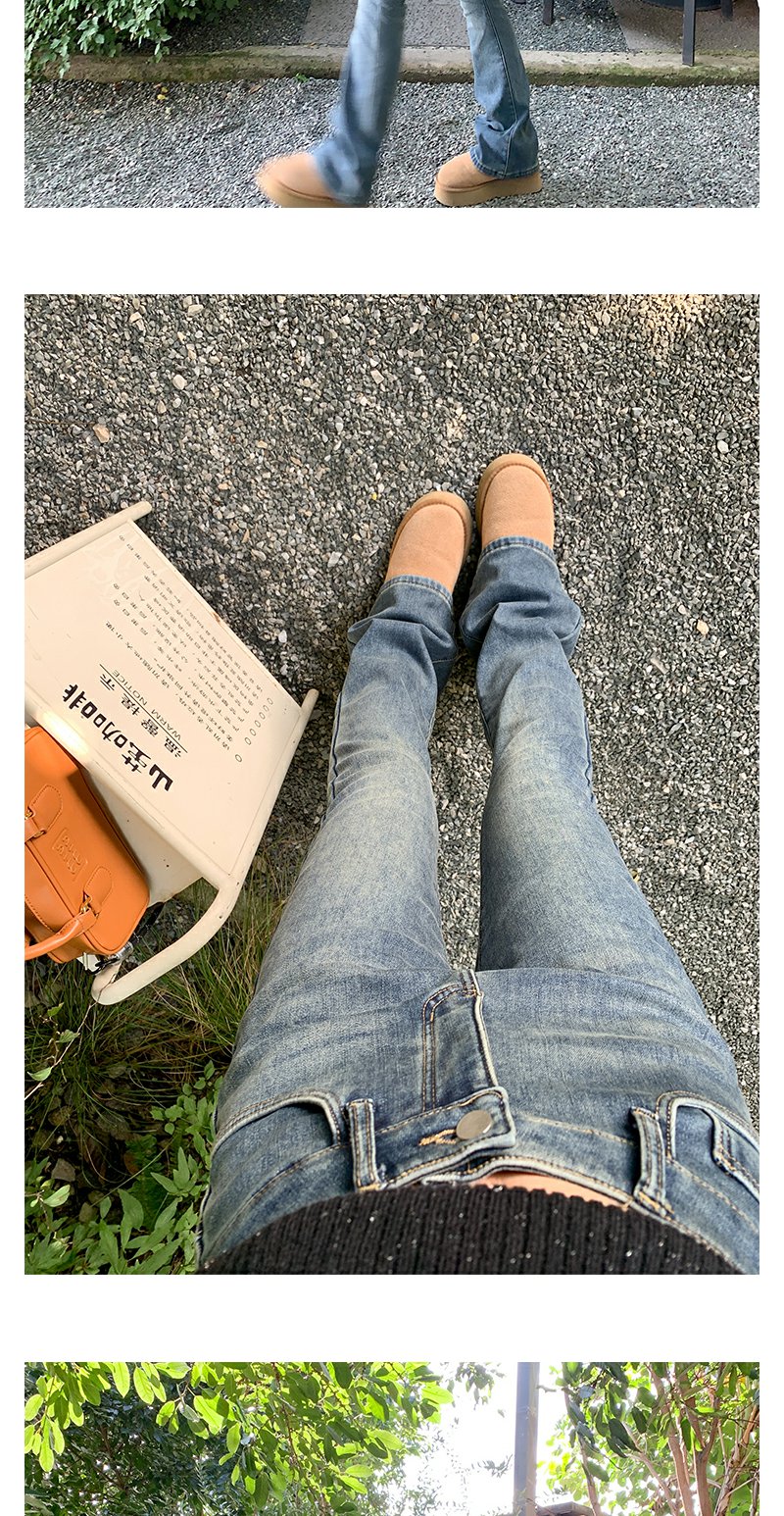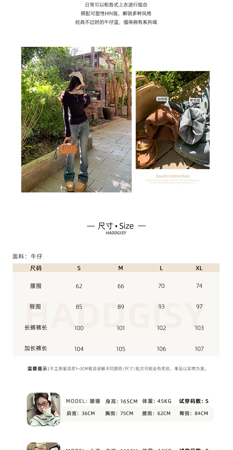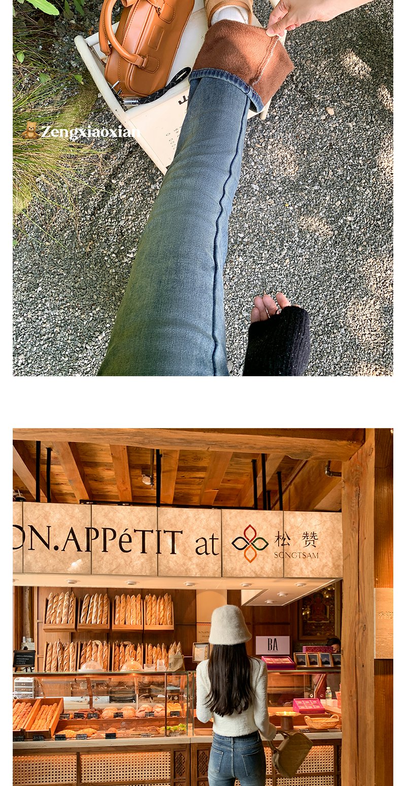<曾小咸推荐>复古蓝色加绒微喇叭牛仔裤
