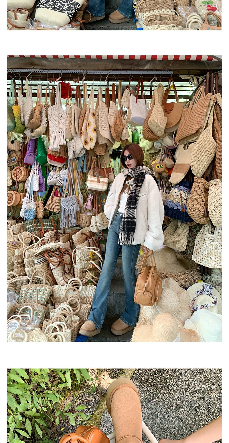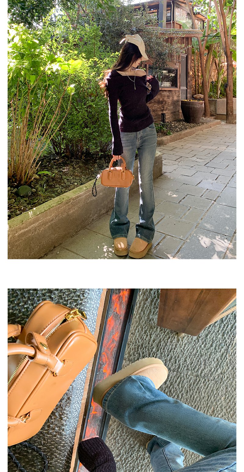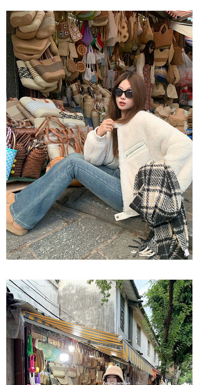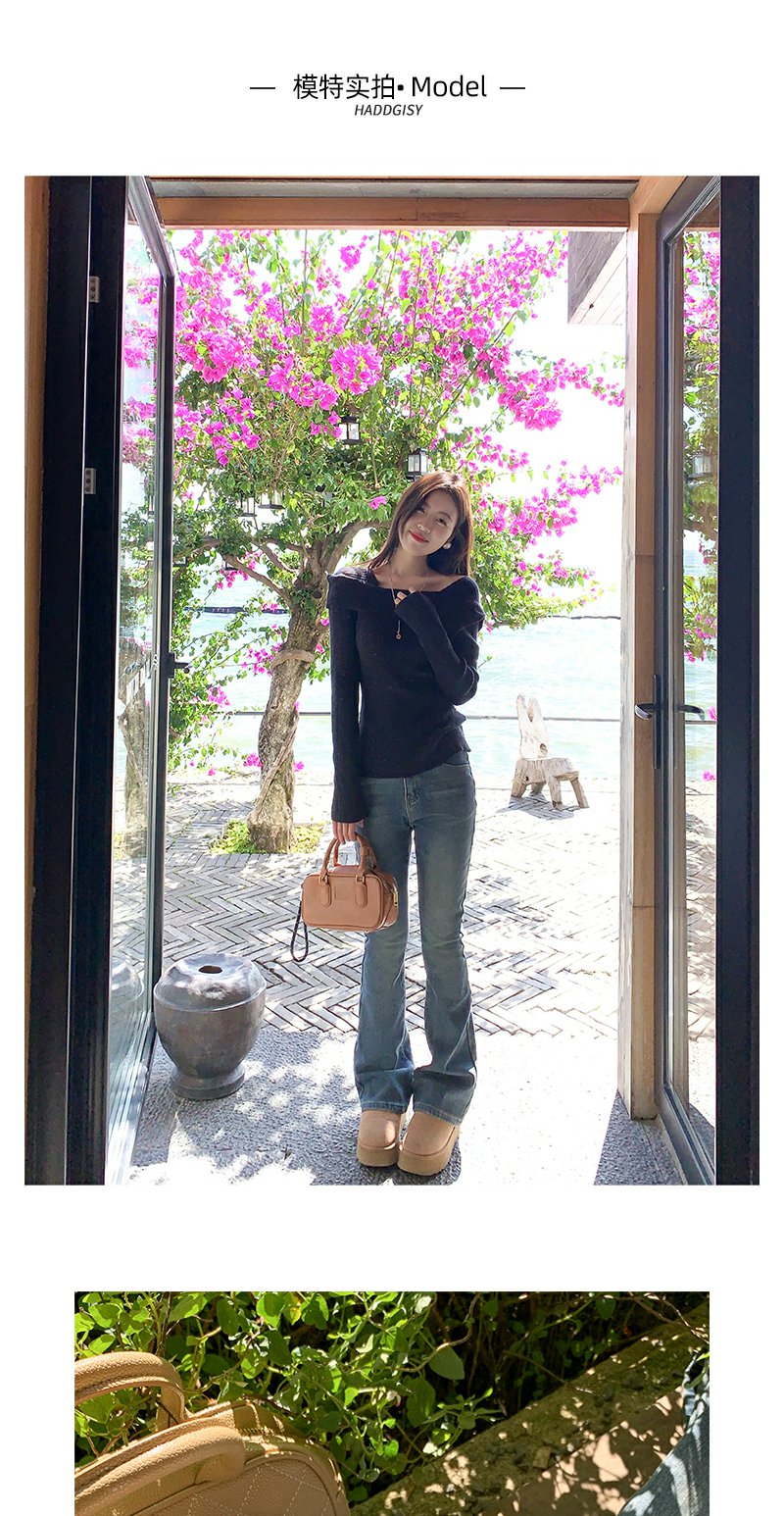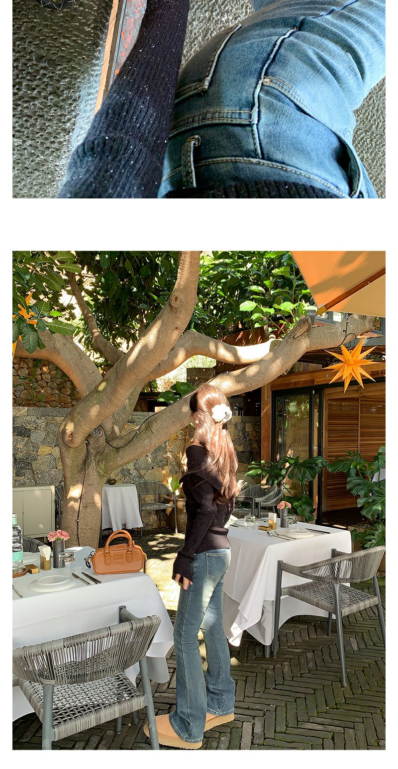 <曾小咸推荐>复古蓝色加绒微喇叭牛仔裤