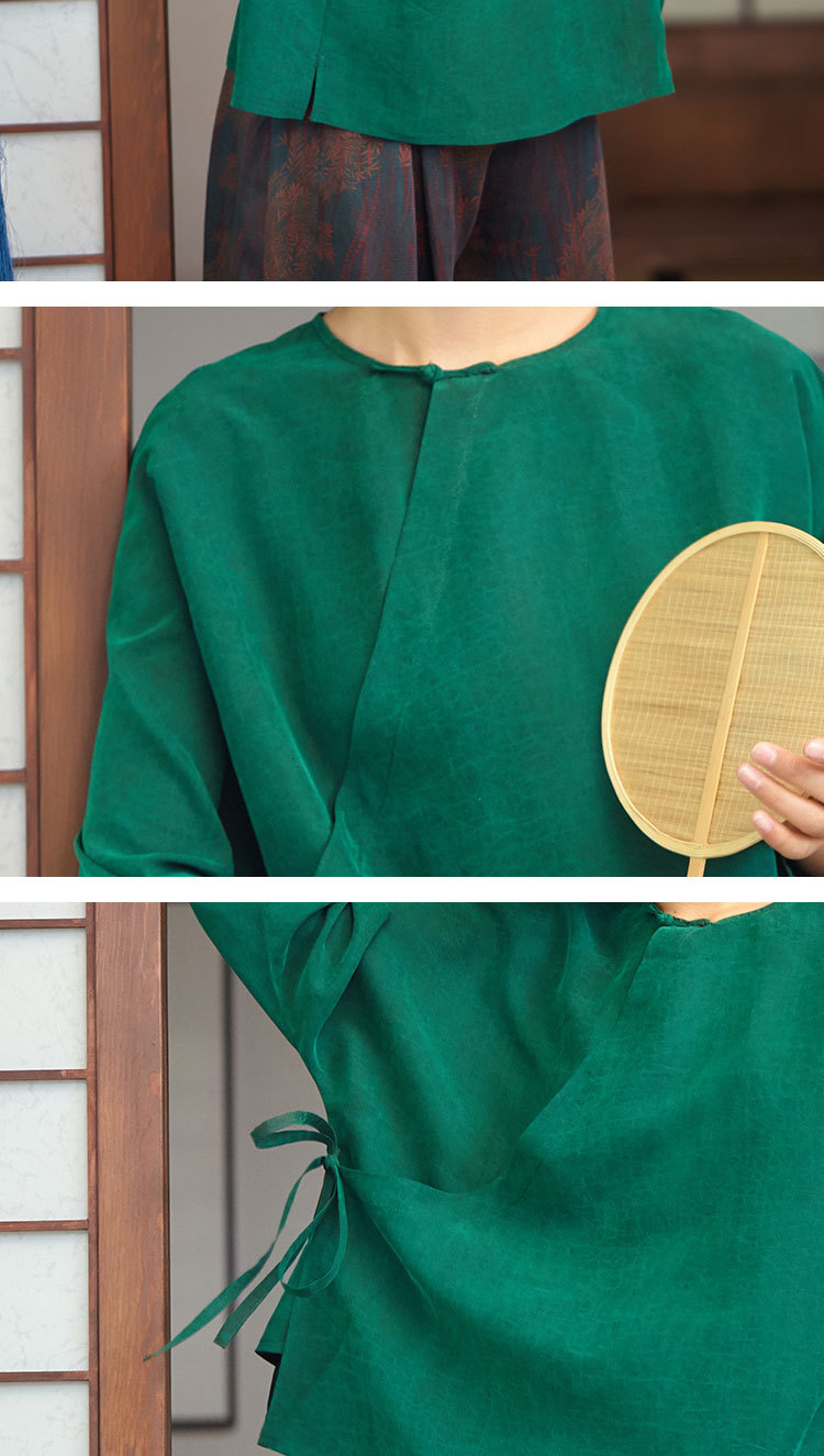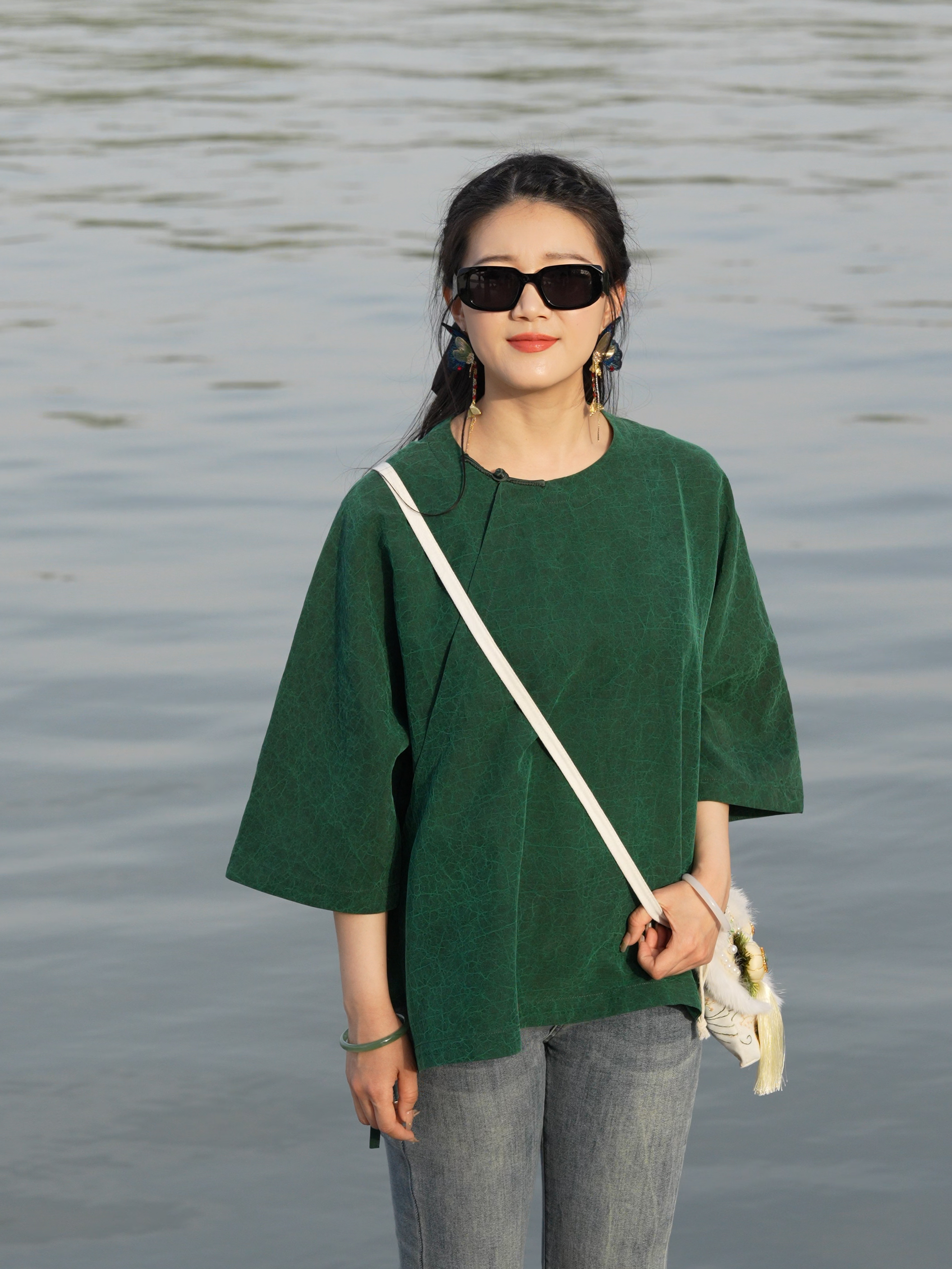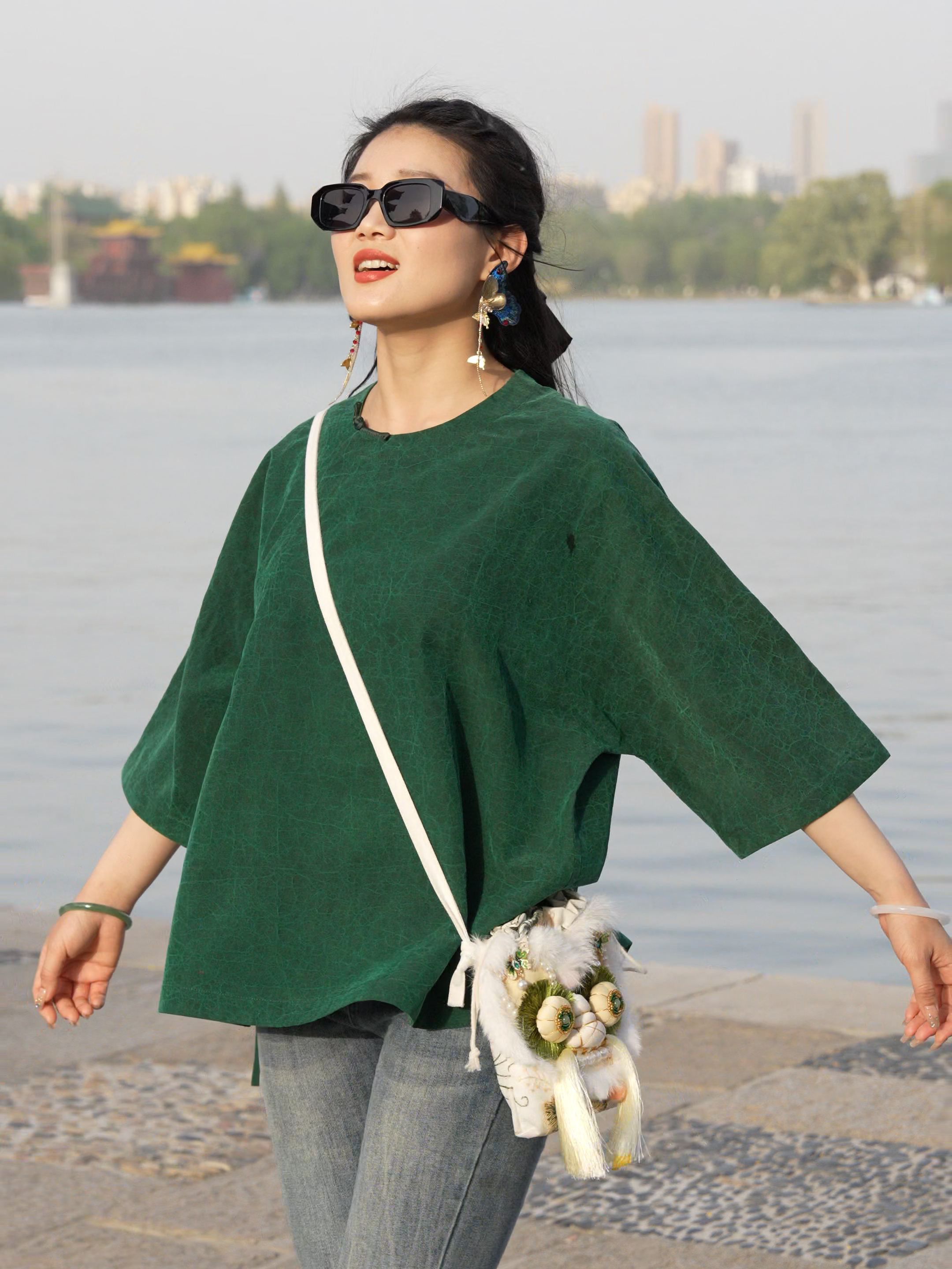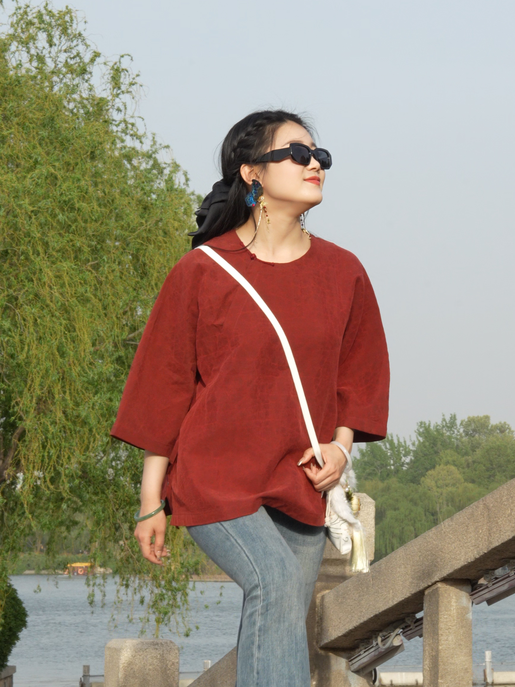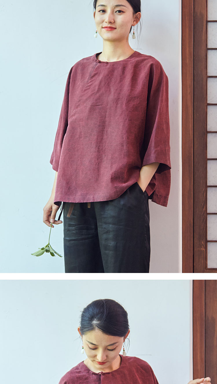 春夏新中式短款斜襟系带龟裂纹香云纱小衫U20326捌 。