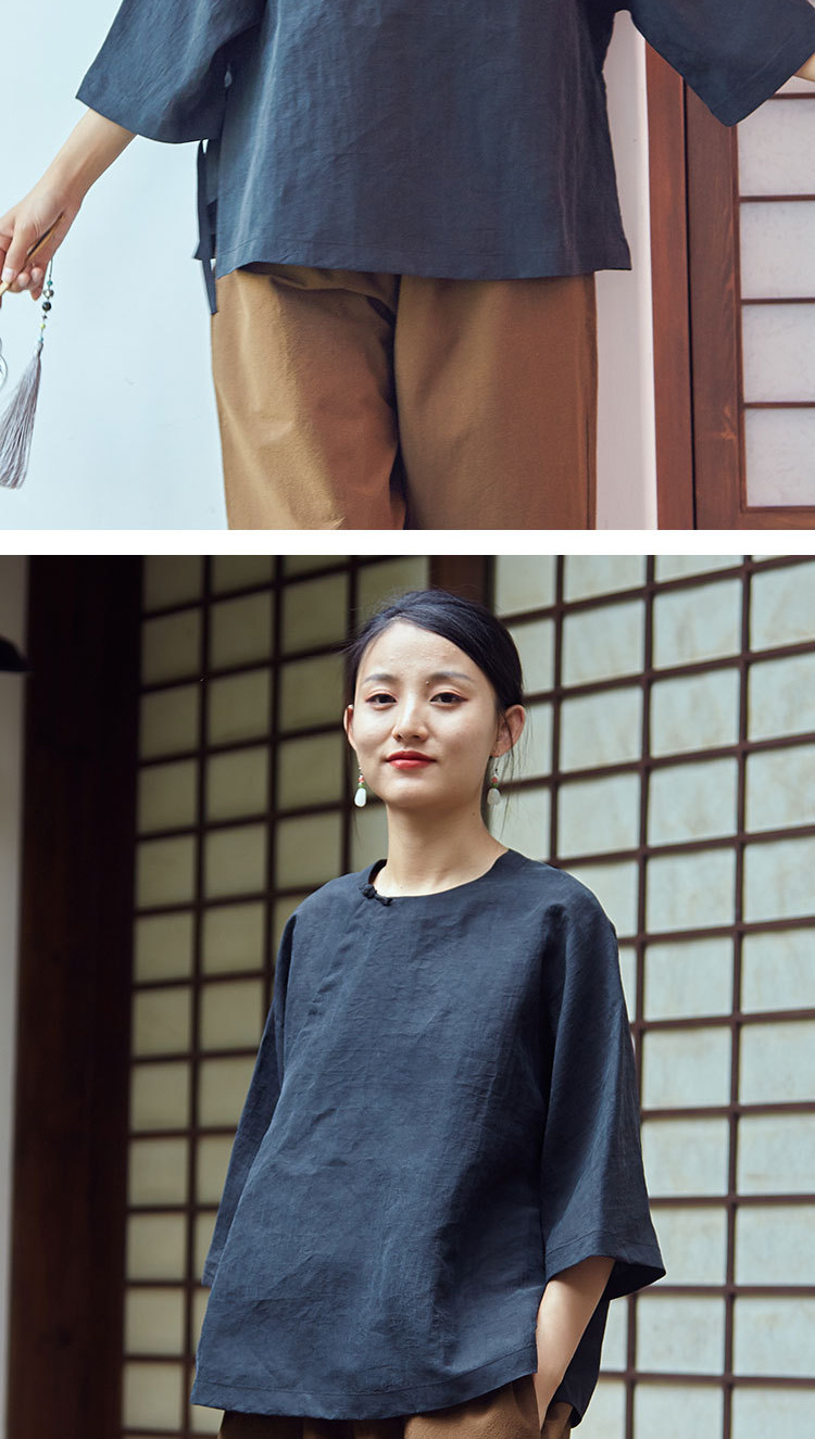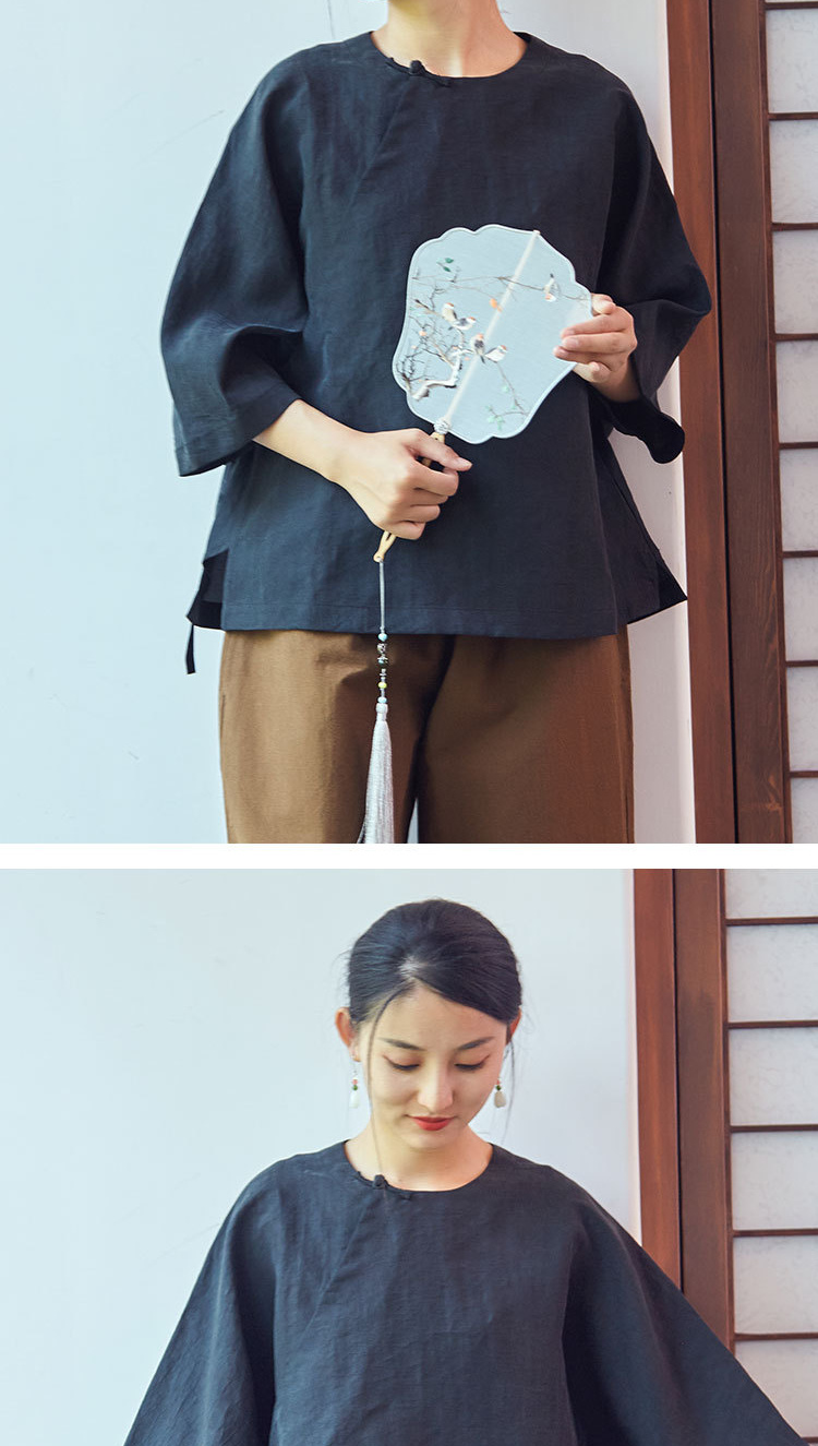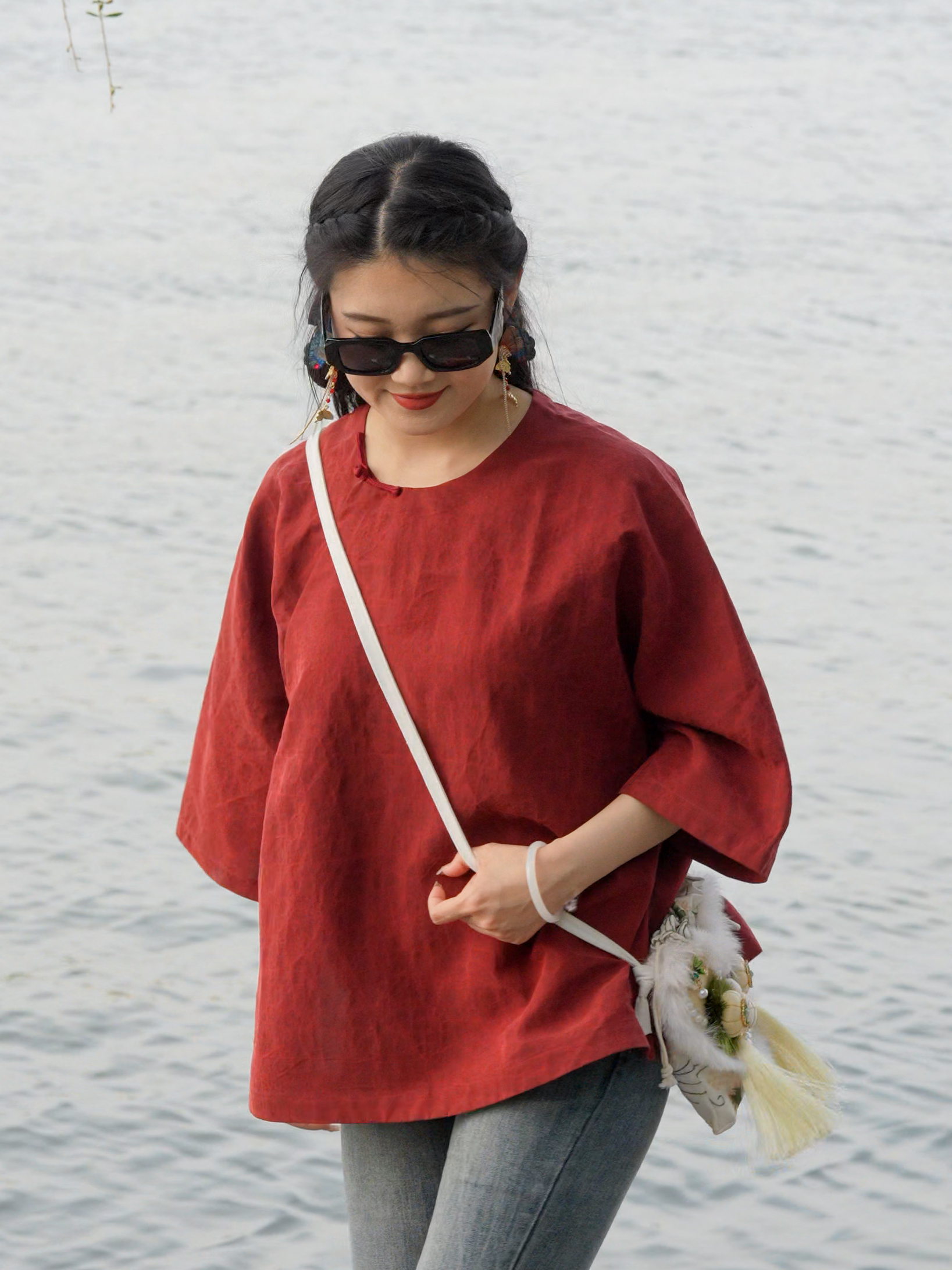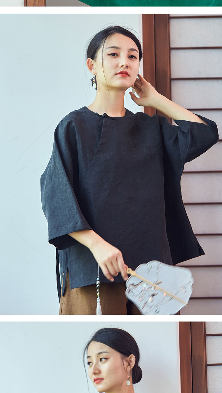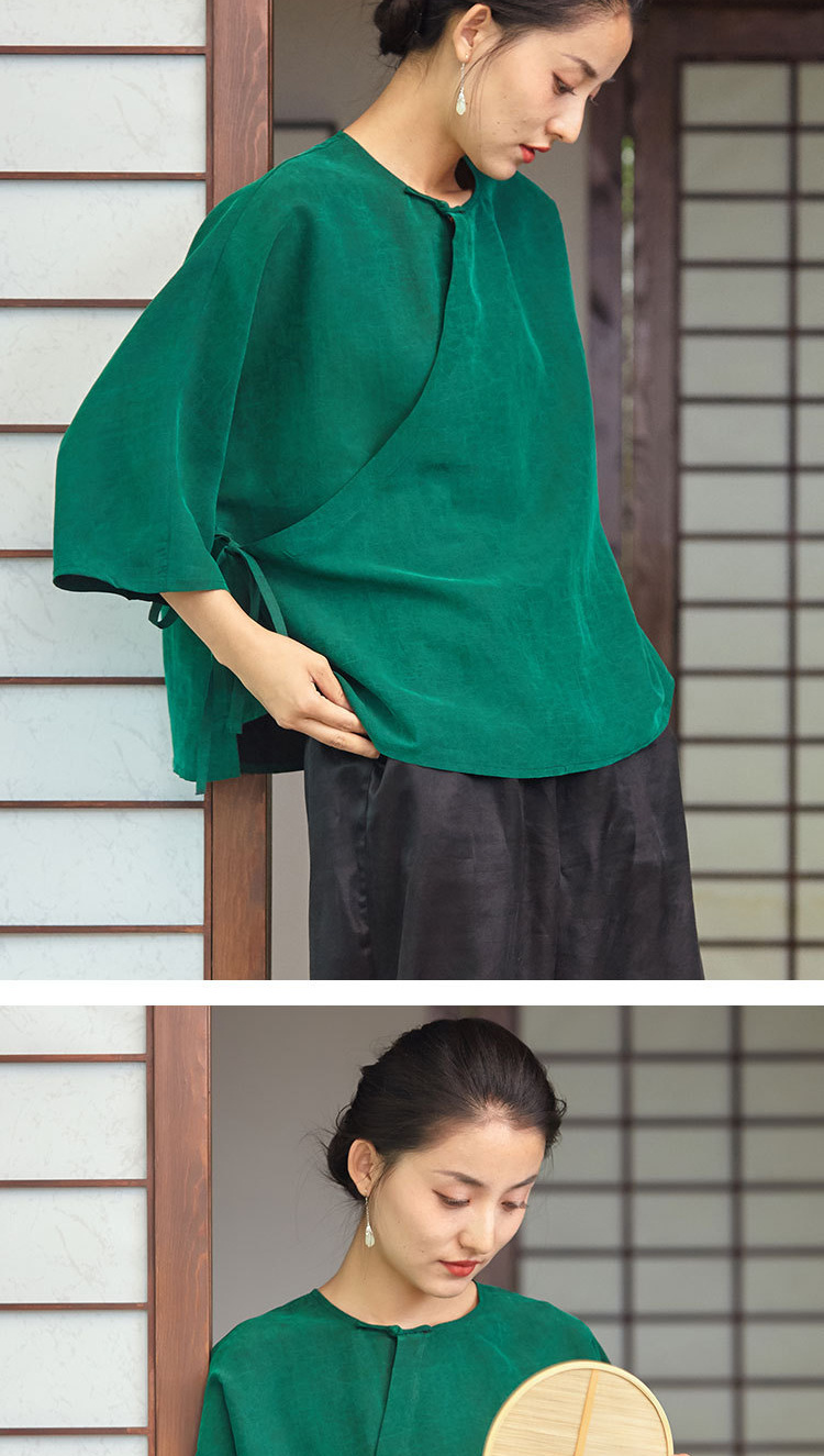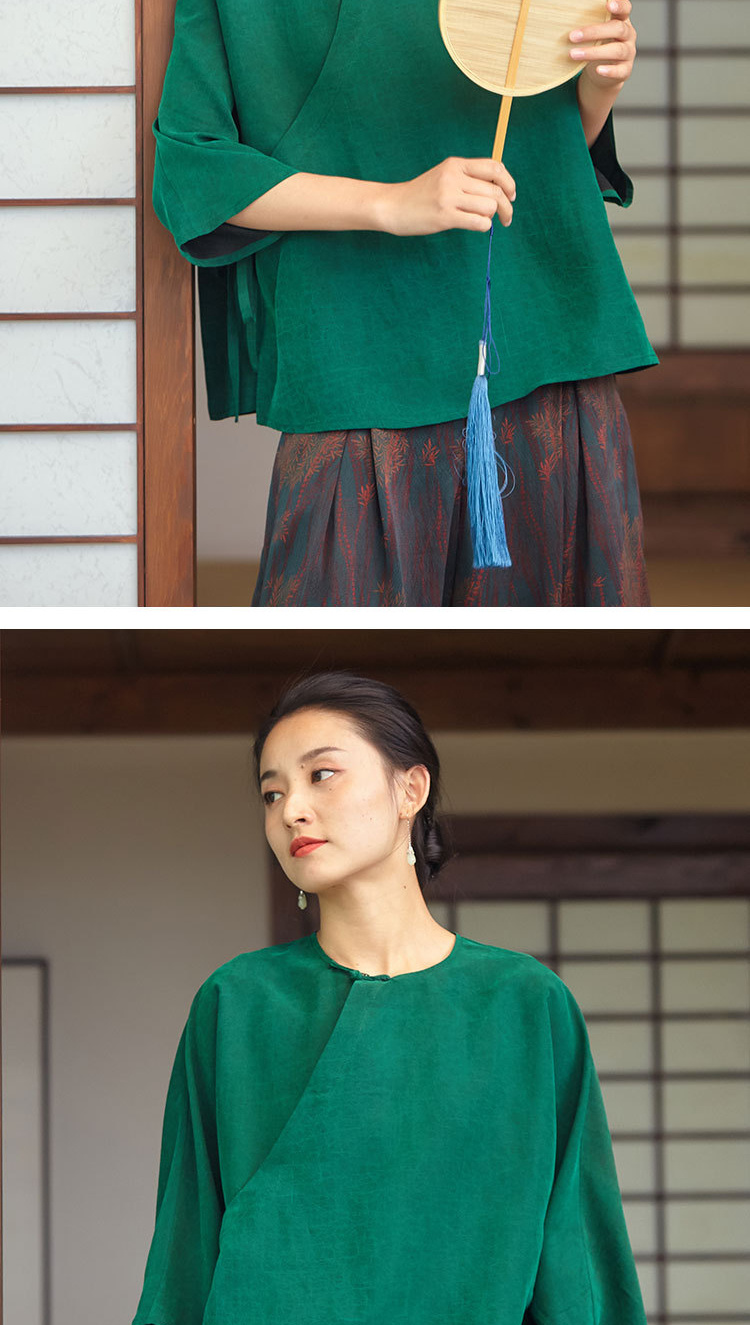 春夏新中式短款斜襟系带龟裂纹香云纱小衫U20326捌 。