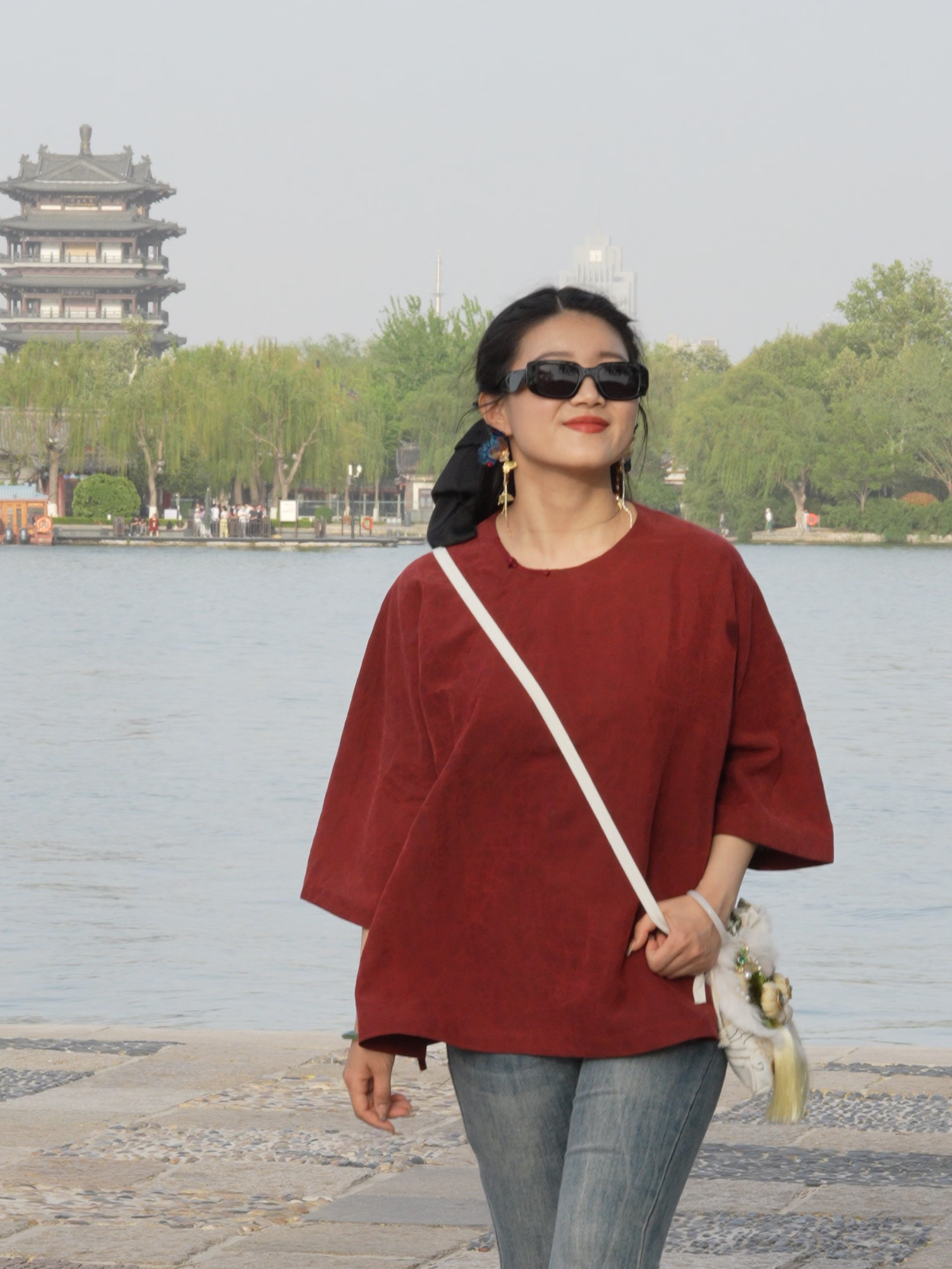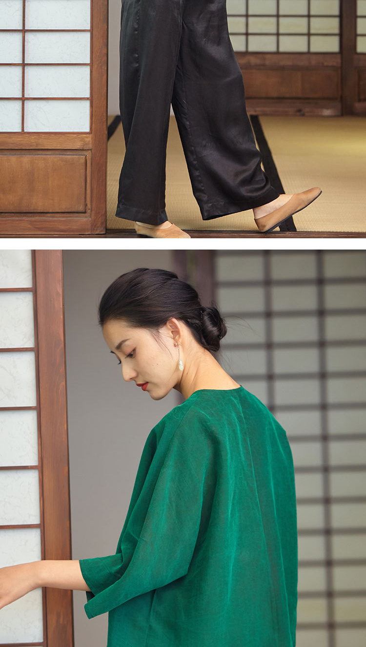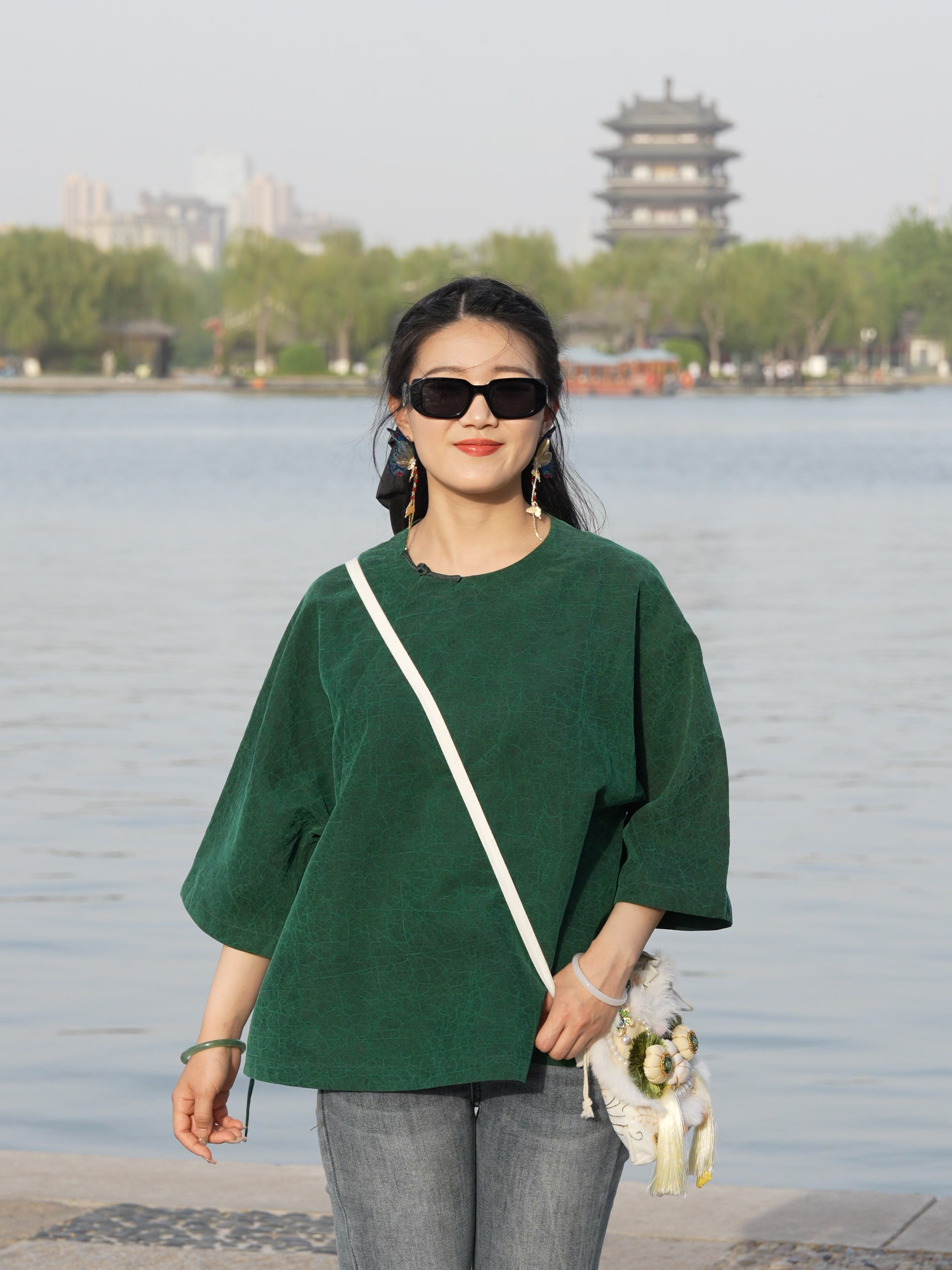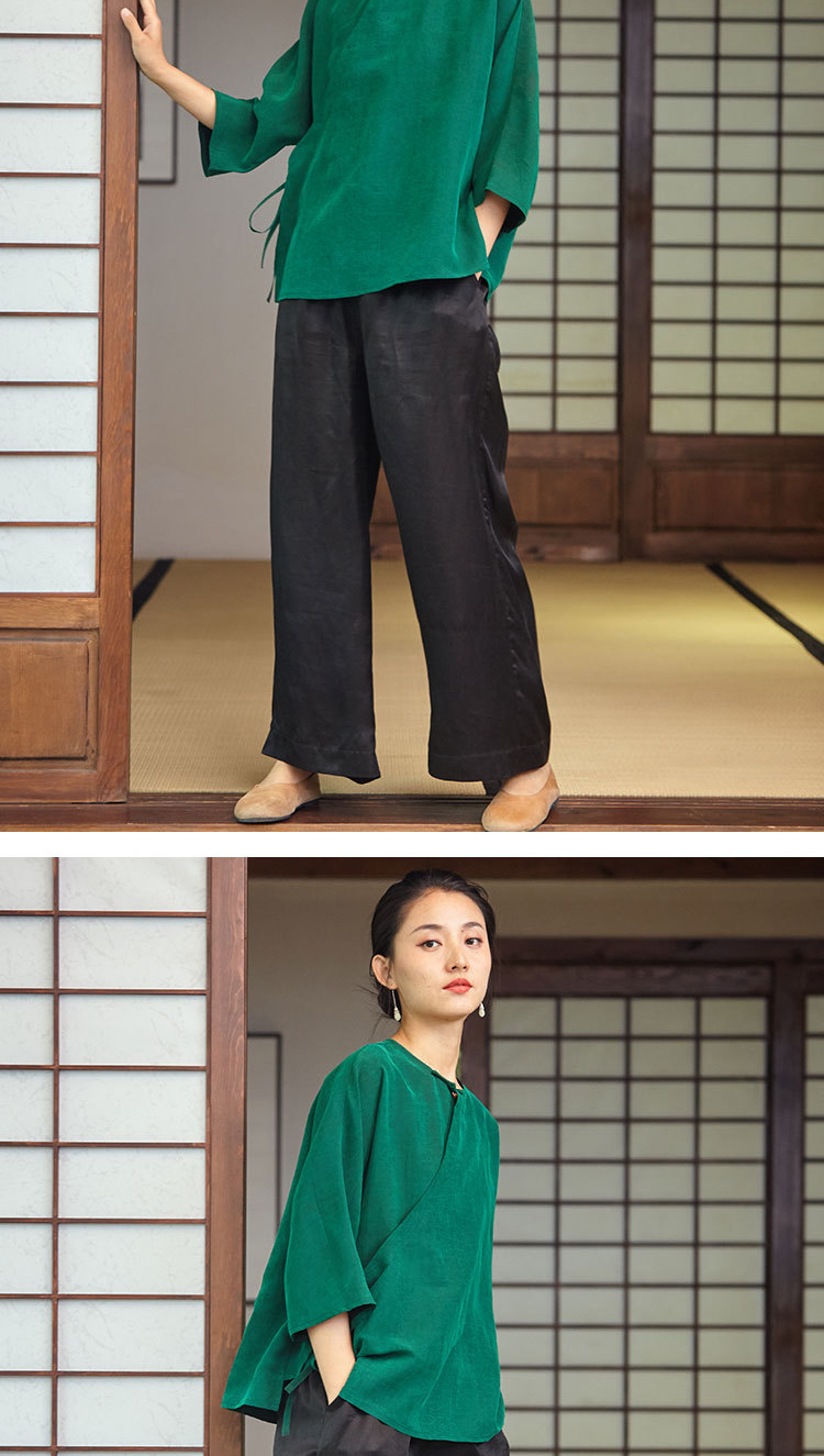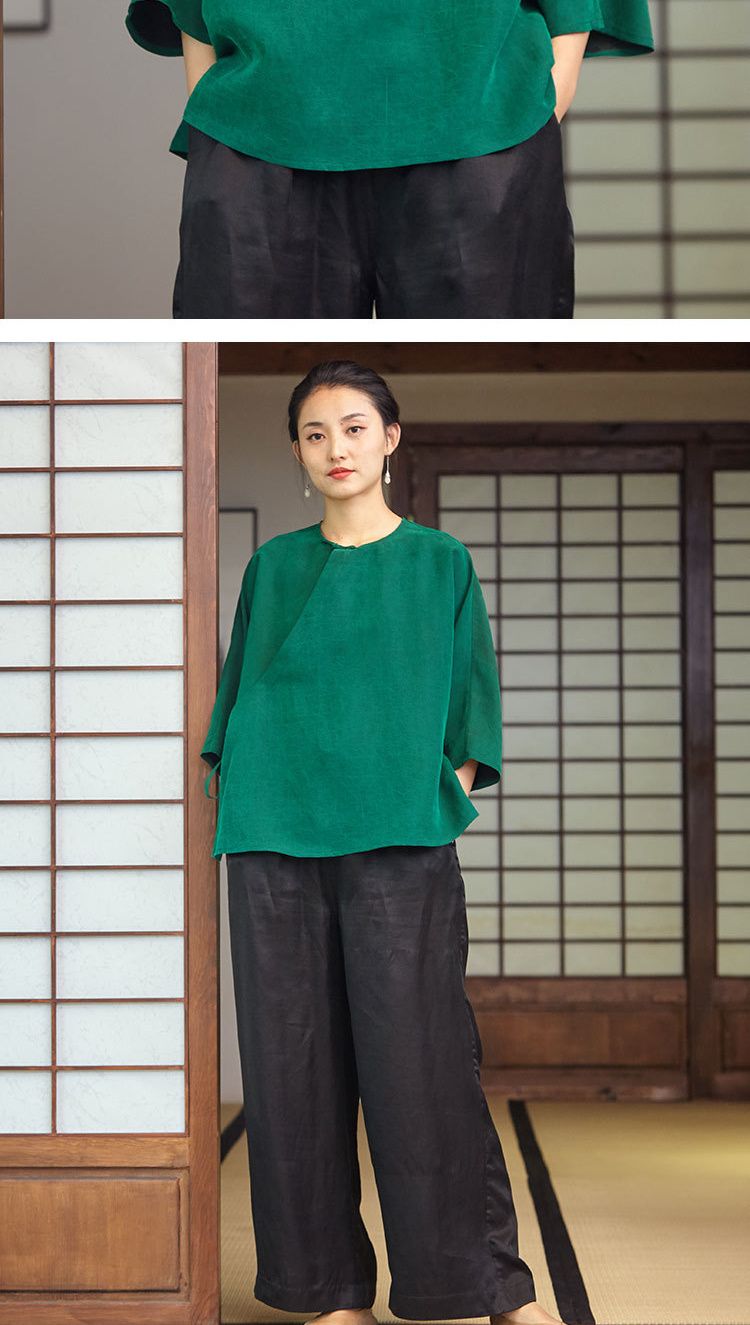 春夏新中式短款斜襟系带龟裂纹香云纱小衫U20326捌 。