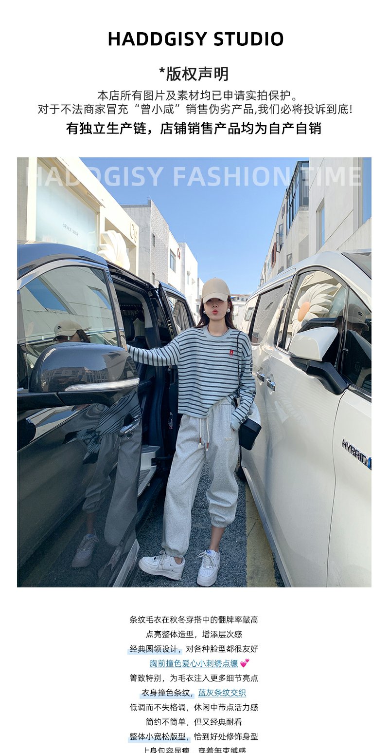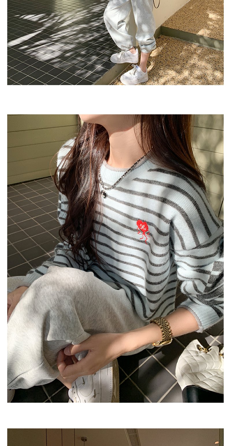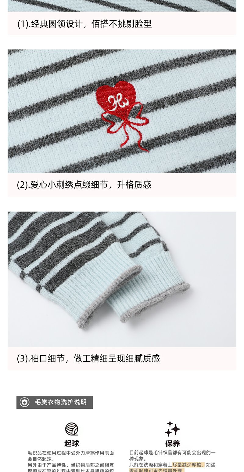 【179元任选2件】最后一波现货!爱心刺绣条纹宽松毛衣