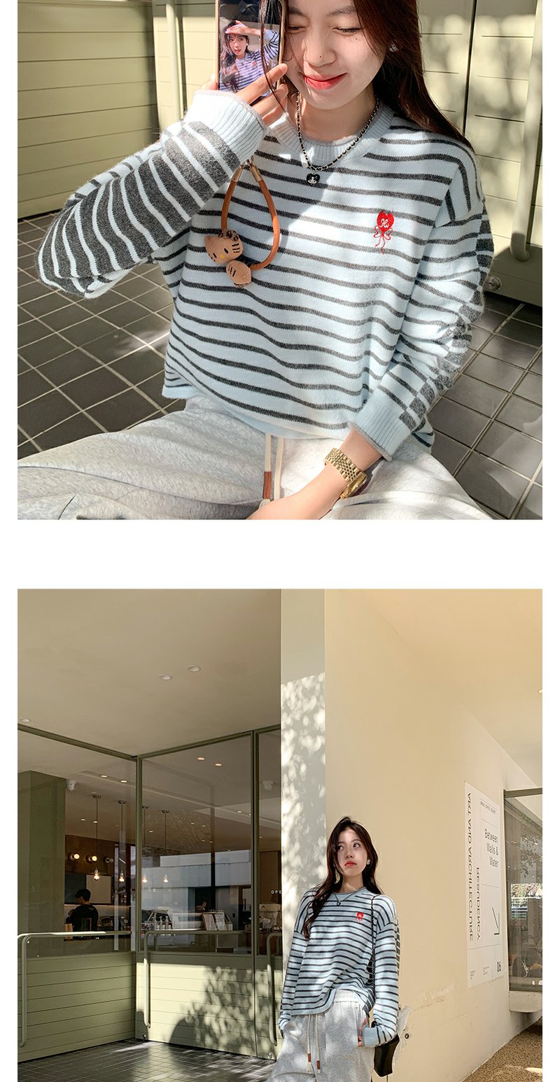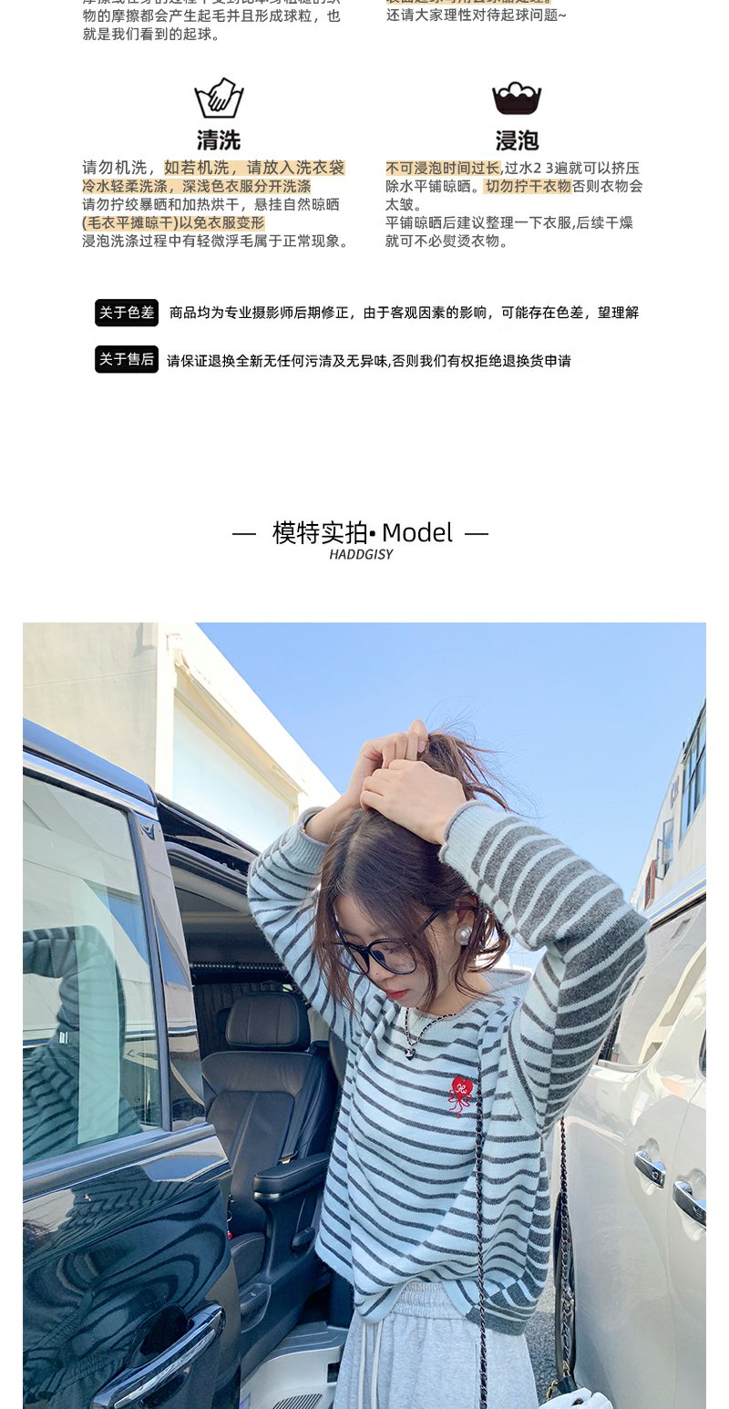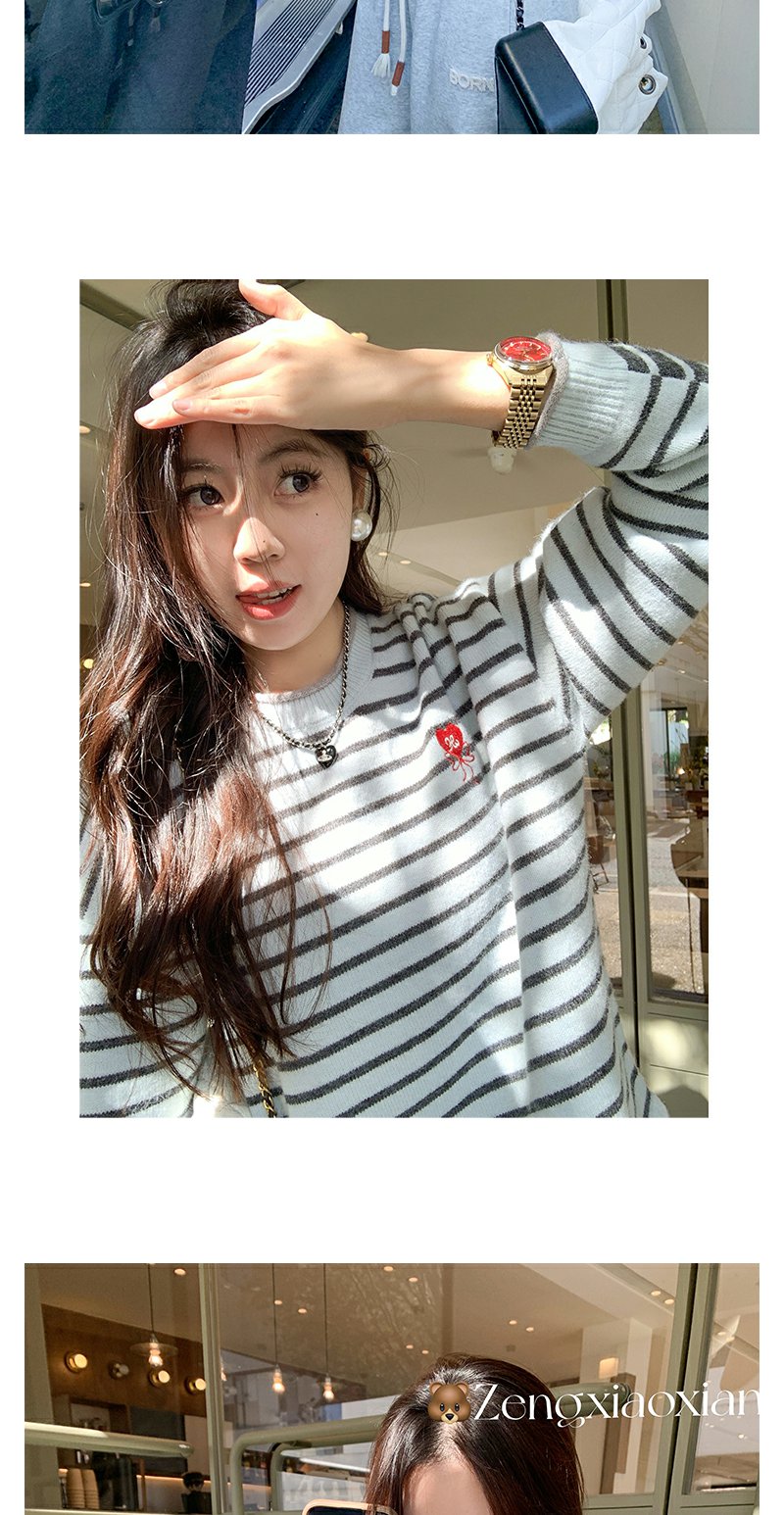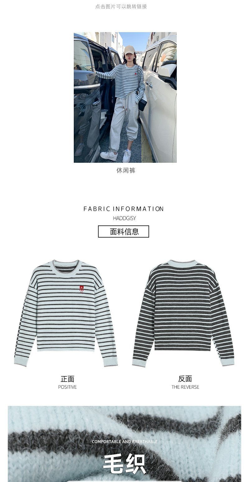 【179元任选2件】最后一波现货!爱心刺绣条纹宽松毛衣
