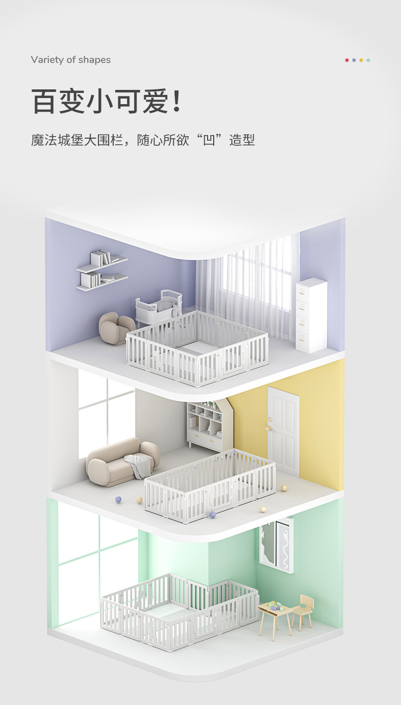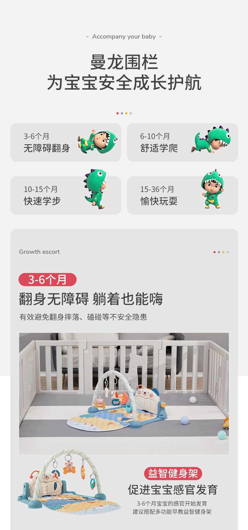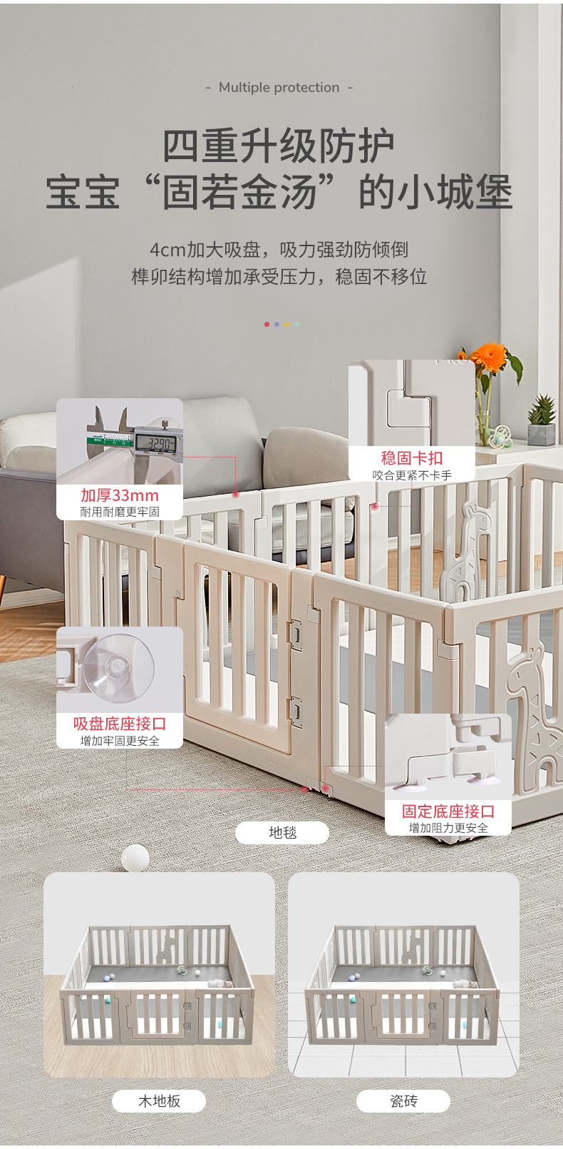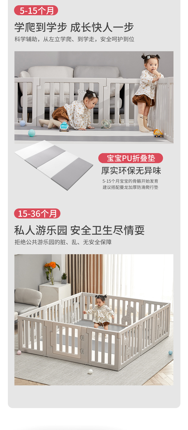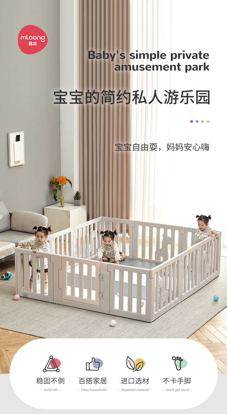 【林中鹿】曼龙儿童围栏现代简约原木游戏围栏地上爬行垫防护栏栅栏