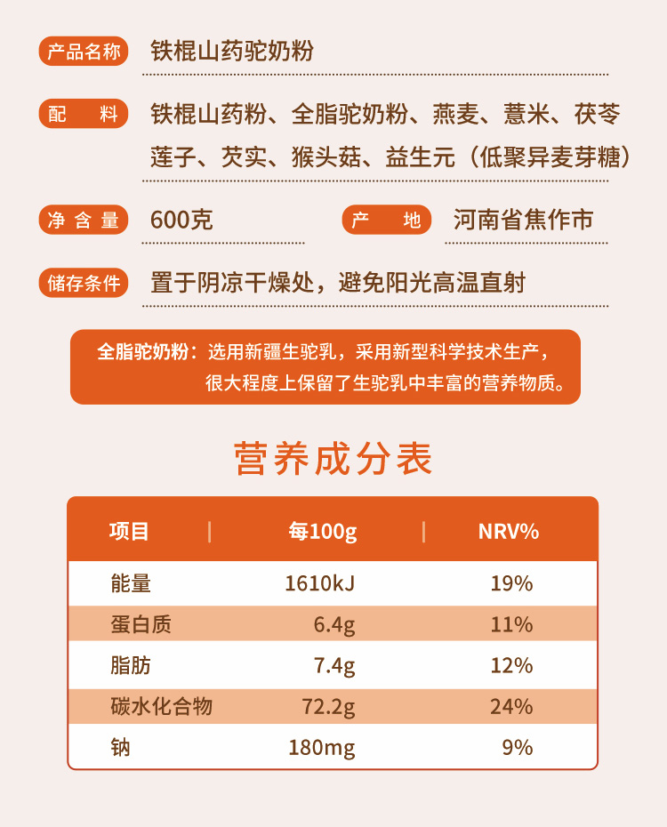 怀府街 | 铁棍山药驼奶粉 先清后养驼奶液体黄金600g/罐
