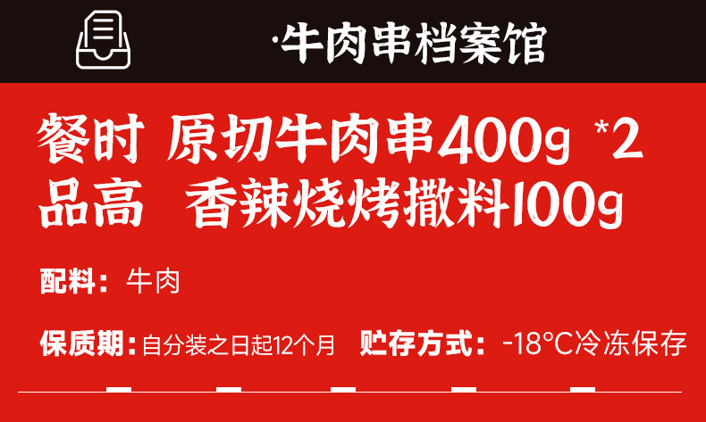餐时原切牛肉串 400g*2 + 品高 香辣烧烤撒料100g