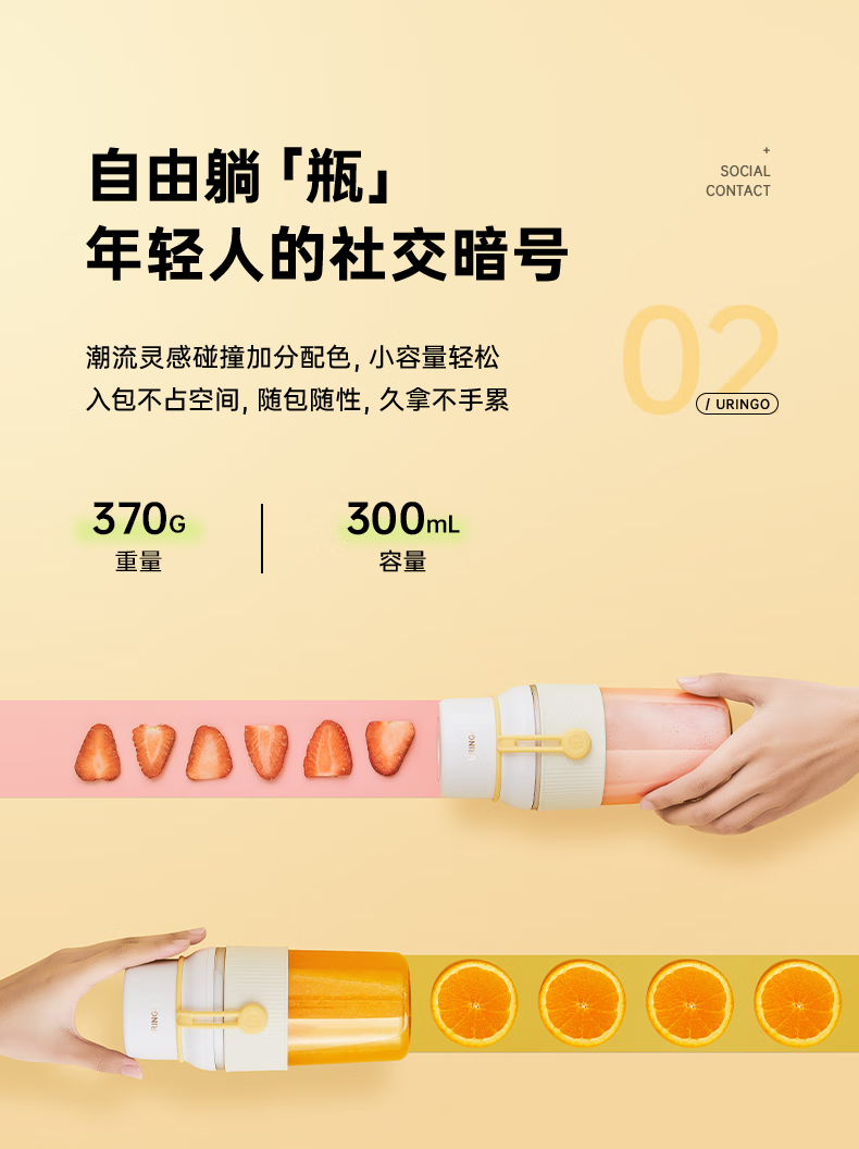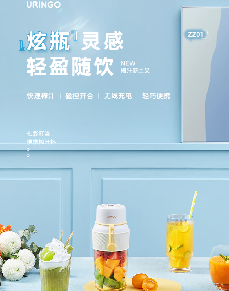 七彩叮当榨汁机小型便携式电动果汁机家用迷你300mL榨汁杯ZZ01