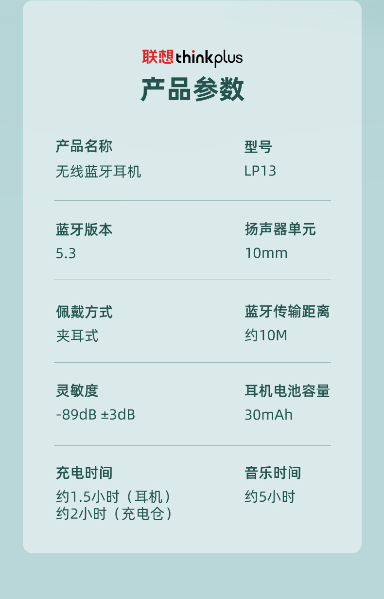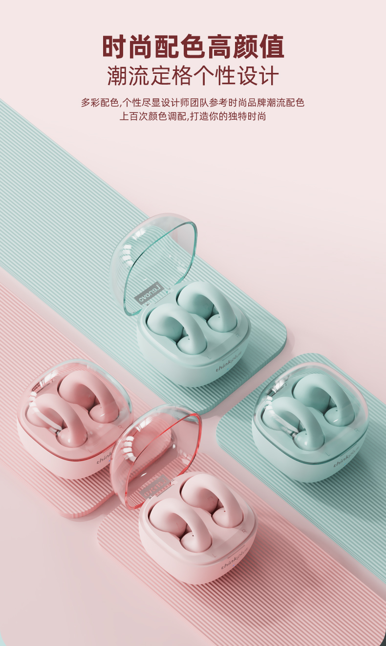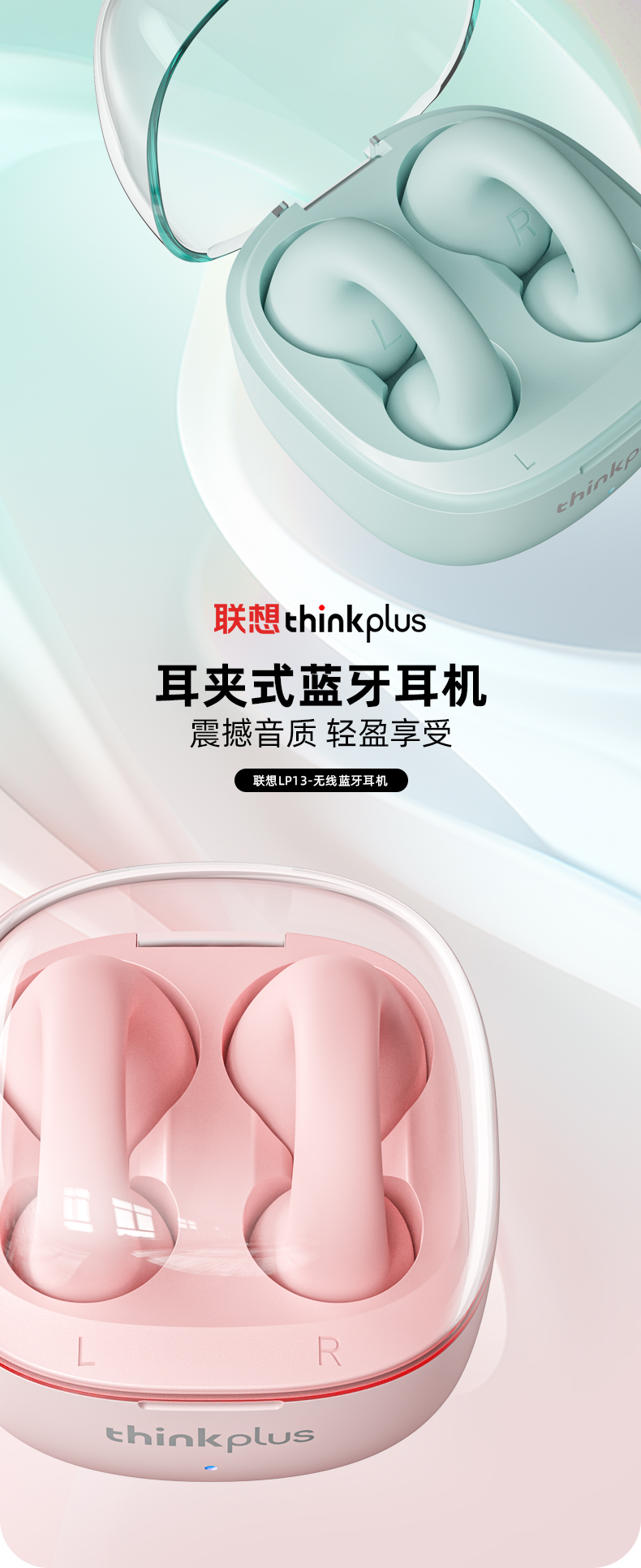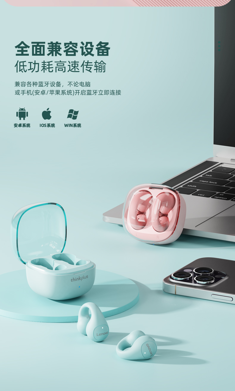 联想thinkplus 耳夹式蓝牙耳机 蓝色LP13 耳麦