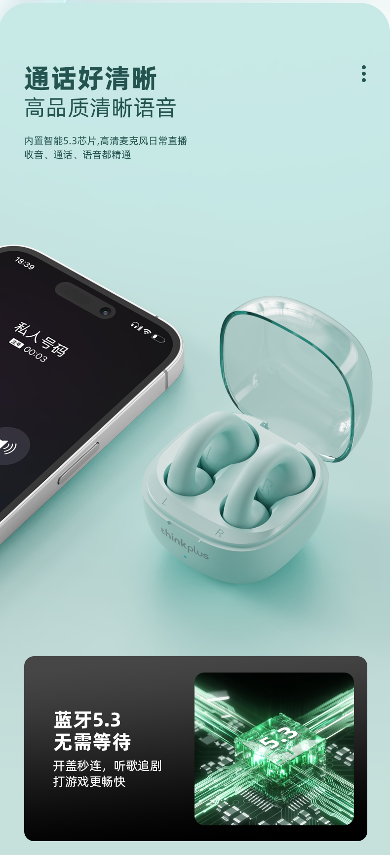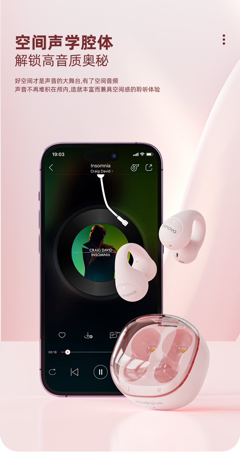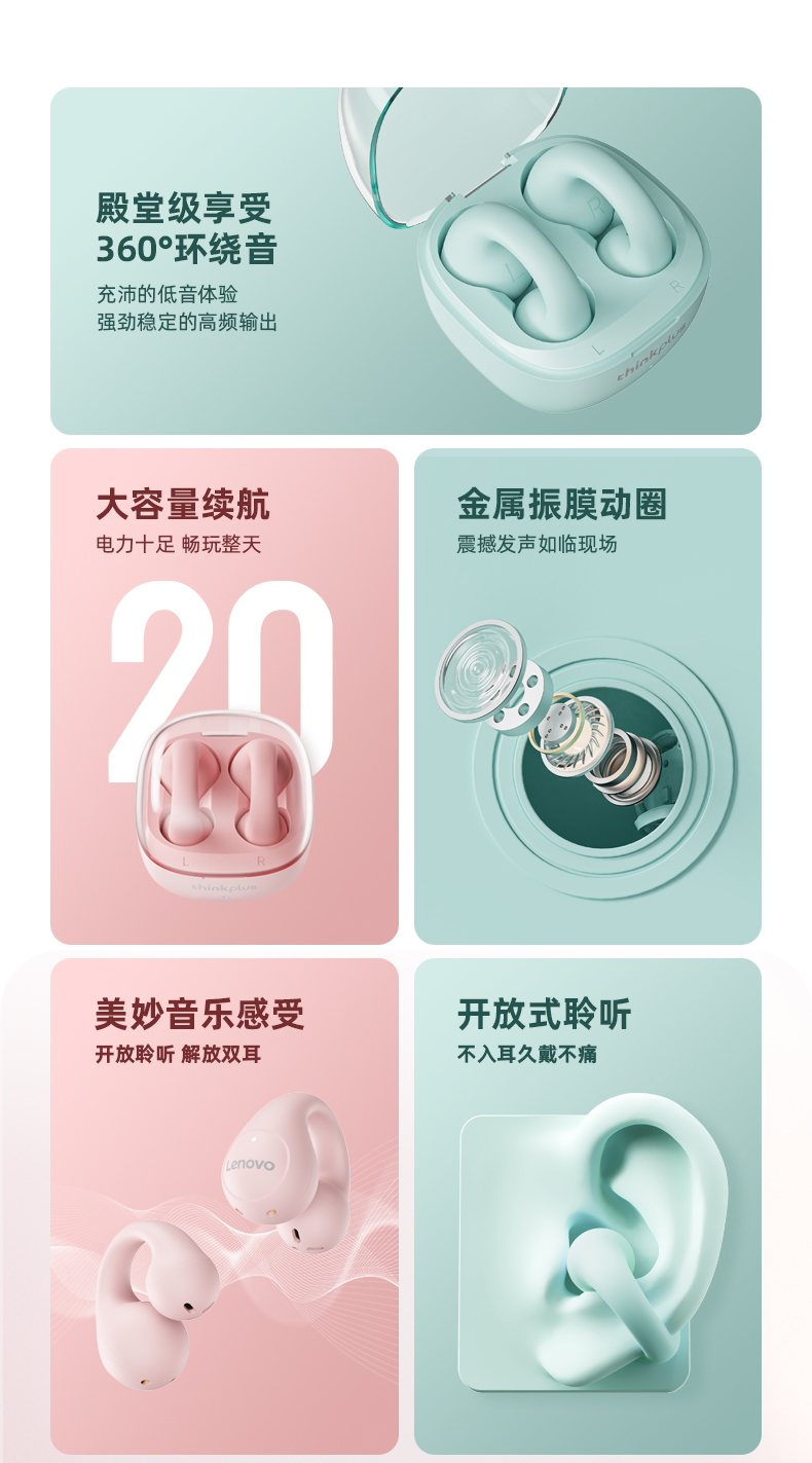 联想thinkplus 耳夹式蓝牙耳机 蓝色LP13 耳麦