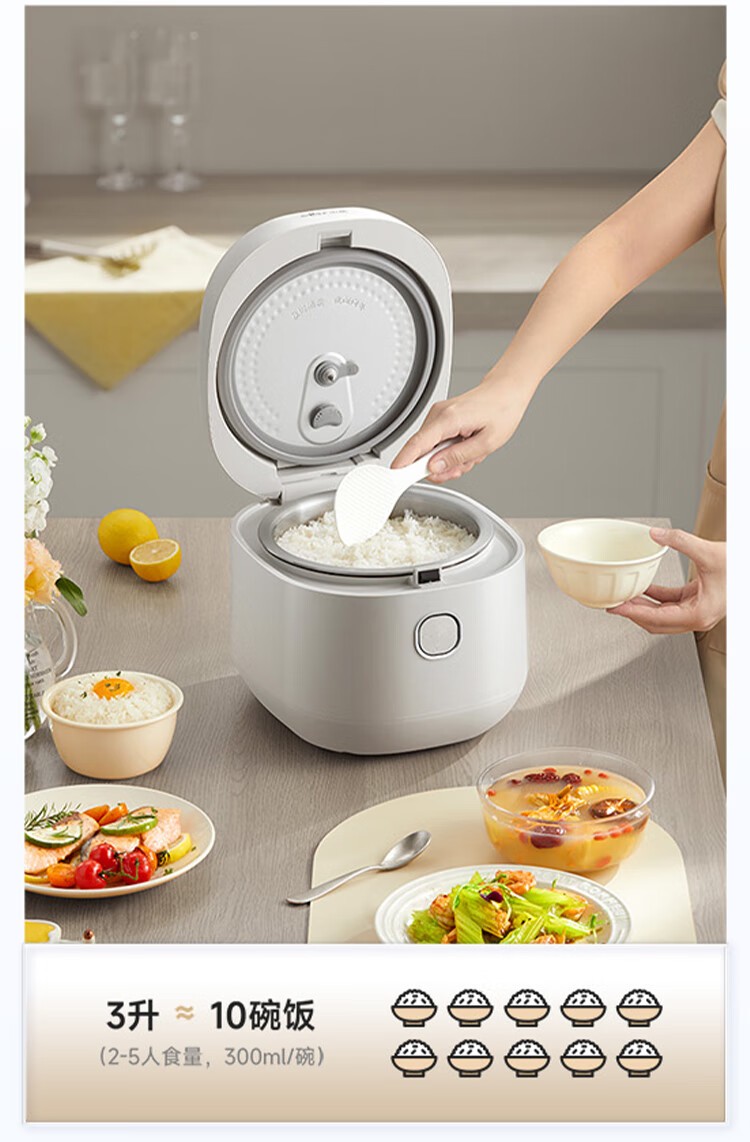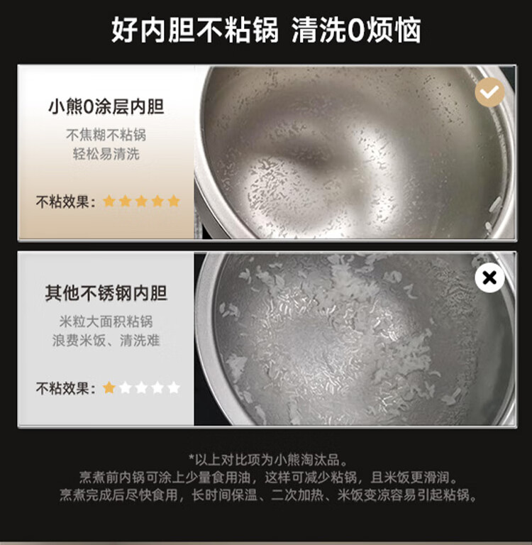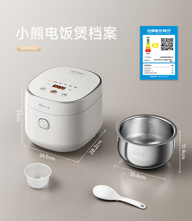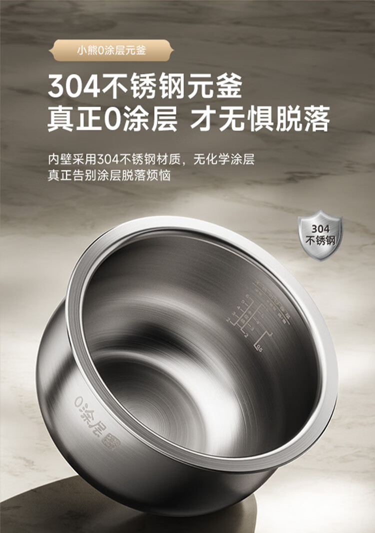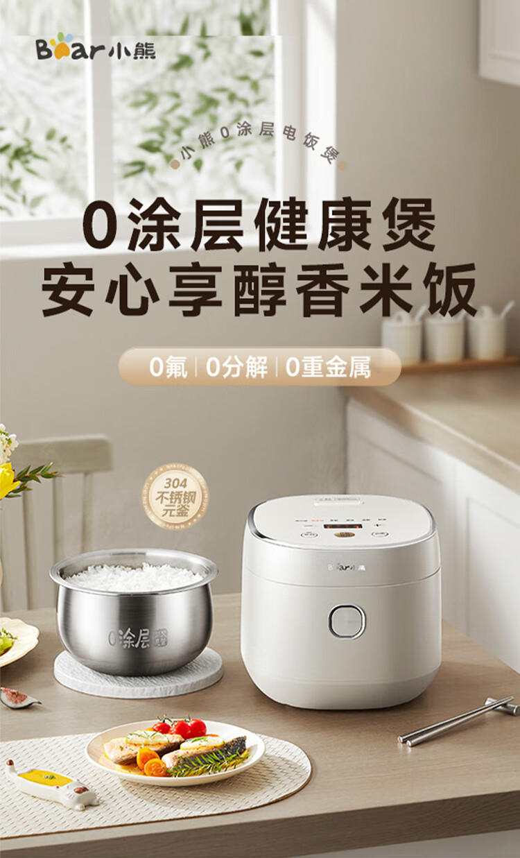 小熊0涂层不锈钢内胆电饭煲3L