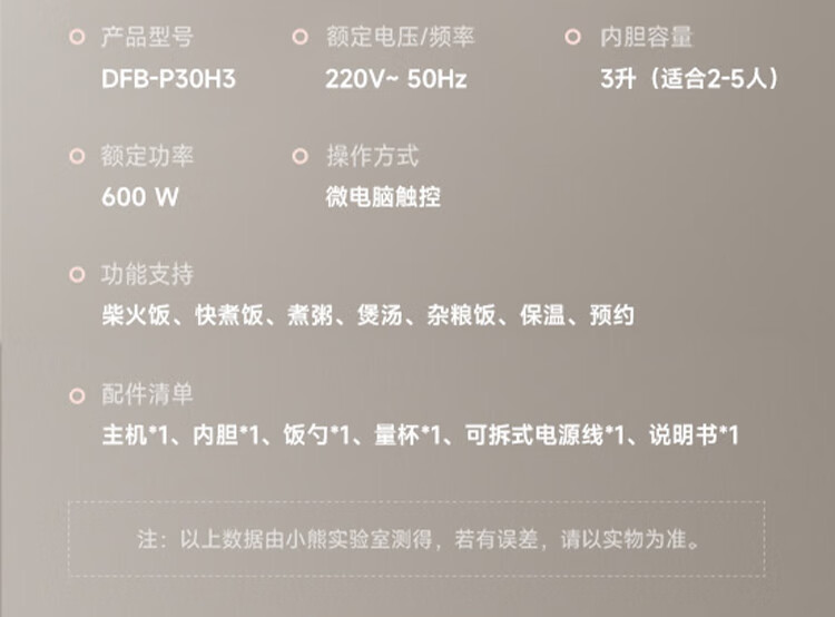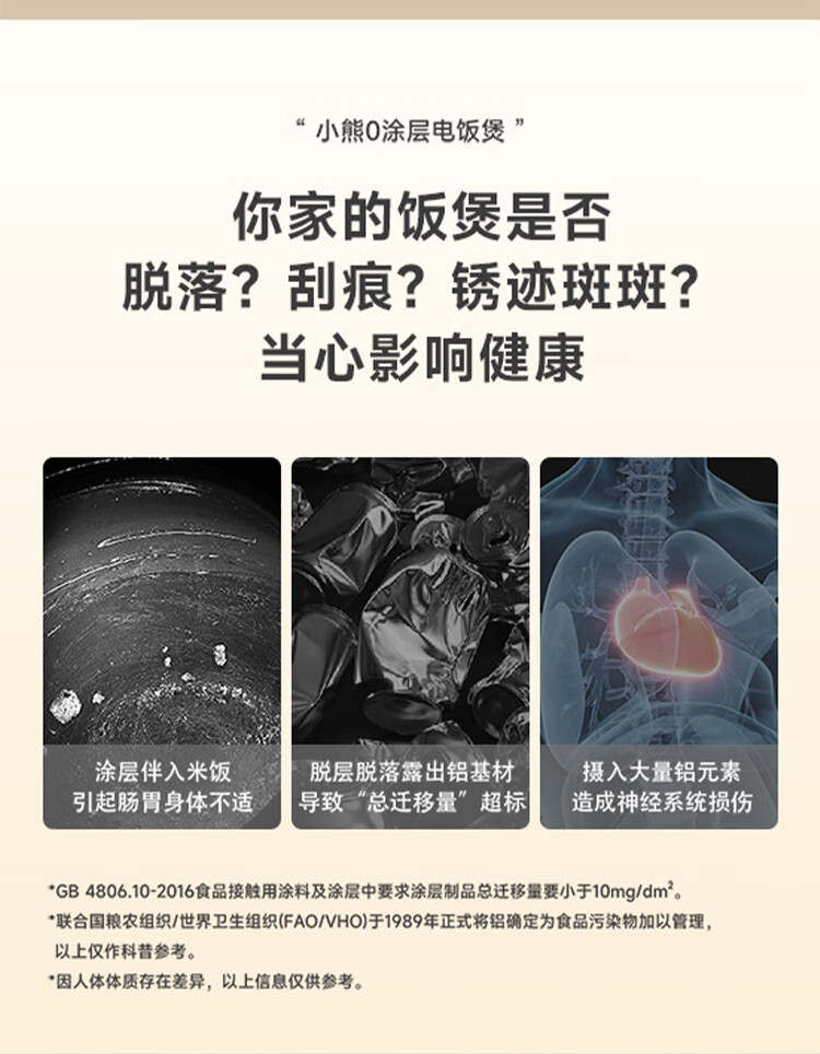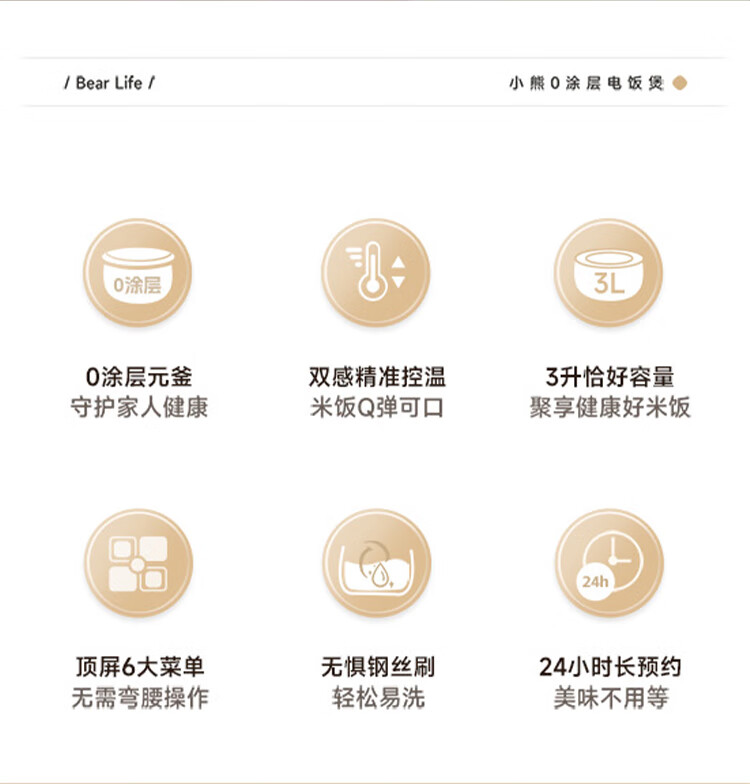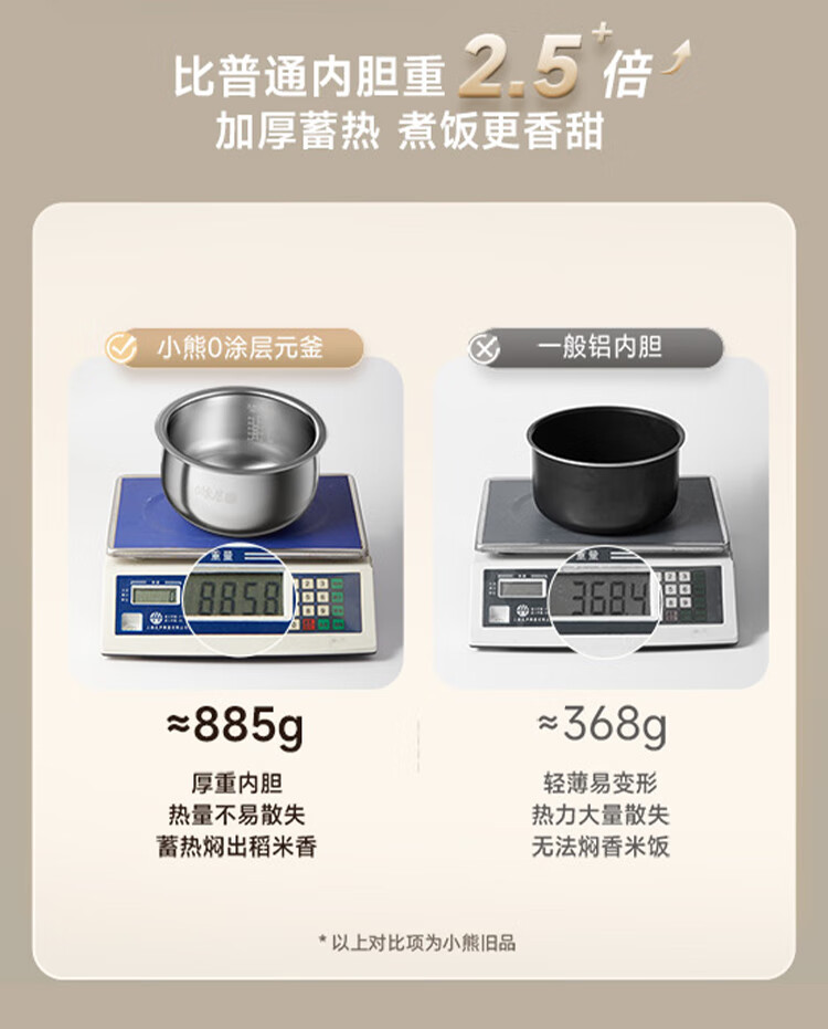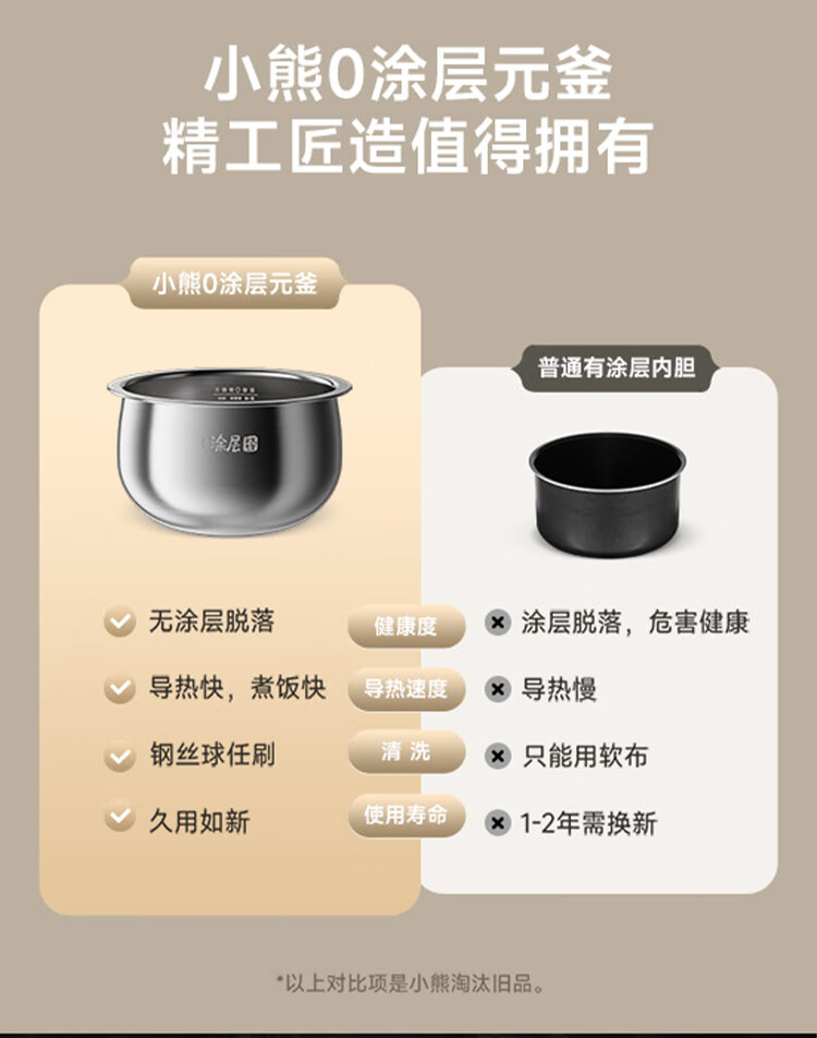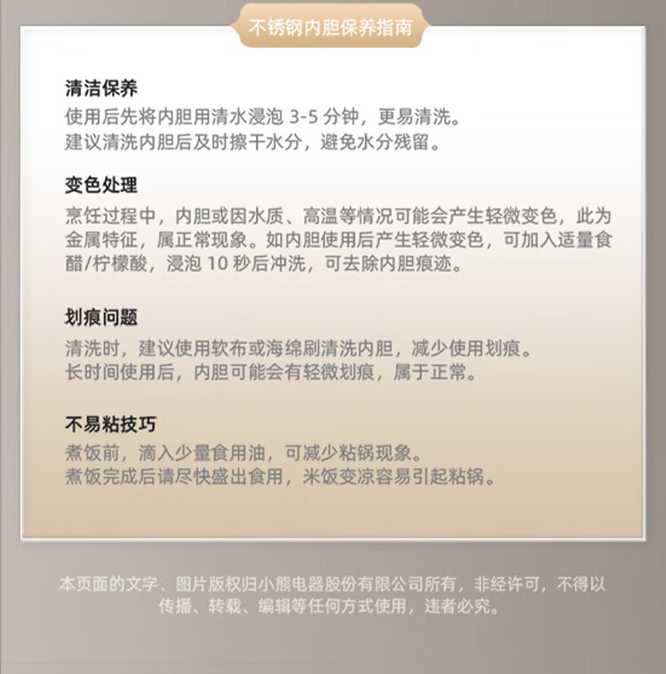 小熊0涂层不锈钢内胆电饭煲3L