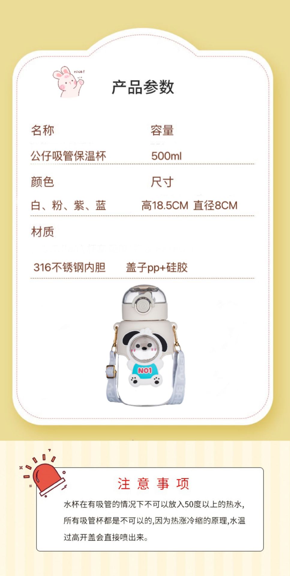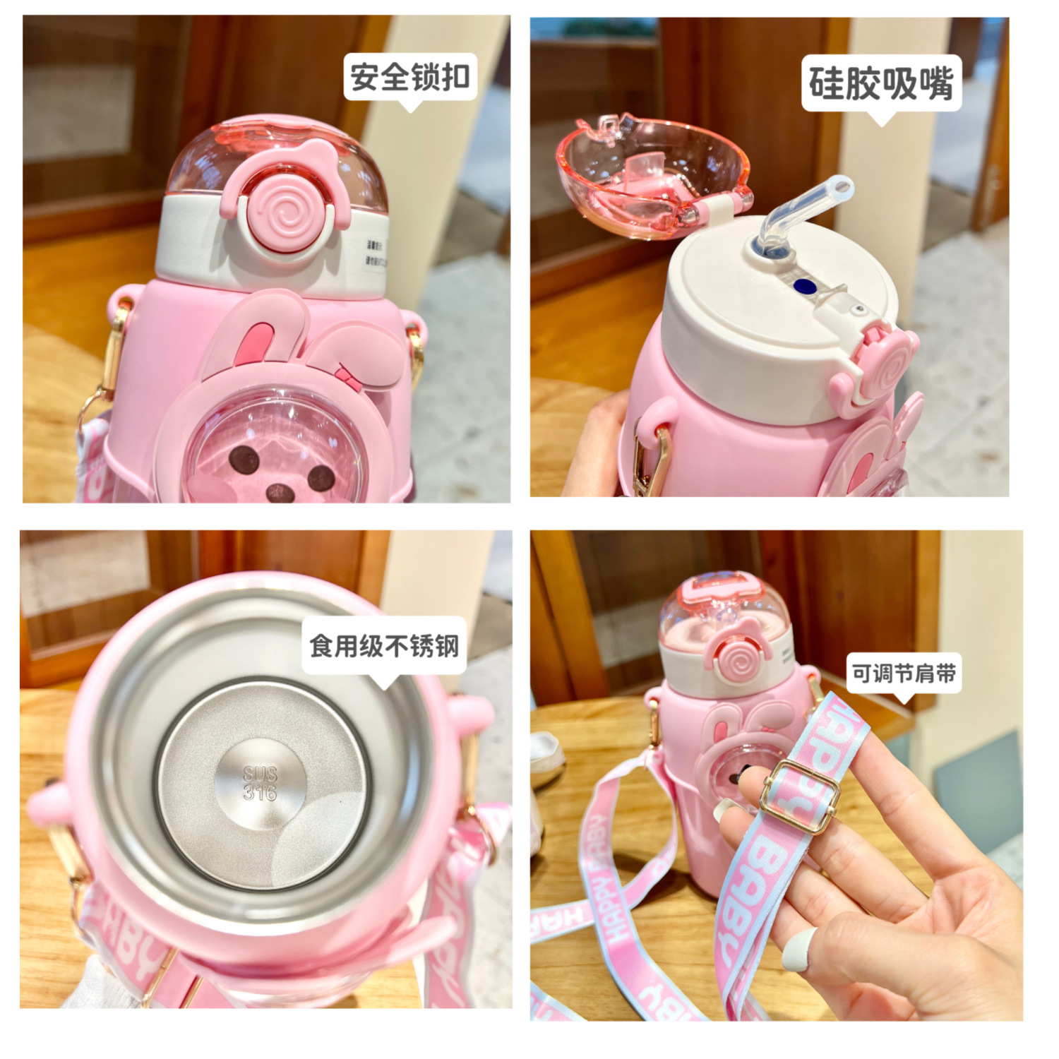 高颜值小学生儿童吸管保温杯便携可斜挎水杯女生网红吸管杯保冷杯冷水杯